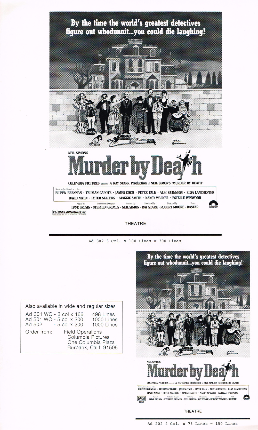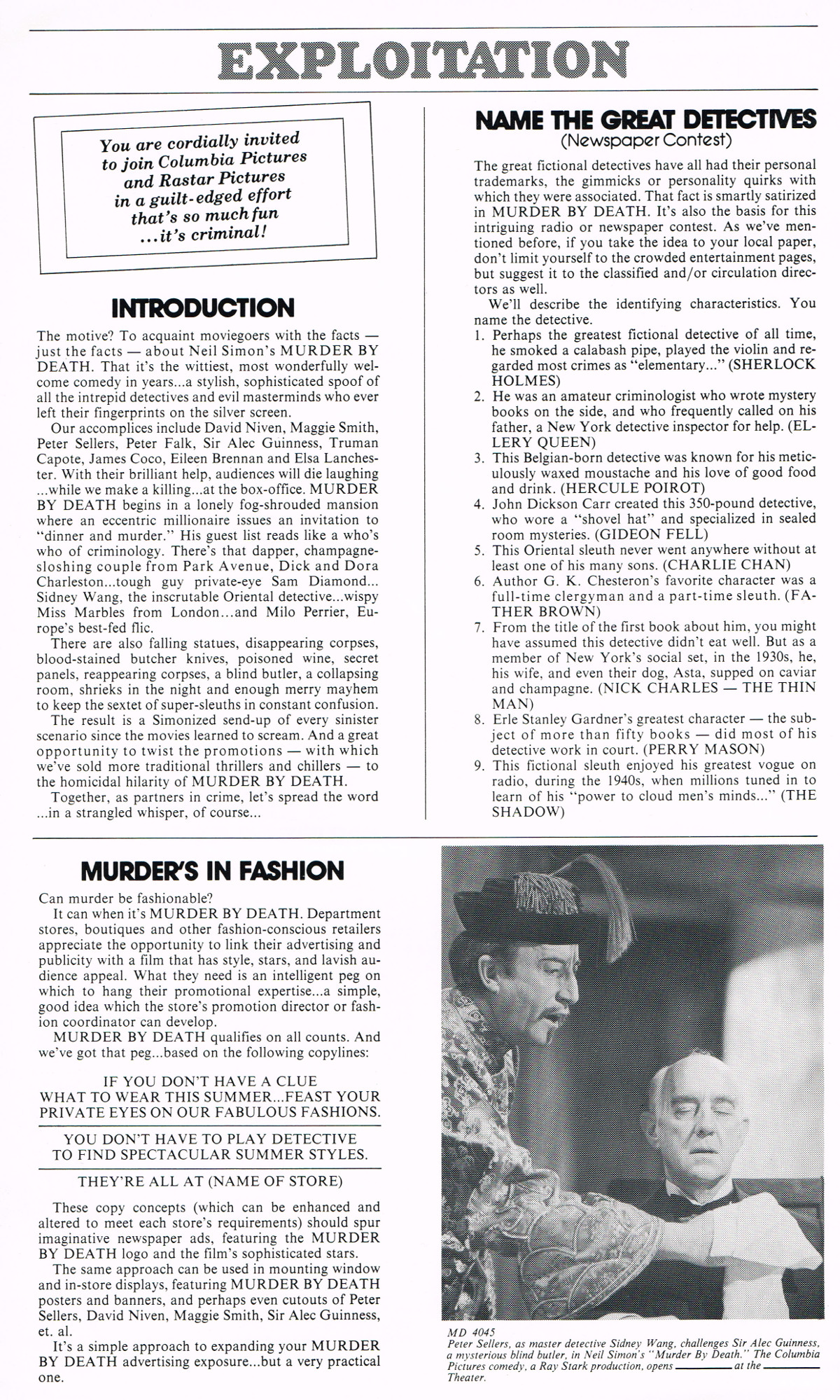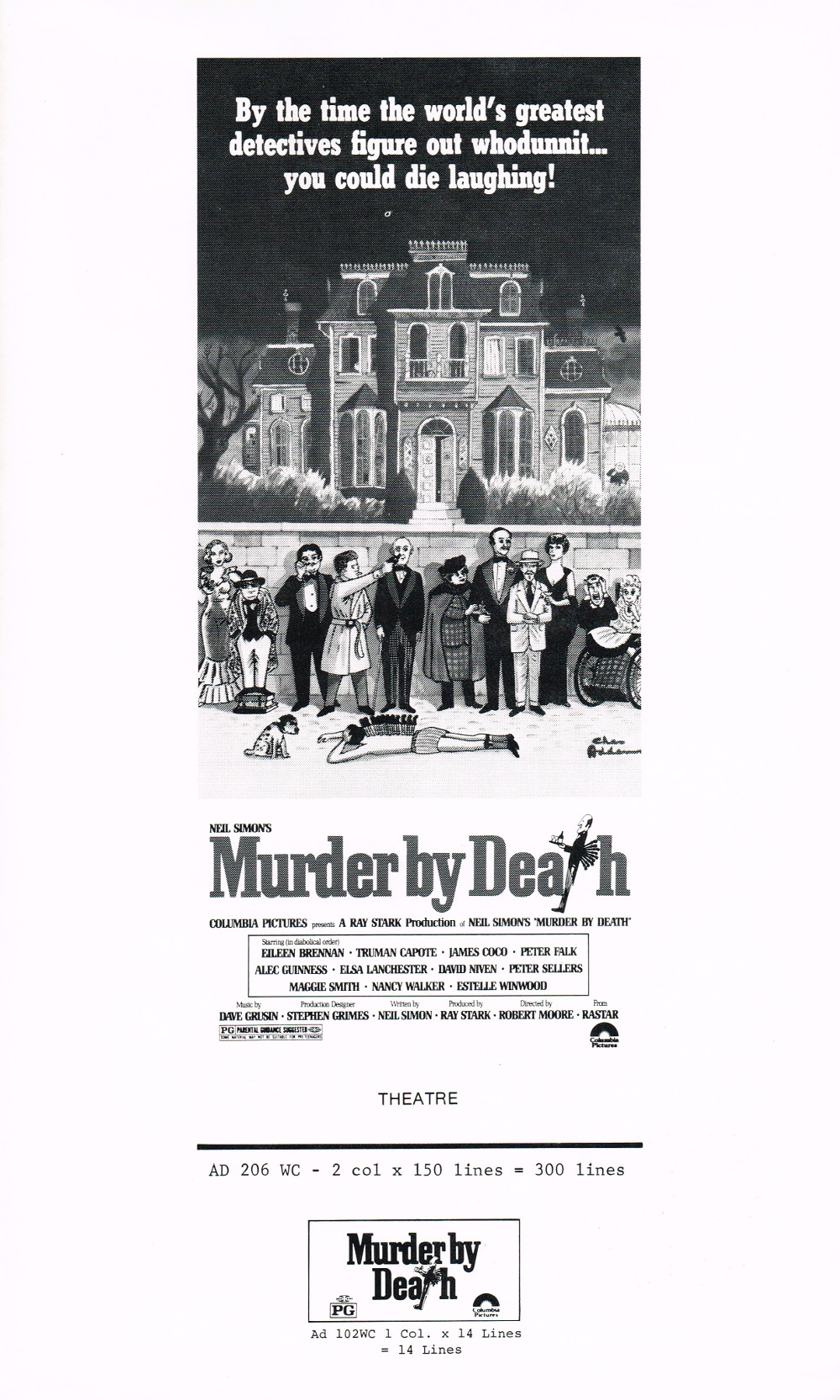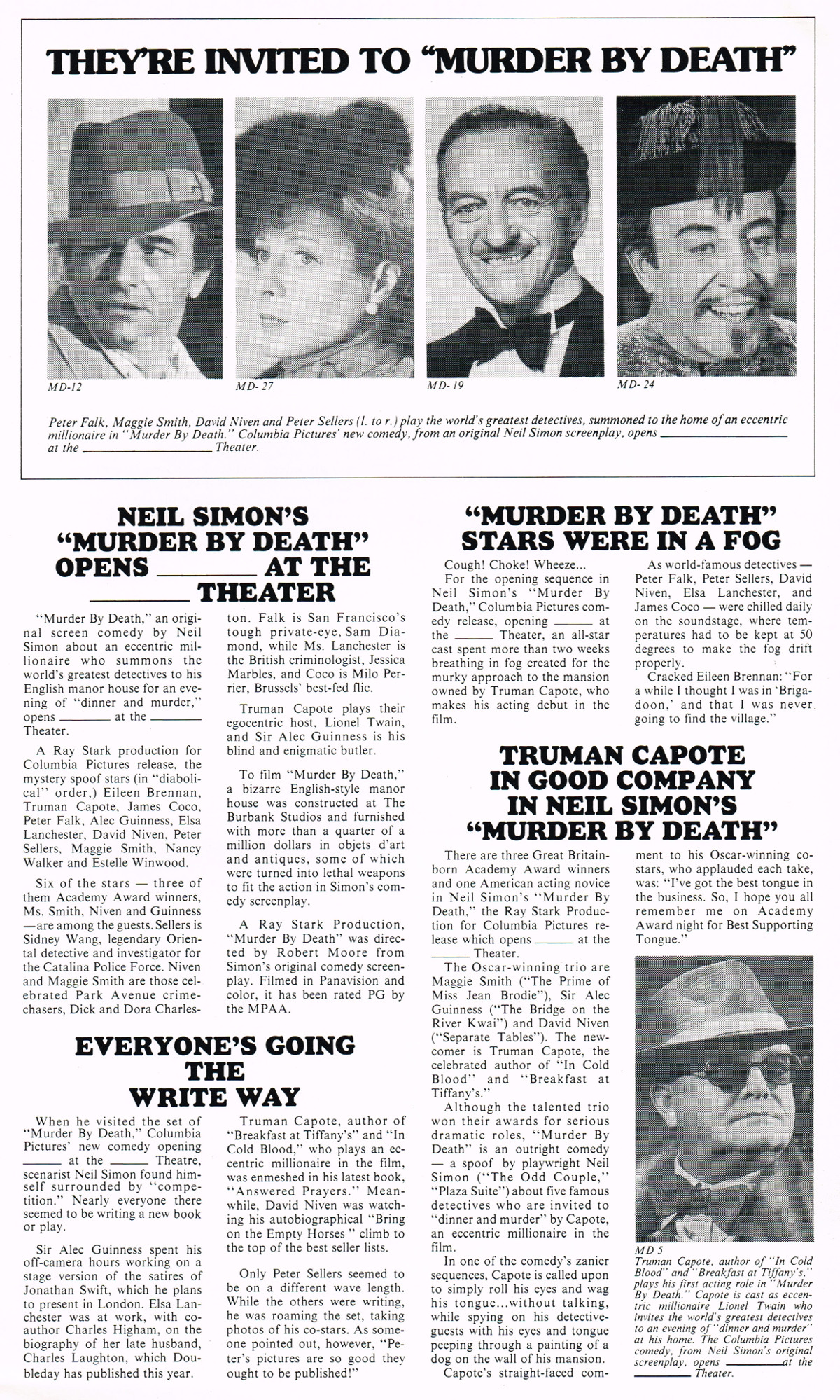 Pressbook: Murder by Death (1976) Leave a Comment / Pressbooks (Non-Horror) / By JM Cozzoli A funny mystery from Neil Simon with a great cast. Like this:Like Loading... Share this post Facebook Twitter Pinterest Linkedin
