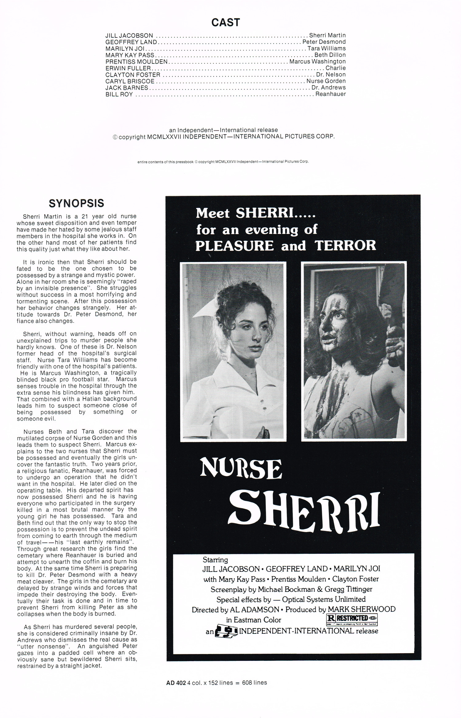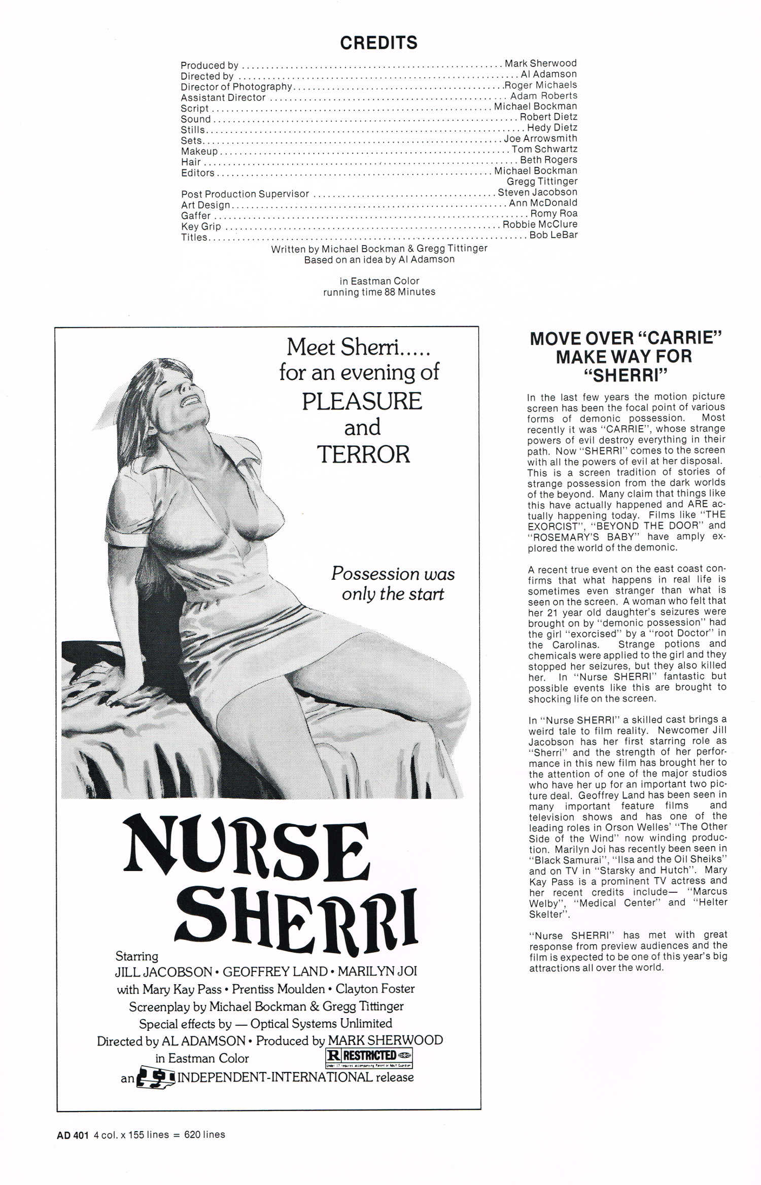 Pressbook: Nurse Sherri (1978) Leave a Comment / Pressbooks (Horror, Sci Fi, Fantasy) / By JM Cozzoli And since Nurses for Sale wasn't enough for trashy 1970s cinema…here's Nurse Sherri…drawn by Gray Morrow.Like this:Like Loading... Share this post Facebook Twitter Pinterest Linkedin
