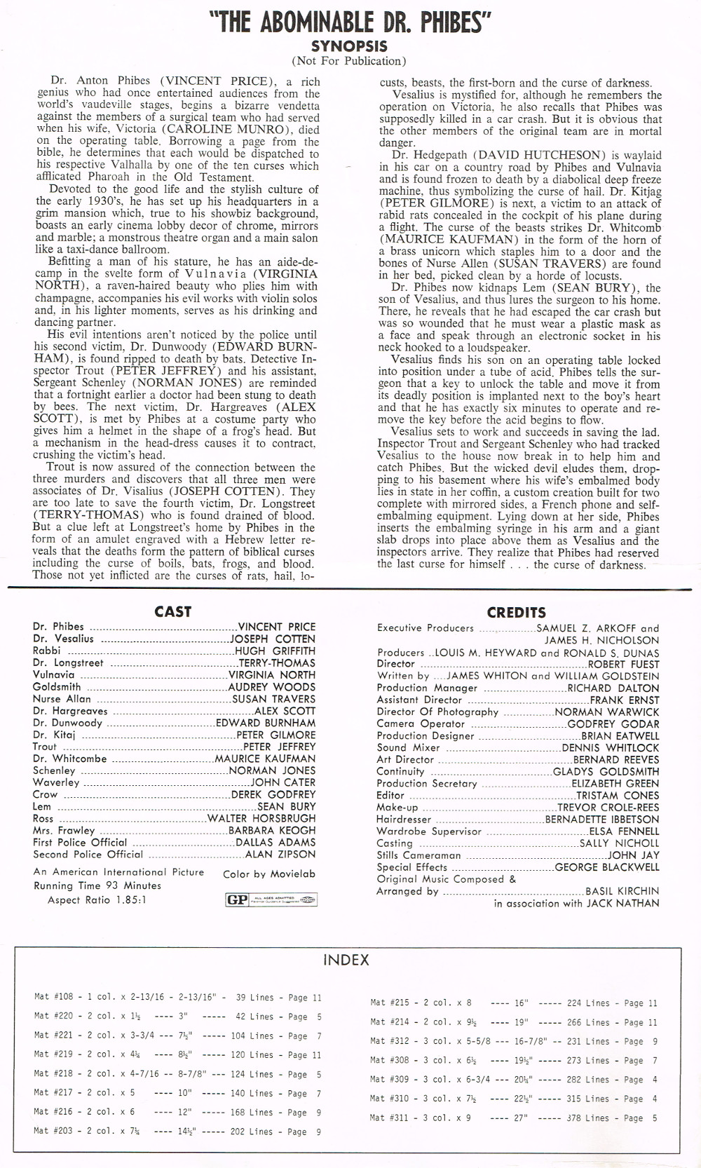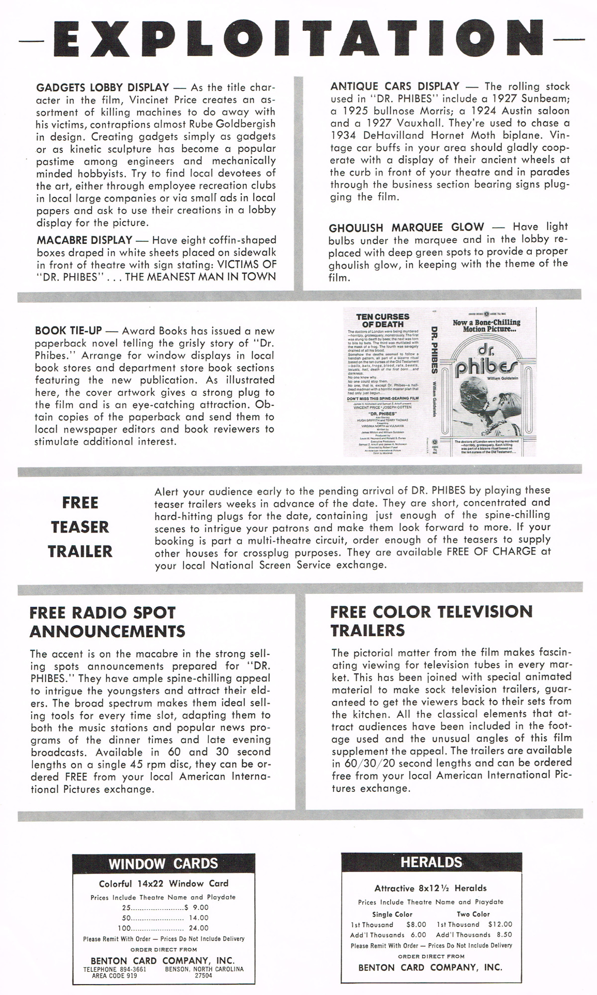 2 thoughts on “Pressbook: The Abominable Dr. Phibes”