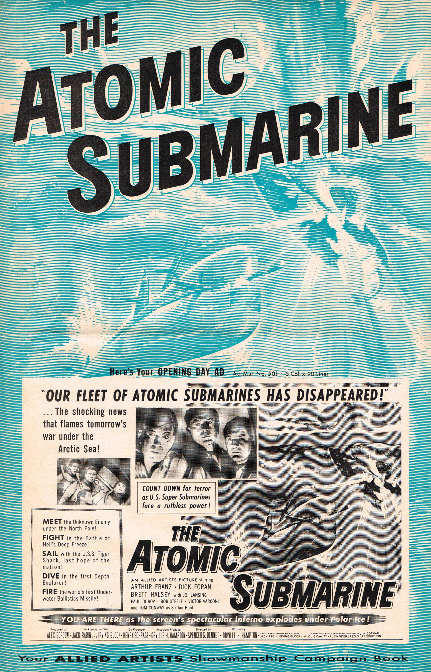 With nefarious and icky one-eyed aliens, the Navy's new strategic weaponry of atomic powered submarines, and a budget take on alien encounters, pacifism versus fighting, and somewhat passable underwater staging, The Atomic Submarine launched before Voyage to the Bottom of the Sea's Seaview and the underwater warship Atragon. And I built the Revell atomic sub model, too!