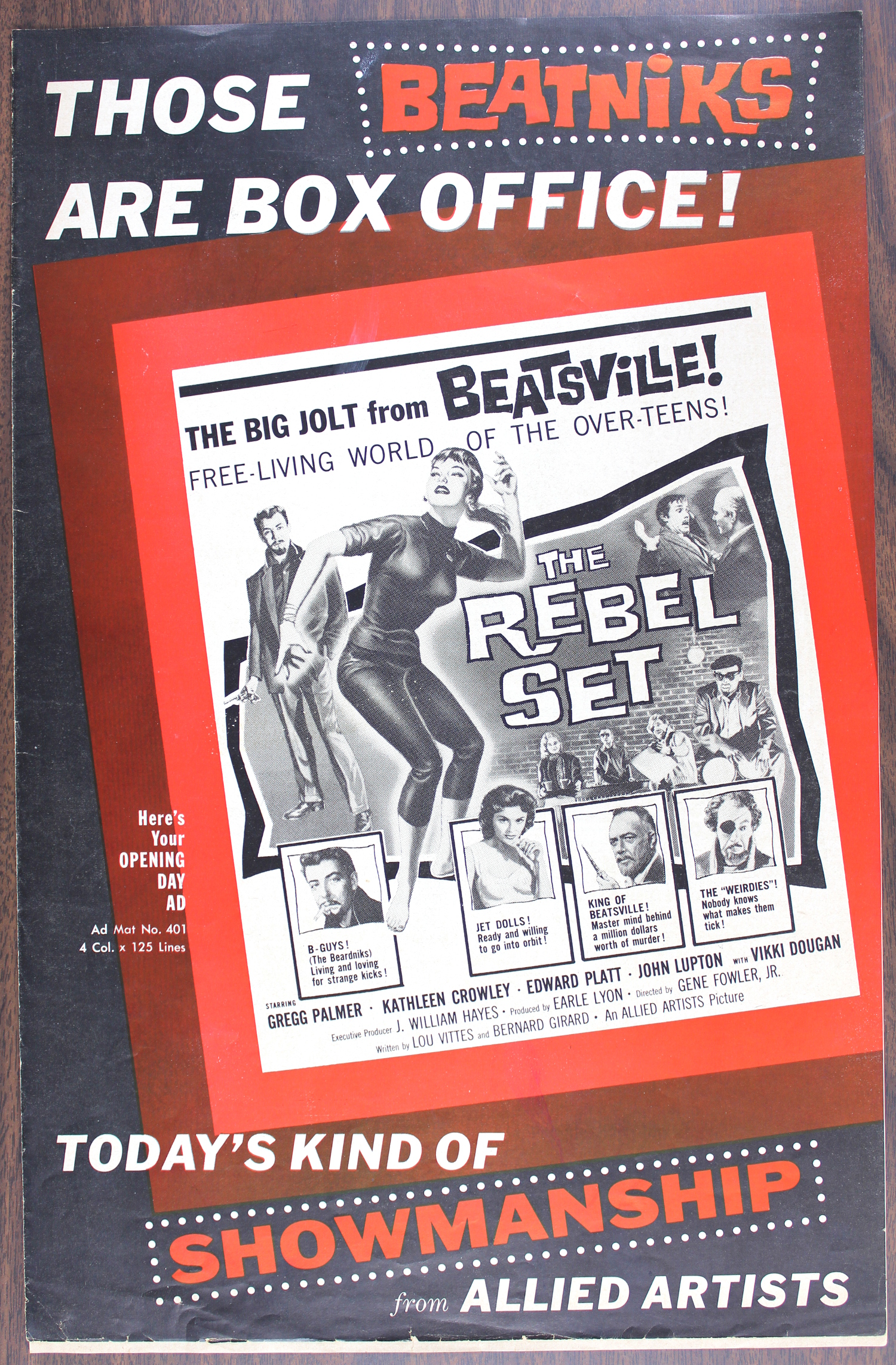 Oh, those wild beatniks. Wild, wild, wild. Could never get the hang of those bongos, though. Rhythm’s just not my bag, man. But I dug the tights the women wore. Slinky and sexy. One of the best horror movies with a beatnik atmosphere is A Bucket of Blood. Sherlock Holmes once quipped about “art in the blood” when discussing Mycroft, but A Bucket of Blood posits blood-in-the-art for a nice kick in the jive. A bucket’s worth, more or less.
