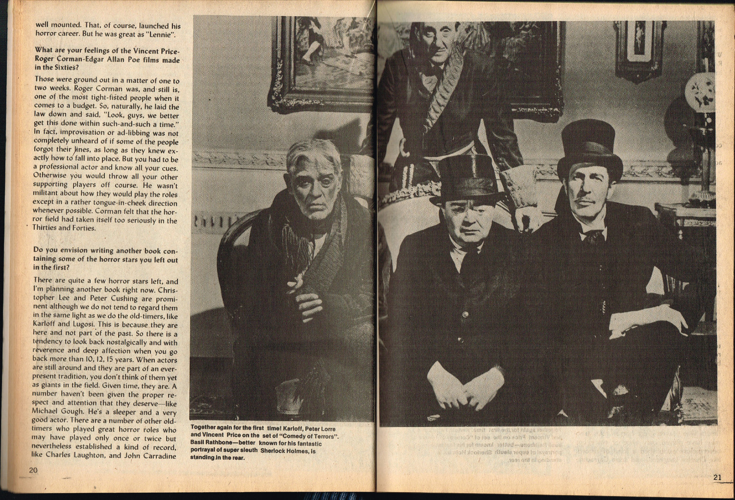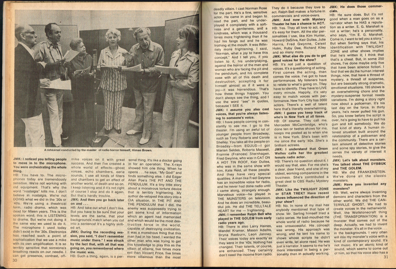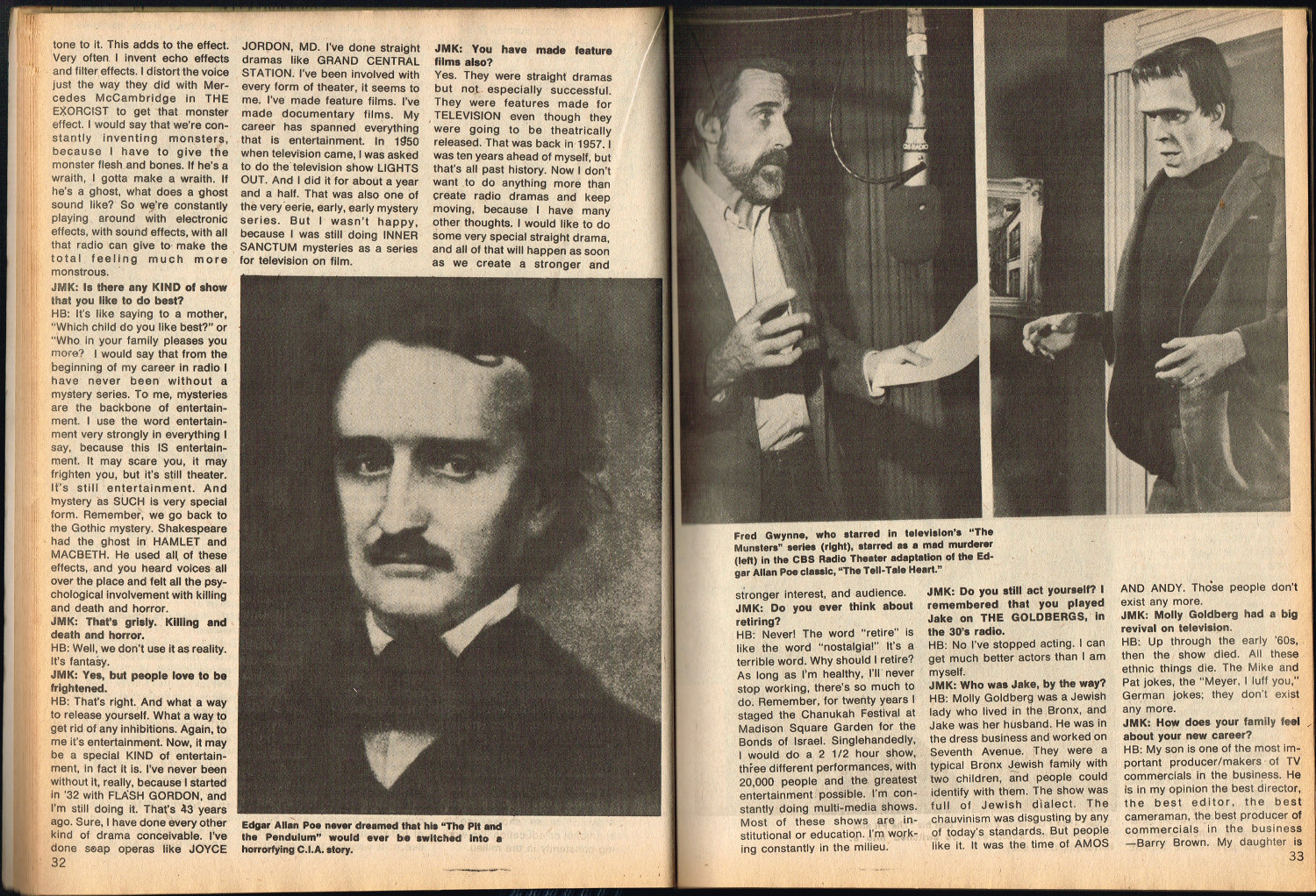 Jekyll and Hyde: Through the Years, by Steve Abrams, kicks off this jam-packed issue 5 of Quasimodo’s Monster Magazine. Ron Weiss’s Heroes of the Horrors gives credit where credit is due as he interviews Calvin Beck, and Judith M. Kass interviews Himan Brown, creator of the CBS Radio Mystery Theater. Television coverage is provided for The Six Million Dollar Man and Space 1999, and Peter Lorre bio is given by Sharon Phillips. And, of course, the Gone Apes! section provides the gag-captioned photos we’ve come to expect from monster magazines published around this time. All in all, a stellar issue of monster coverage that’s informative as well as entertaining.