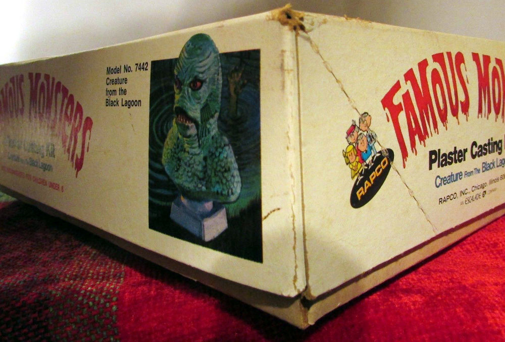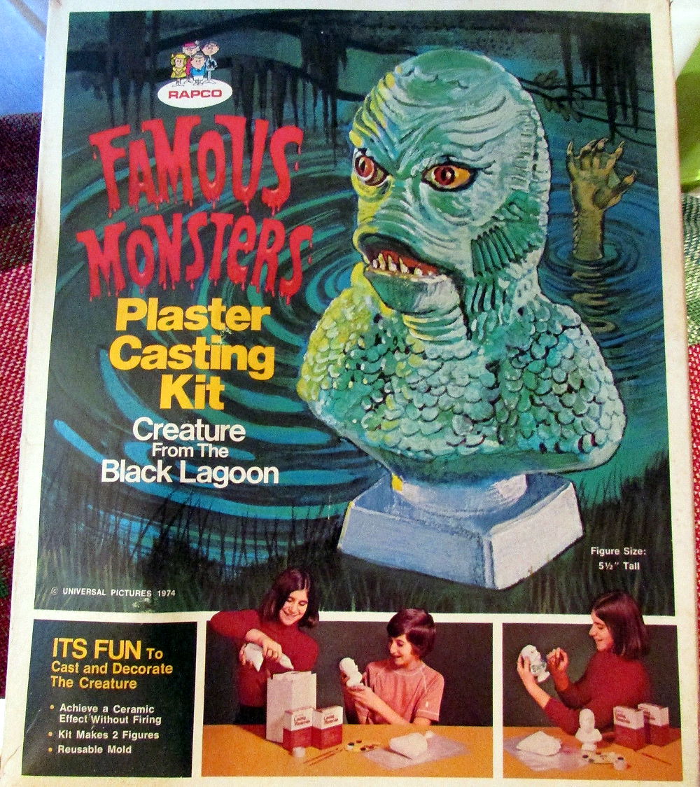 Someone recently sold this on eBay. What's cool about this (and, hey, if you're a monsterkid who played with one of these, that was way cool, too) is the graphic on the box cover: who says horror's just for the boys? I miss the more tactile pleasures of monster play. Don't you? Molding, painting, model kit building, it was fun. I still vividly remember that night my dad brought home an Aurora Wolf Man model. The long box was tied with string. He built it while I watched. I was too young at the time to build it myself. Of course, I would do a lot of model kit building later on as I got older. But that was the first time I'd seen a plastic model. And it was another step closer to becoming a monsterkid.