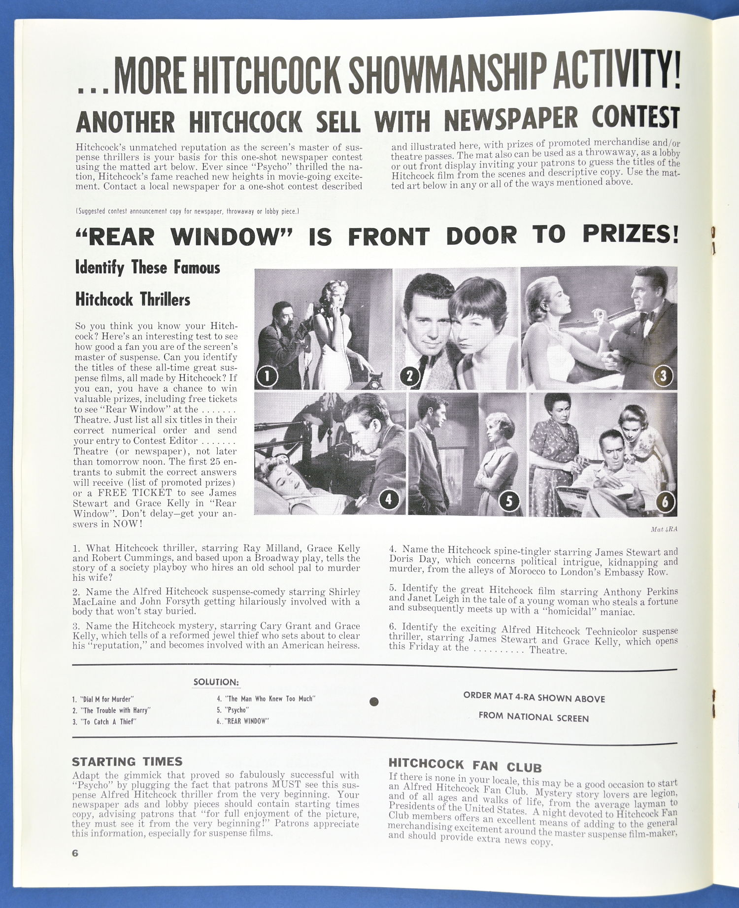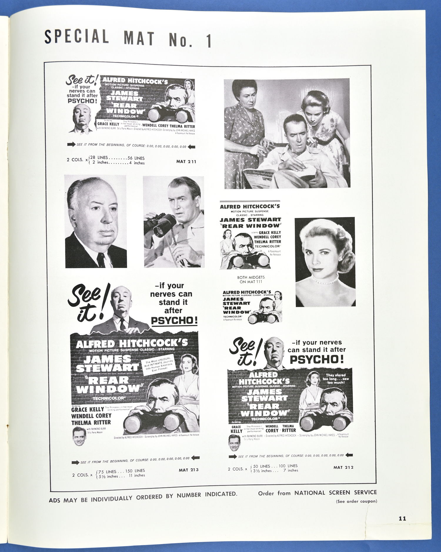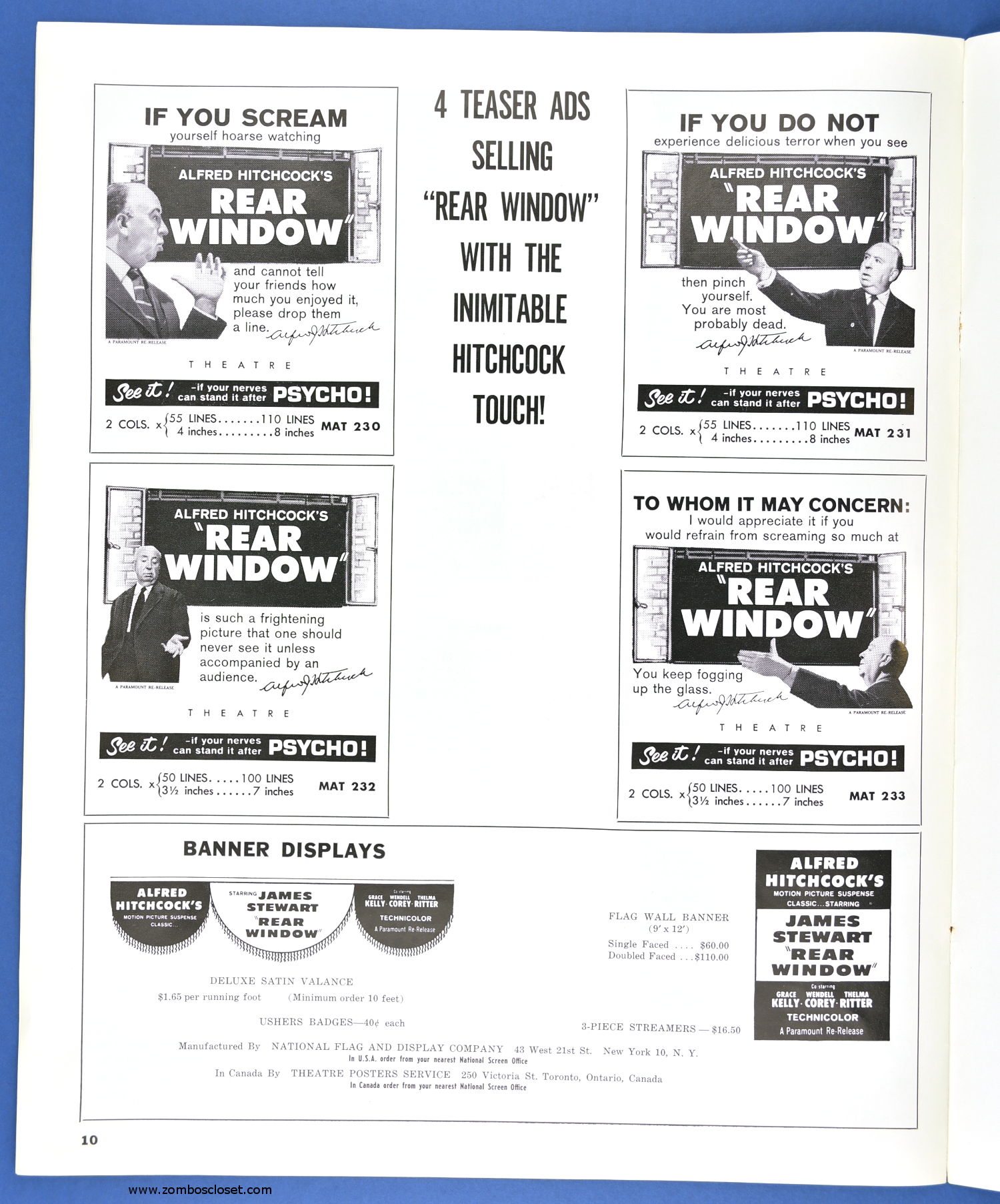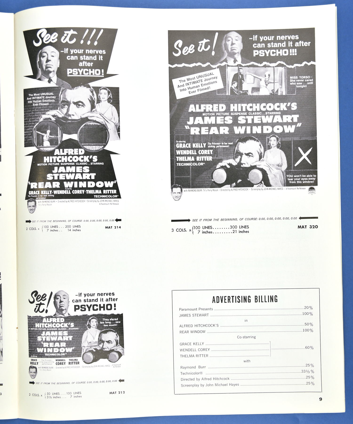 This is the re-release pressbook for 1962. I'm willing to bet you never knew there was an Alfred Hitchcock Coloring Book to promote the movie! Well, only four pages, sure, but the "This is a seat in a movie theatre" page should be colored and framed. And you thought Roger Corman and William Castle were the only ones with a barker-bone in their bodies, didn't you?