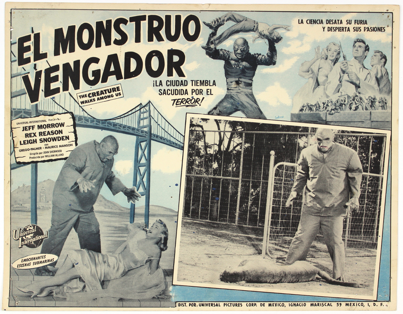 Or is it Revenge of the Creature? This Mexican lobby card is a bit confusing. The top illustration is from Revenge of the Creature, but the bottom shows The Creature Walks Among Us. And the title, El Monstruo Vengador, doesn't quite match up with the English title beneath.