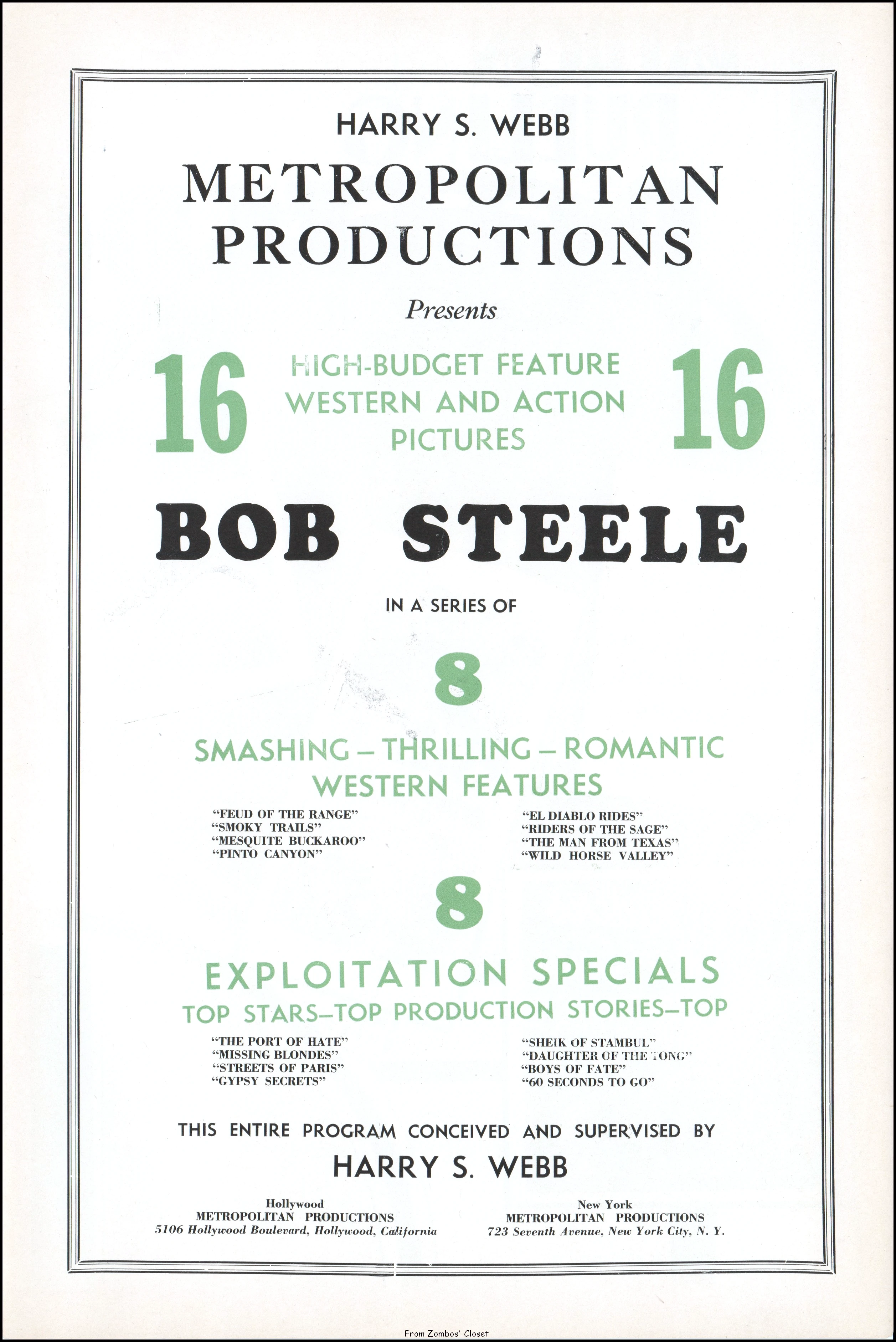 Bob Steele was a B movie cowboy star through the late 1920s to 1940s, working at the Republic, Monogram, Producers Releasing Corp, Supreme, and Tiffany studios (TMDB). I have a special liking for Steele because he stood 5 feet and 5 inches, my height, and still seemed to tower over the bad guys. He had a brief but unforgettable role in The Big Sleep, and won acclaim for his portrayal of Curley in Of Mice and Men. While his early cowboy days saw the most dusty trails, he still appeared in various westerns including Rio Bravo, The Comancheros and others. He also did the non-westerns, Atomic Submarine and Giant From the Unknown. In the 1960s, he played Trooper Duffy on F Troop. From the silents to the talkies, he had a long, and memorable for us, career.