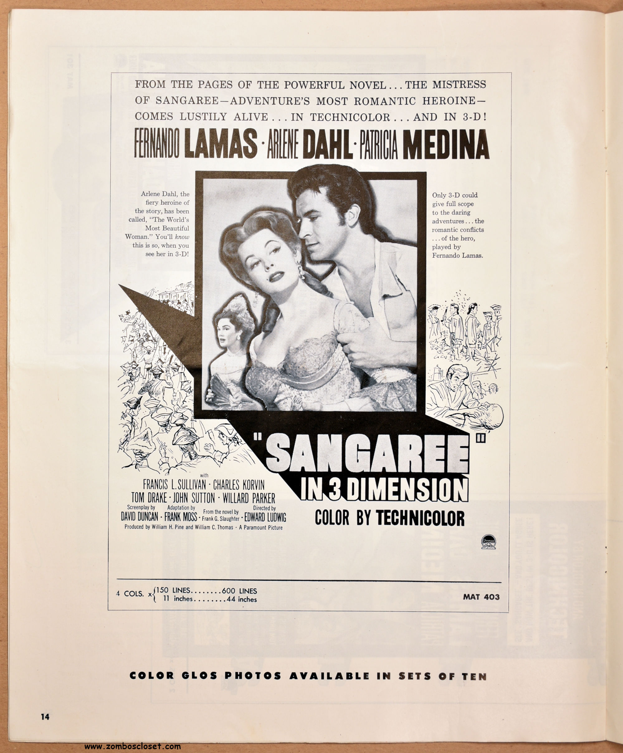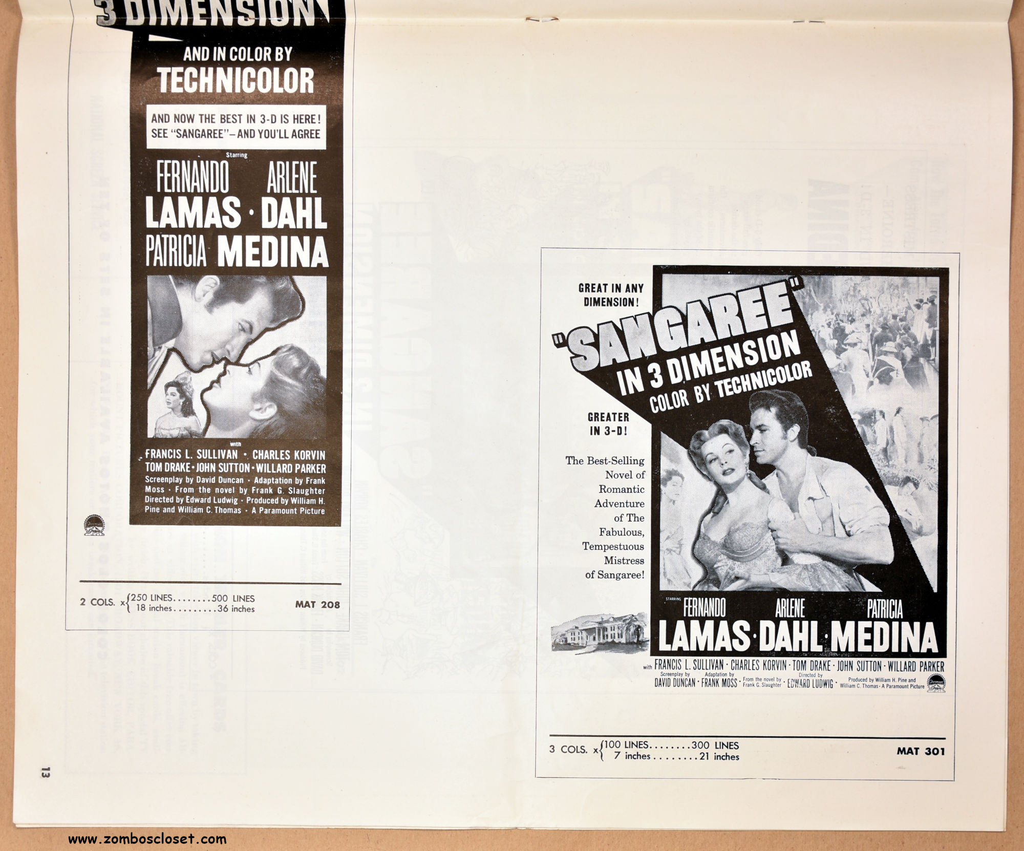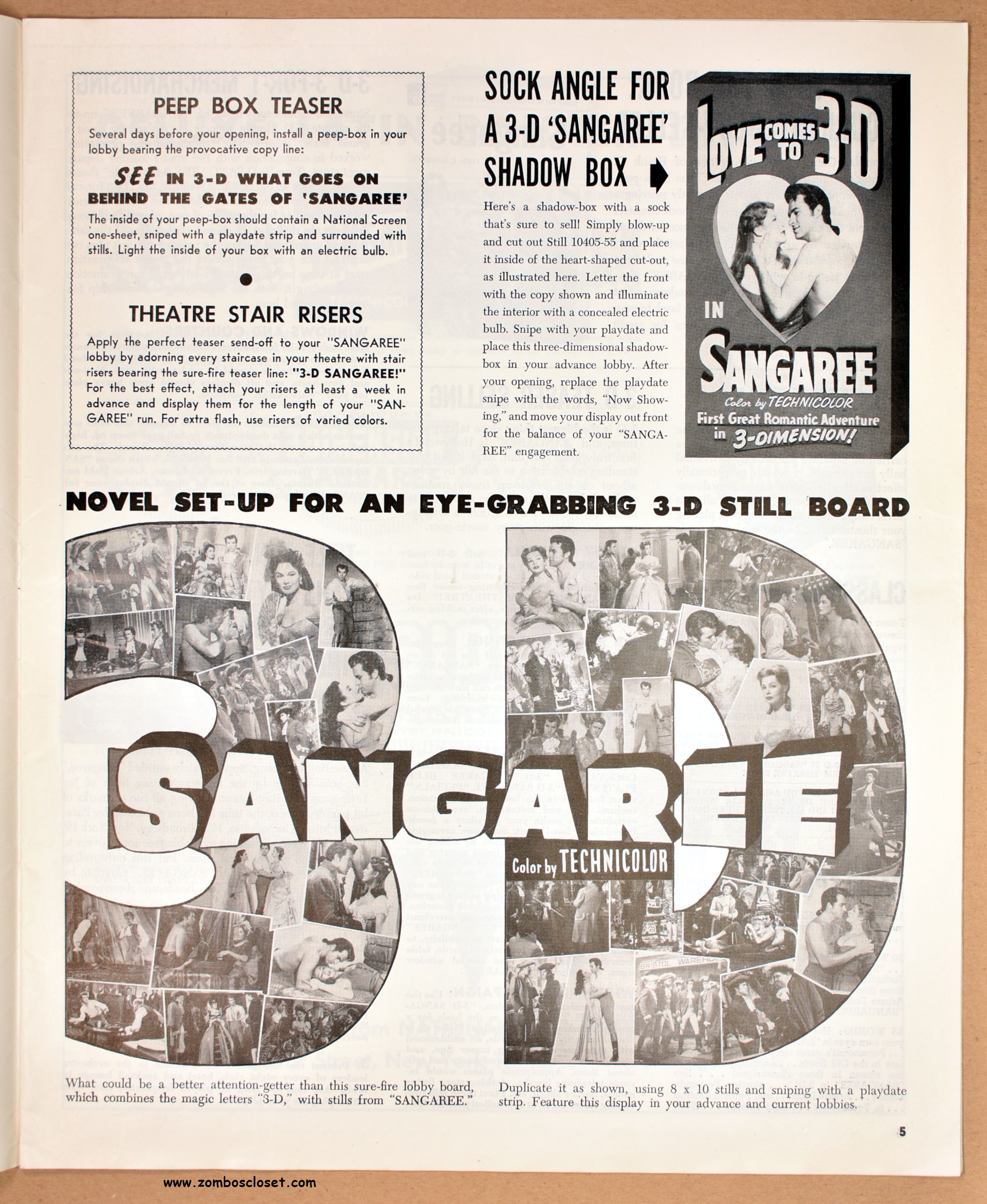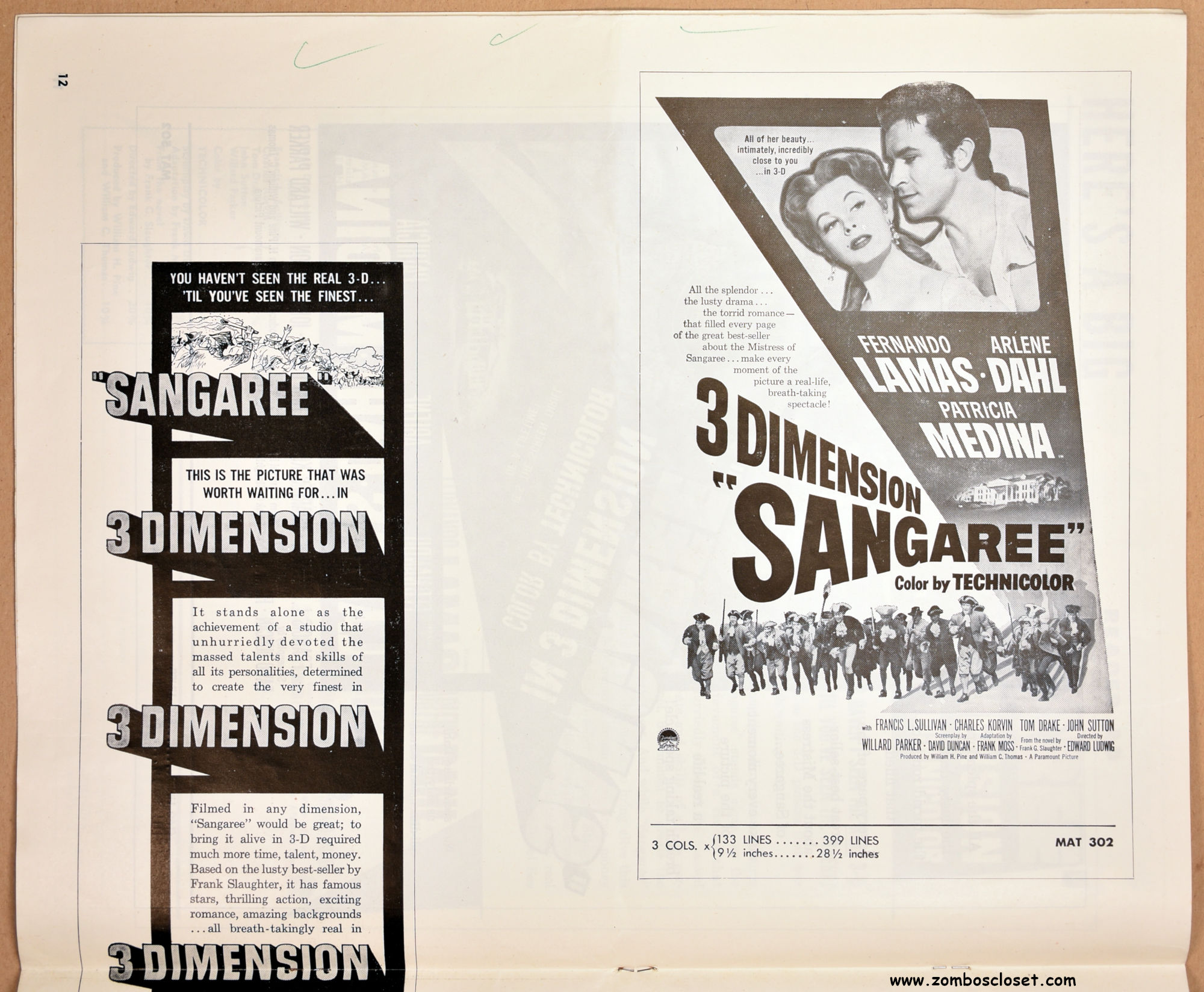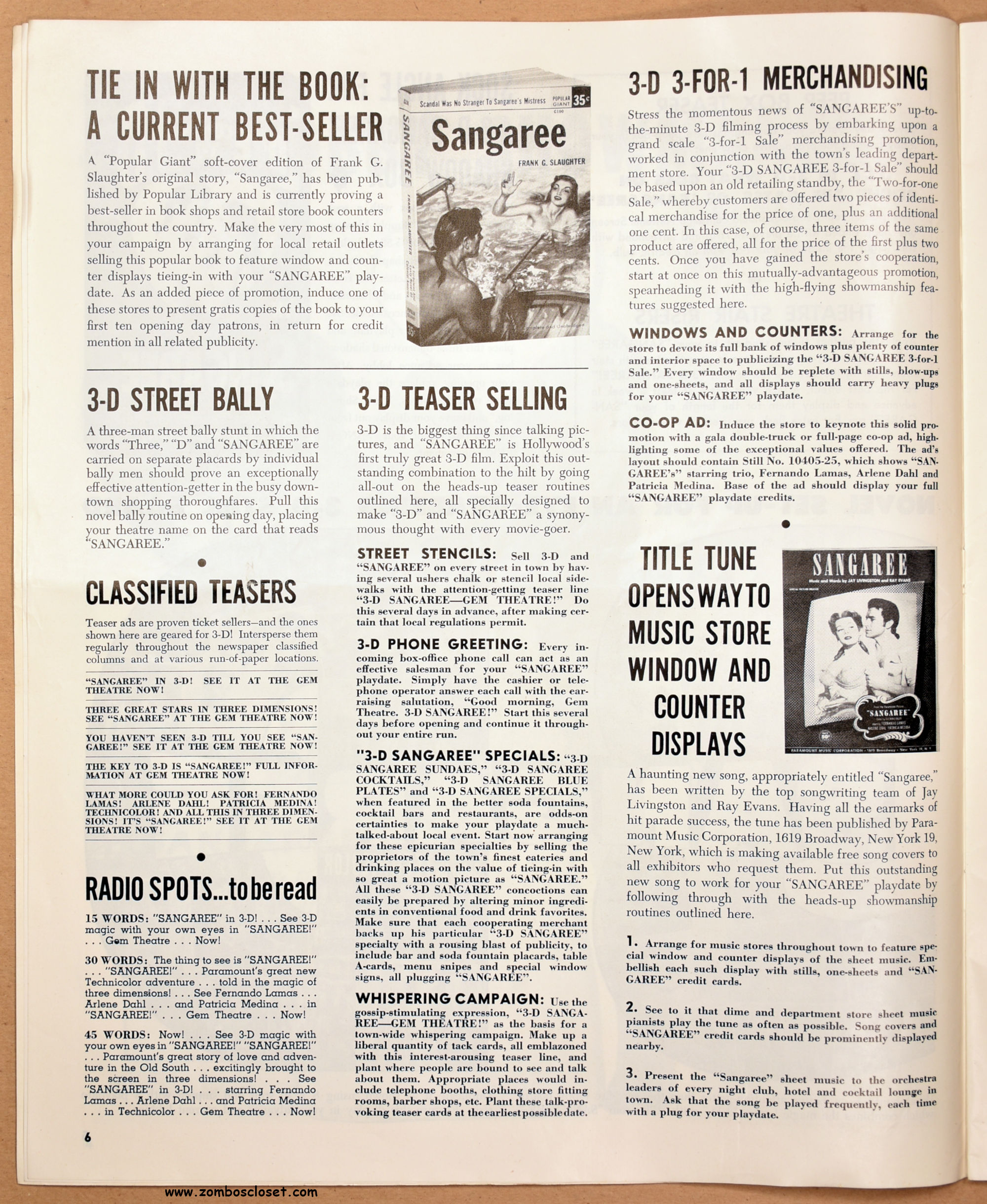 I picked up this pressbook because it is Paramount's first 3D movie. Unfortunately, someone actually cut out some of the ad mats to use them. Go figure! But it's a hefty pressbook for a period costume romance drama, nonetheless. From a period in movie history when the 3D process was a novelty; now it's just an excuse to charge higher ticket prices. On another note, this pressbook is appropriate for Valentine's Day. So let the kissing begin.