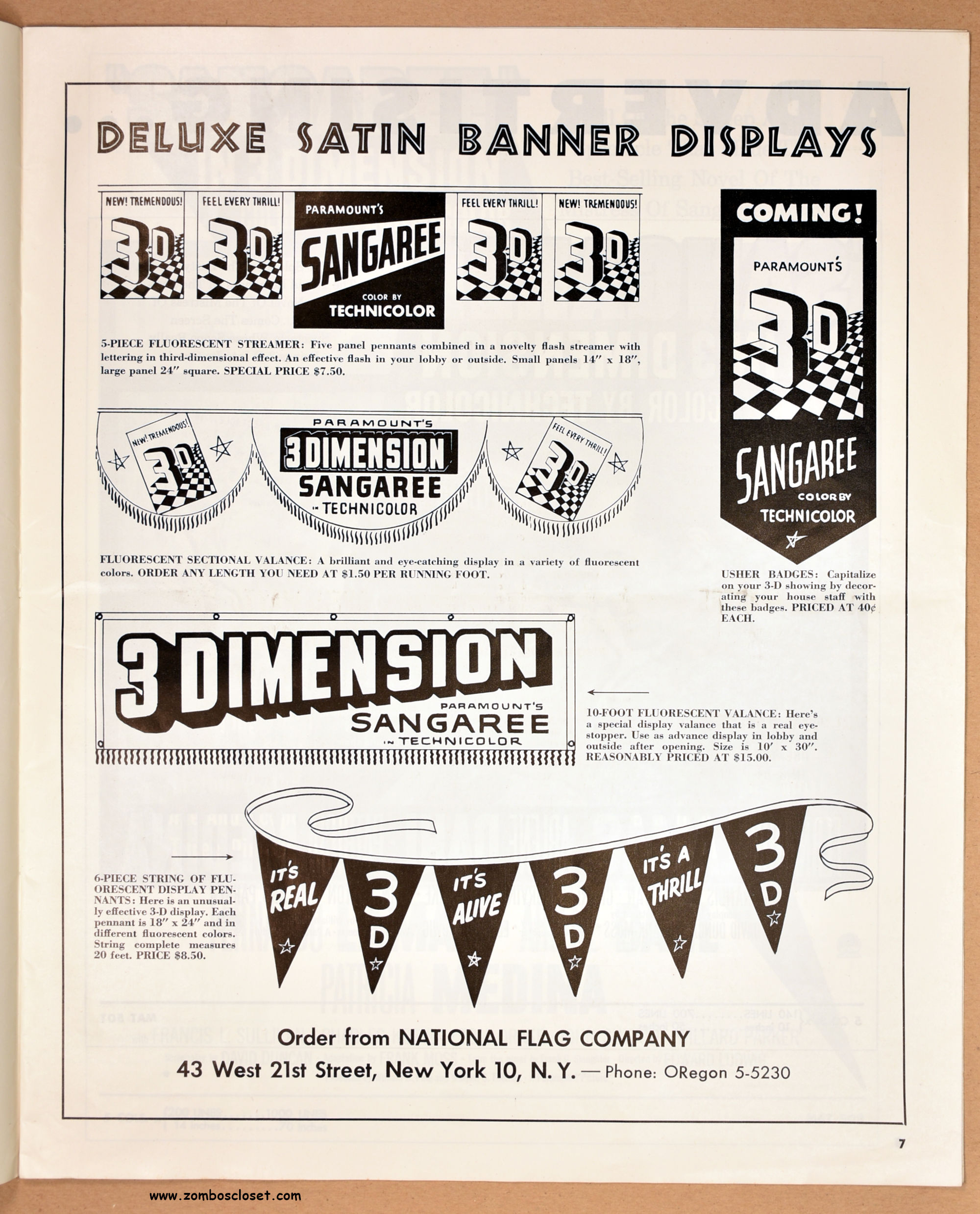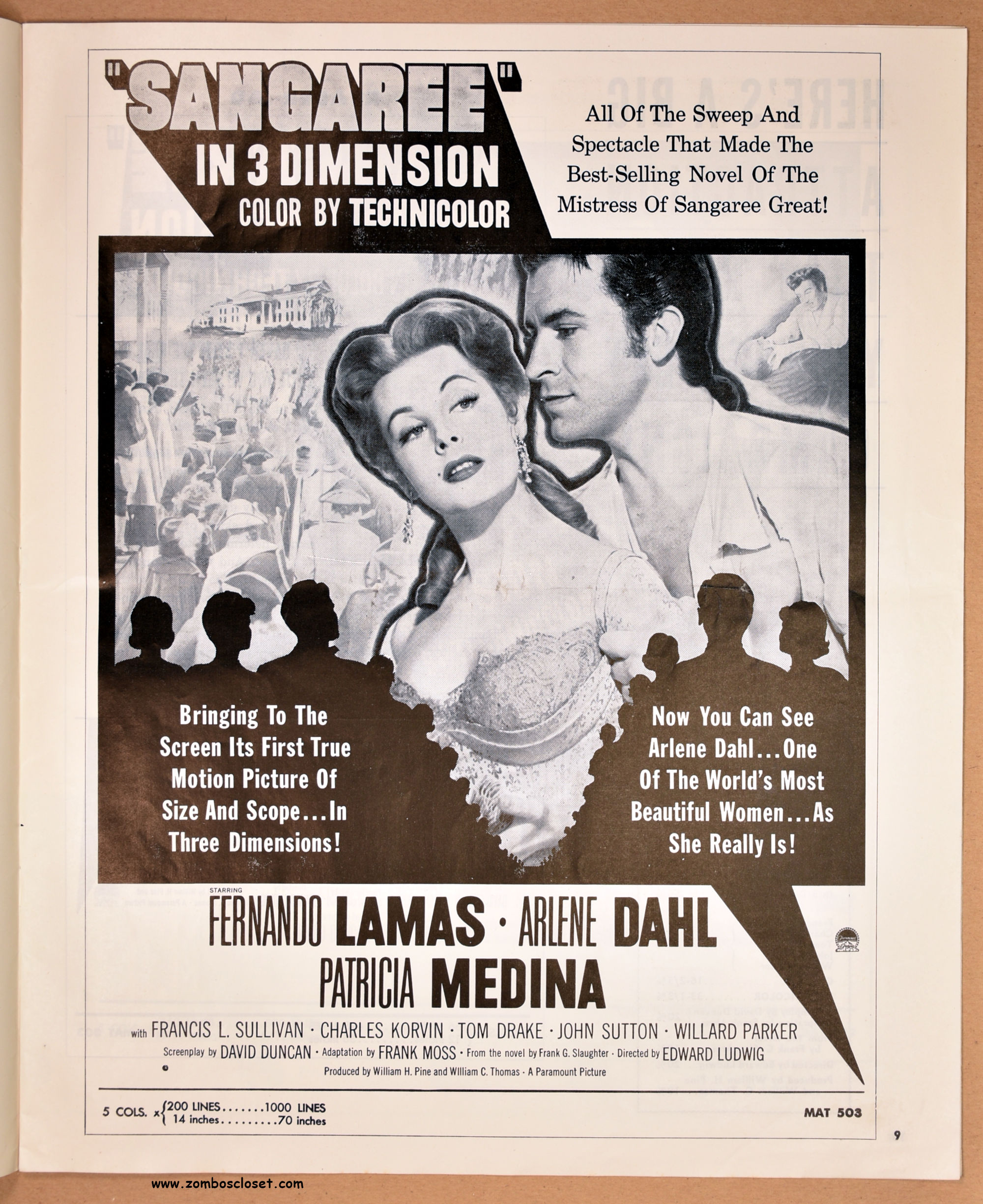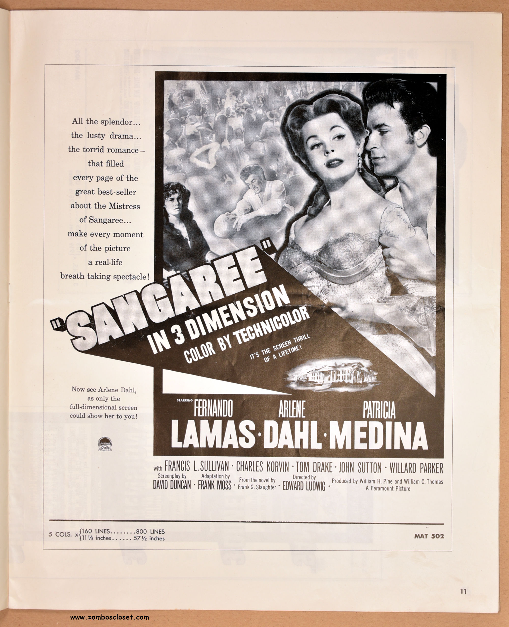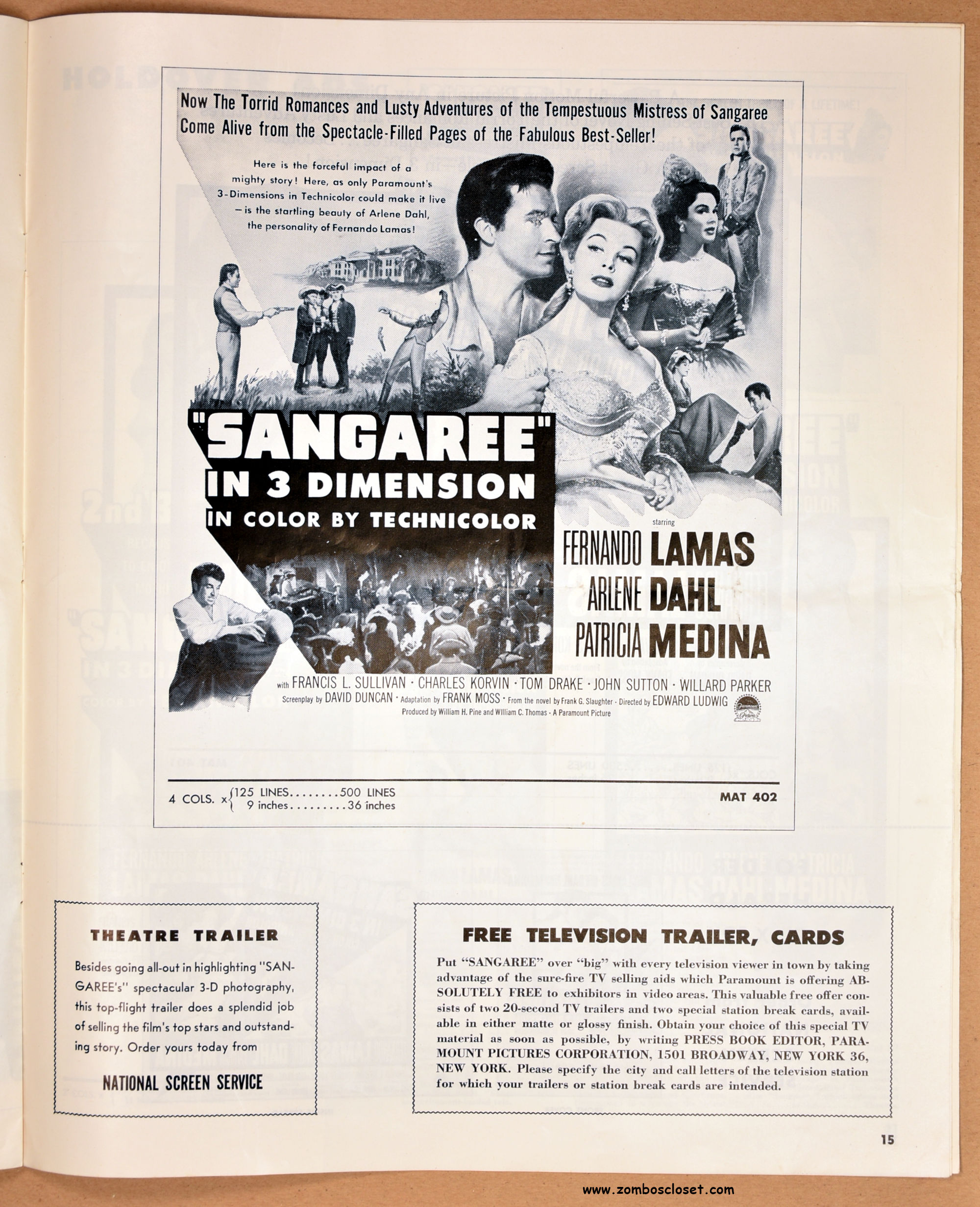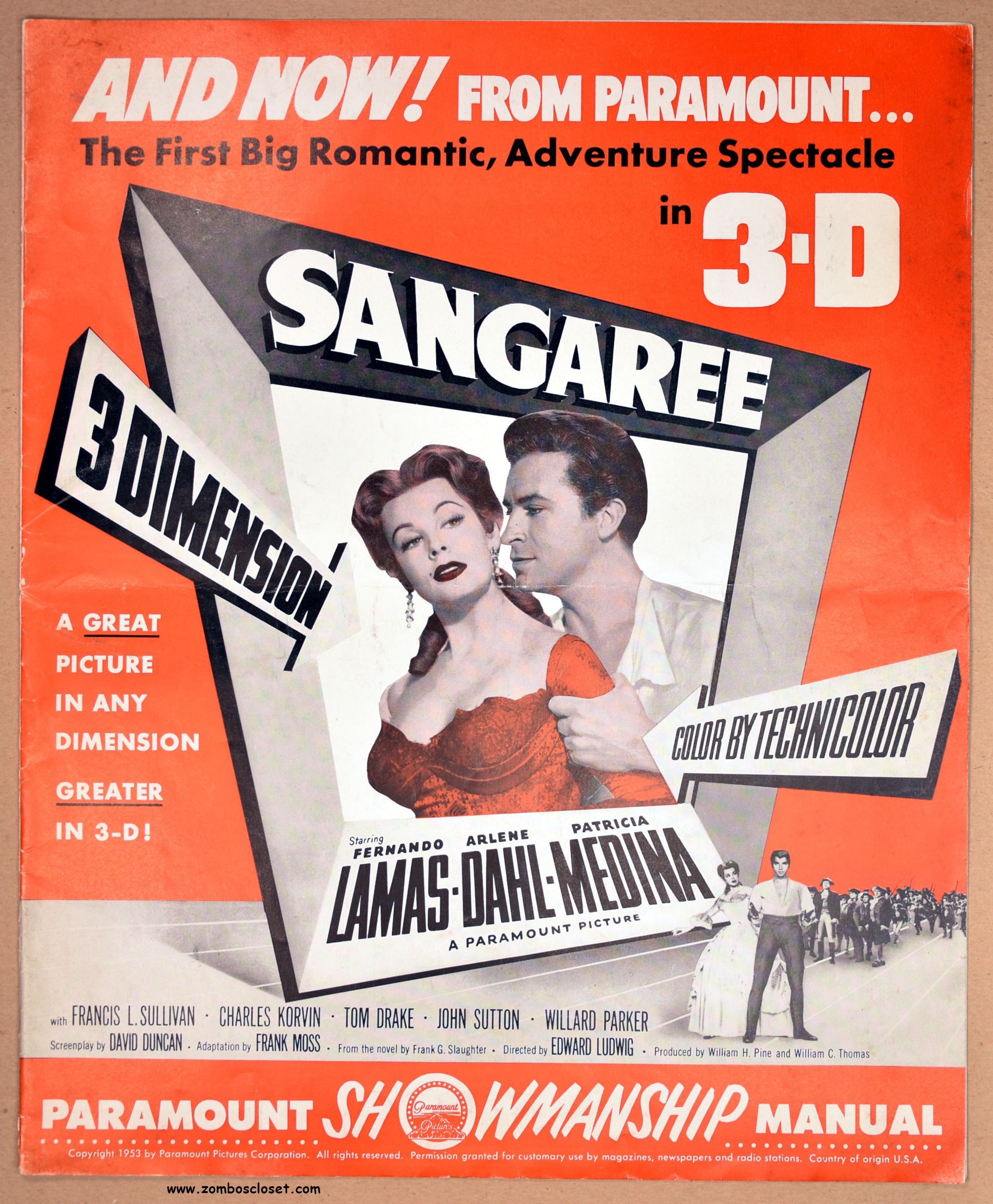 I picked up this pressbook because it is Paramount's first 3D movie. Unfortunately, someone actually cut out some of the ad mats to use them. Go figure! But it's a hefty pressbook for a period costume romance drama, nonetheless. From a period in movie history when the 3D process was a novelty; now it's just an excuse to charge higher ticket prices. On another note, this pressbook is appropriate for Valentine's Day. So let the kissing begin.