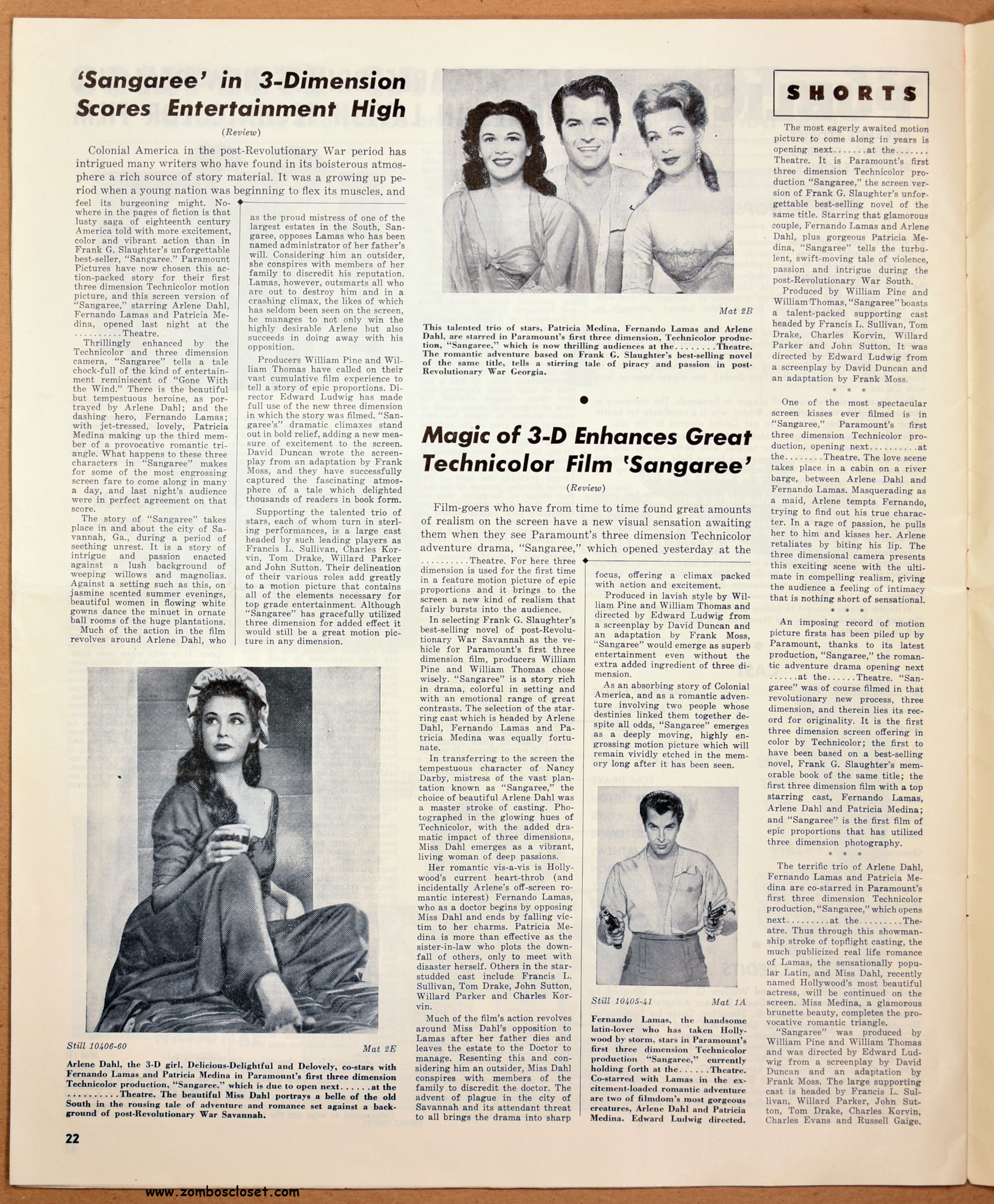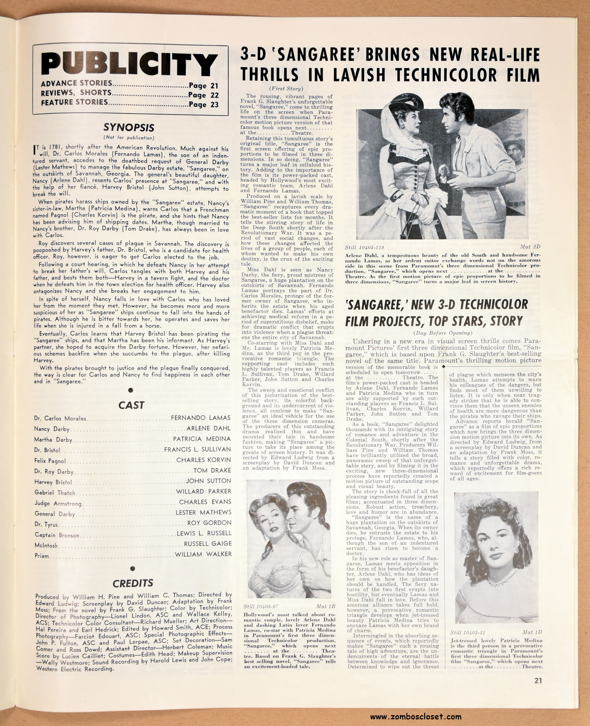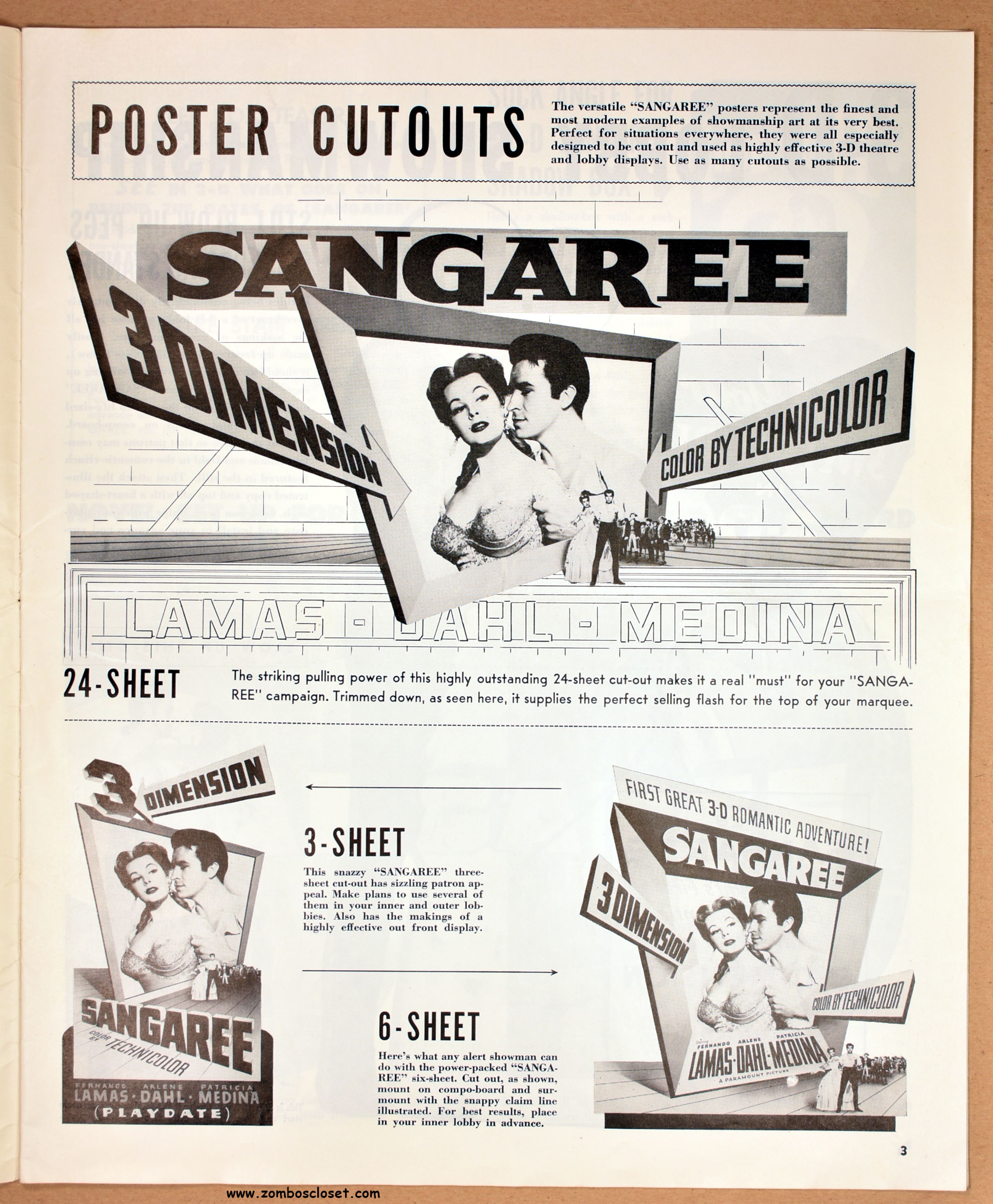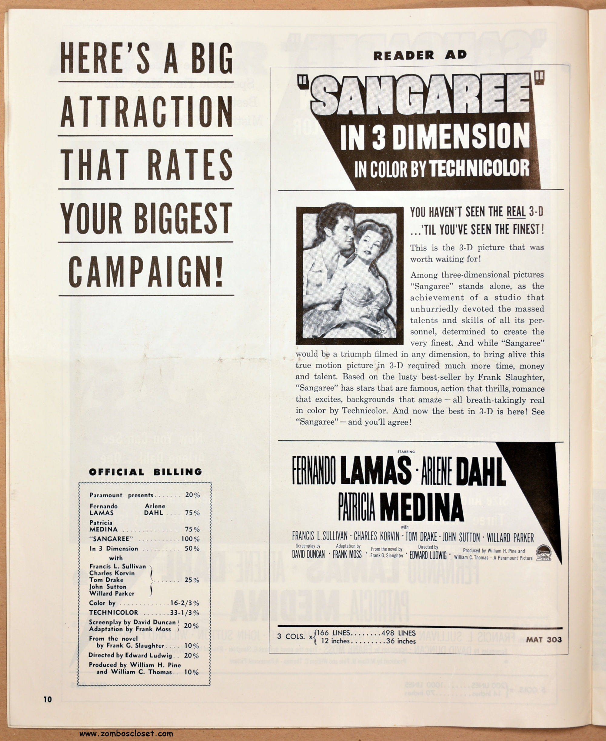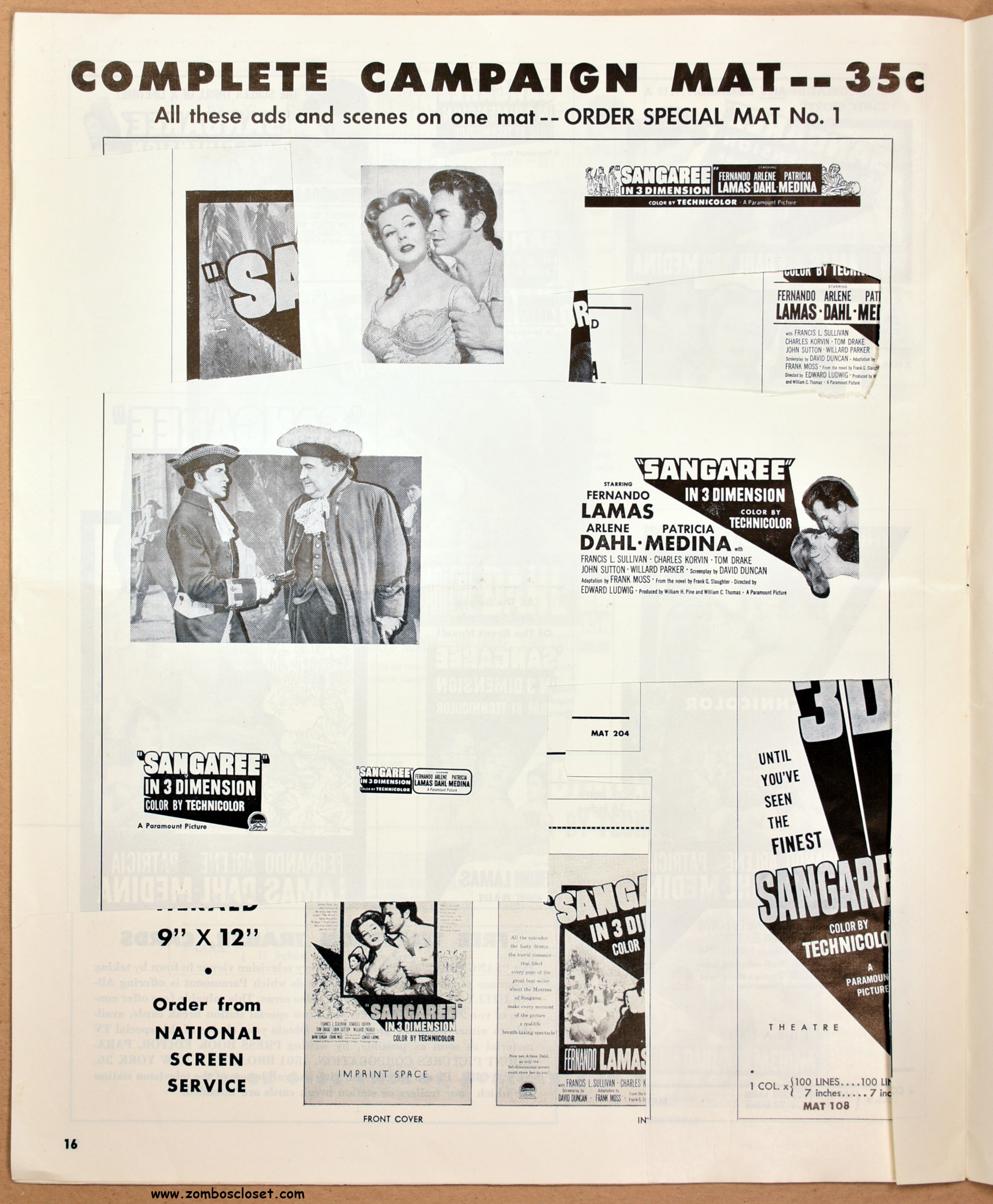 I picked up this pressbook because it is Paramount's first 3D movie. Unfortunately, someone actually cut out some of the ad mats to use them. Go figure! But it's a hefty pressbook for a period costume romance drama, nonetheless. From a period in movie history when the 3D process was a novelty; now it's just an excuse to charge higher ticket prices. On another note, this pressbook is appropriate for Valentine's Day. So let the kissing begin.