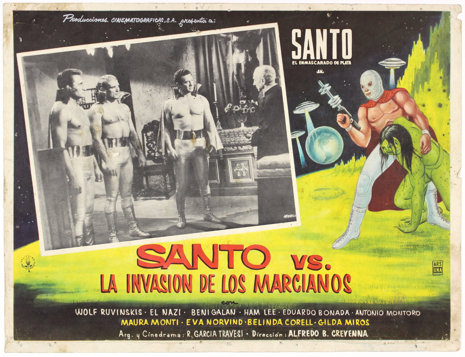 Mexican Lobby Card: Santo vs. La Invasion De Los Marcianos Leave a Comment / Azteca/Mexican Lobby Cards / By JM Cozzoli Santo flexes his muscles again in Santo vs. La Invasion De Los Marcianos (1966), and this Mexican lobby card shows a lot of muscle too.Like this:Like Loading... Share this post Facebook Twitter Pinterest Linkedin
