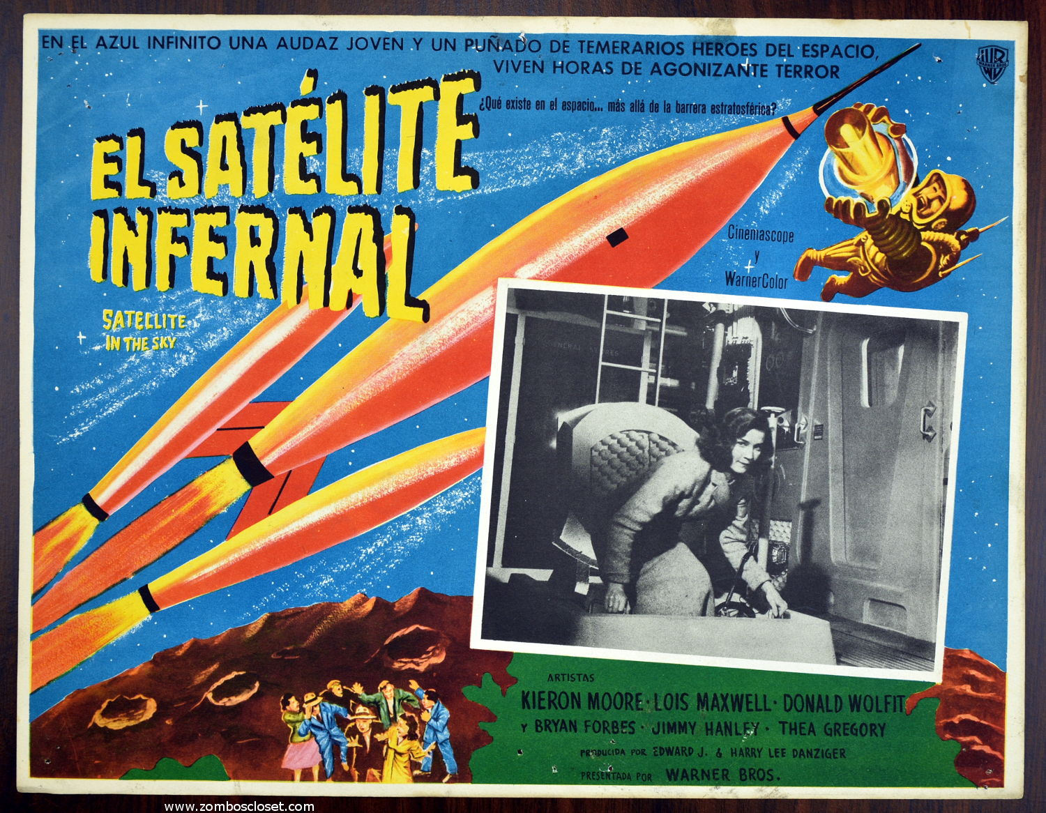 Wally Veevers, who did the special effects for this movie, Satellite in the Sky, went on to 2001: A Space Odyssey and Superman. Here's the pressbook. The Mexican lobby card is colorful but slapdash, and while somewhat stylish, doesn't do much for the actual storyline in the movie.