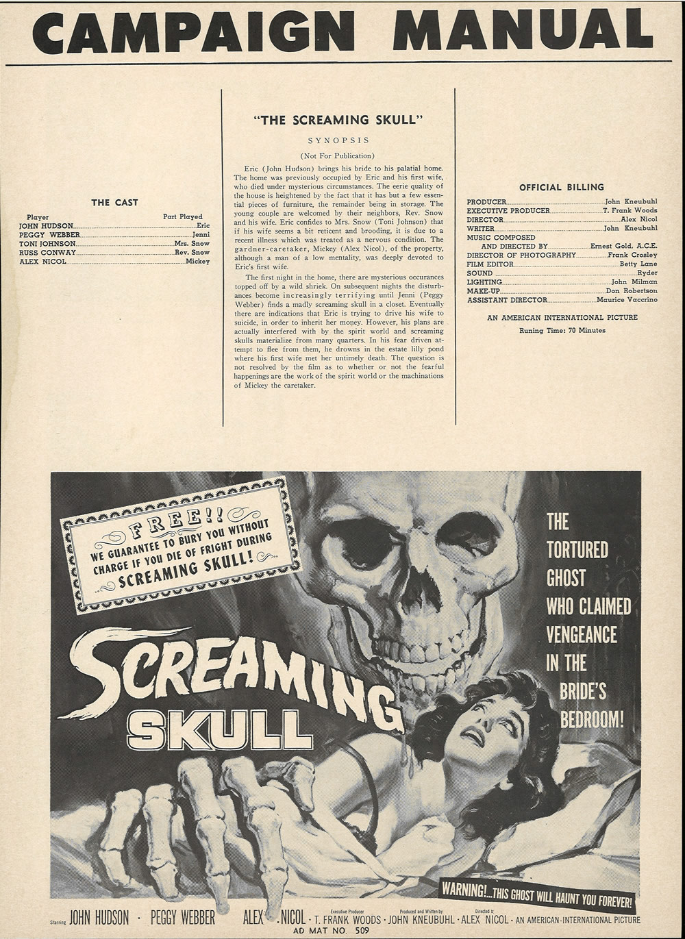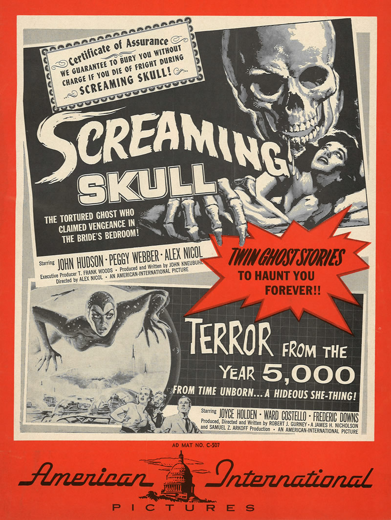 Double Bill Pressbook: Screaming Skull and Terror From the Year 5,000 Part 1 Leave a Comment / Pressbooks (Horror, Sci Fi, Fantasy) / By JM Cozzoli Look for part 2 in another post!Like this:Like Loading... Share this post Facebook Twitter Pinterest Linkedin