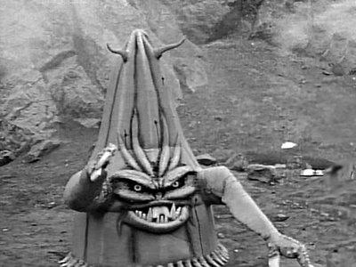 Beulah (aka Tee-Pee Terror, Cucumber Critter, Carrot Monster, Denny Dimwit) in It Conquered the World: 1950s science fiction movies had so many silly monsters to make fun of for sure, but there’s something so engagingly bewildering about Roger Corman’s decision to let this Venusian alien run amok (more like roll slowly, actually) before a camera. Were merchandising a consideration at the time, I will say it does make for quite a cool toy to threaten your Major Matt Masons or Space 1999 action figures with, especially with those mind-controlling little bat-like floppy fliers (launched from a place on its conical body that will remain unmentioned here), and its long, but rigid, arms.