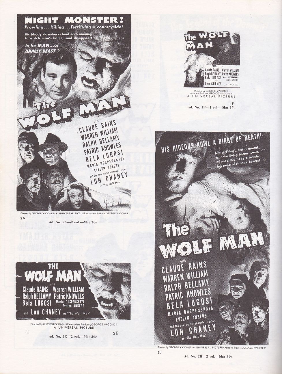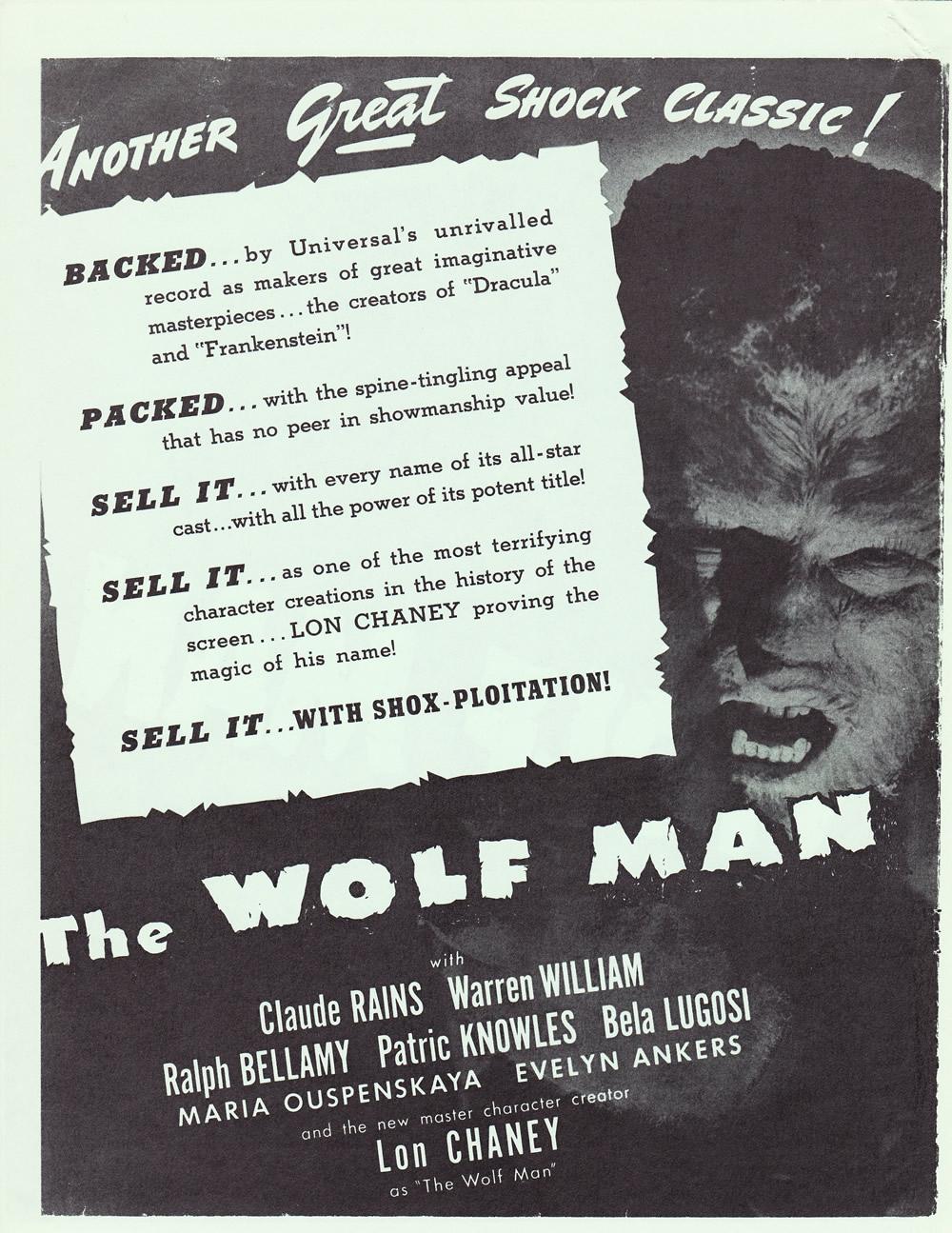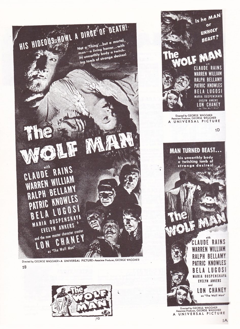Courtesy of Tony Rivers comes these scans for the movie pressbook to the Universal Studios classic, The Wolf Man! Once again, the showmanship pages are killer.