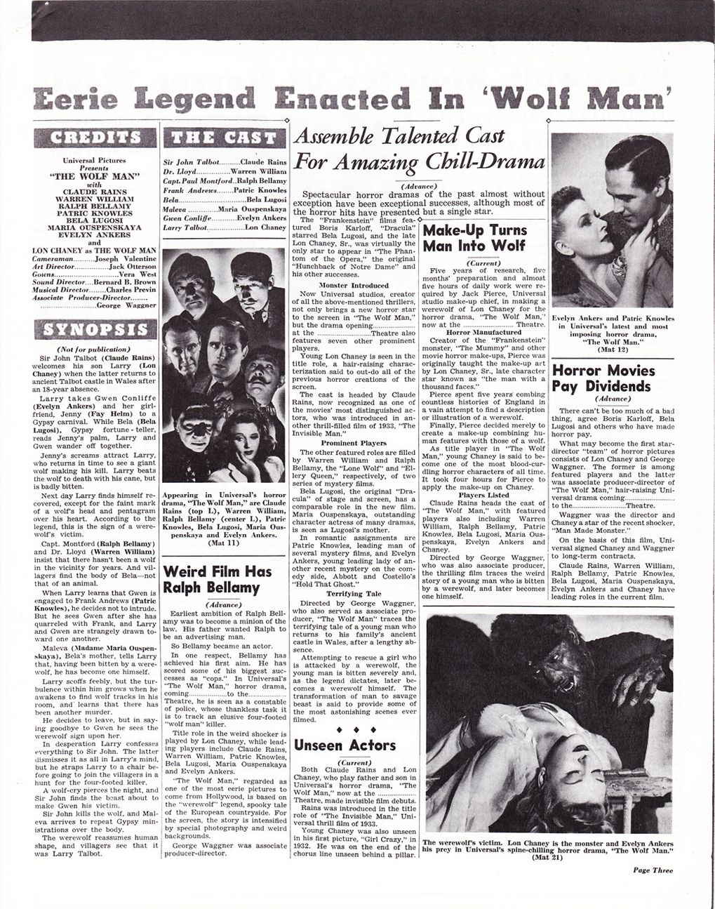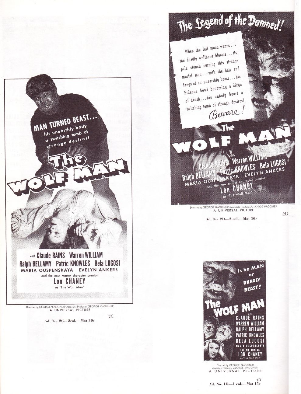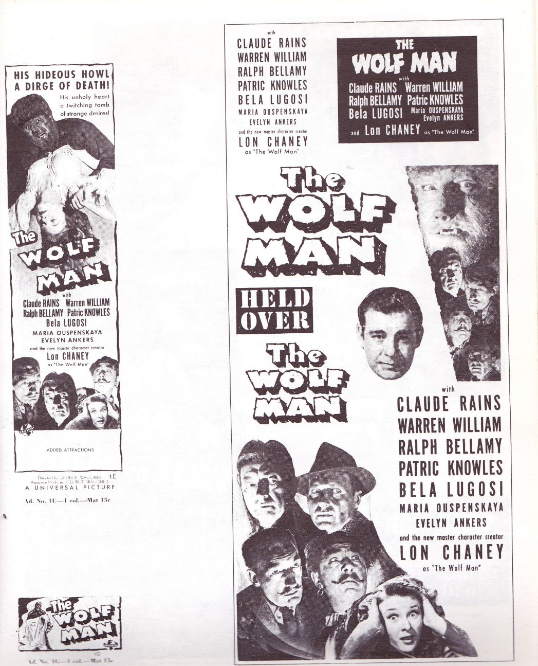 Courtesy of Tony Rivers comes these scans for the movie pressbook to the Universal Studios classic, The Wolf Man! Once again, the showmanship pages are killer.
