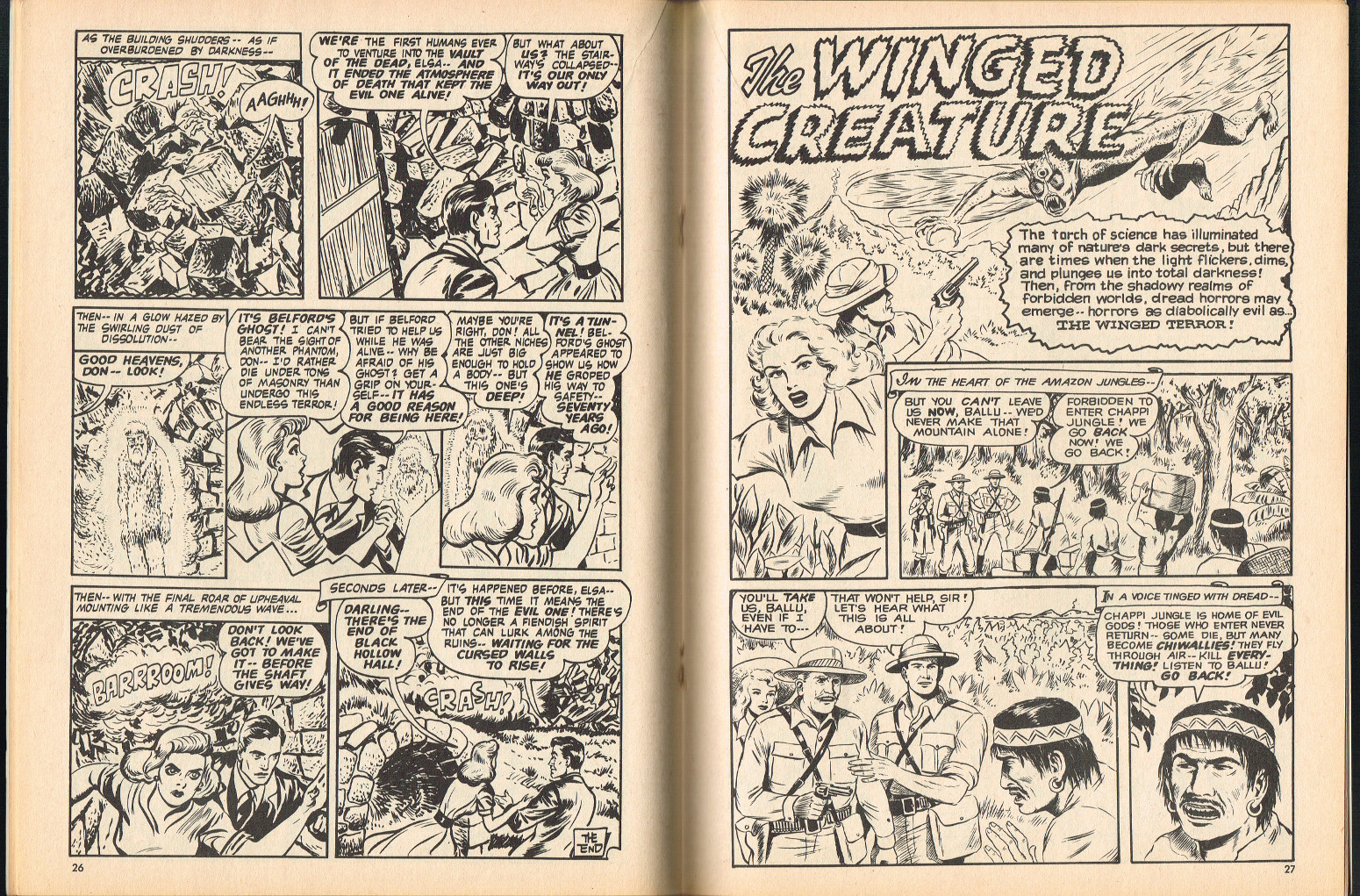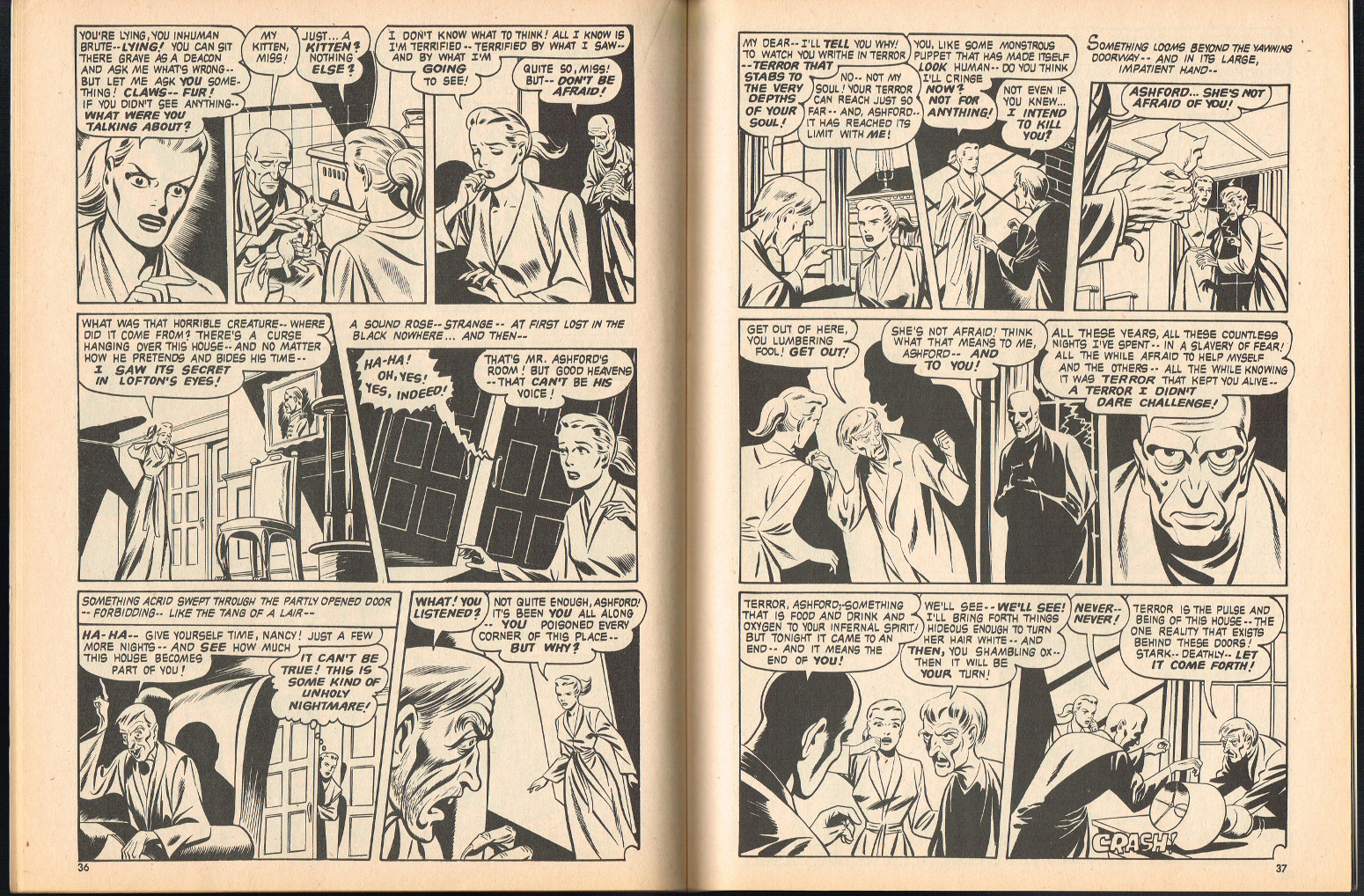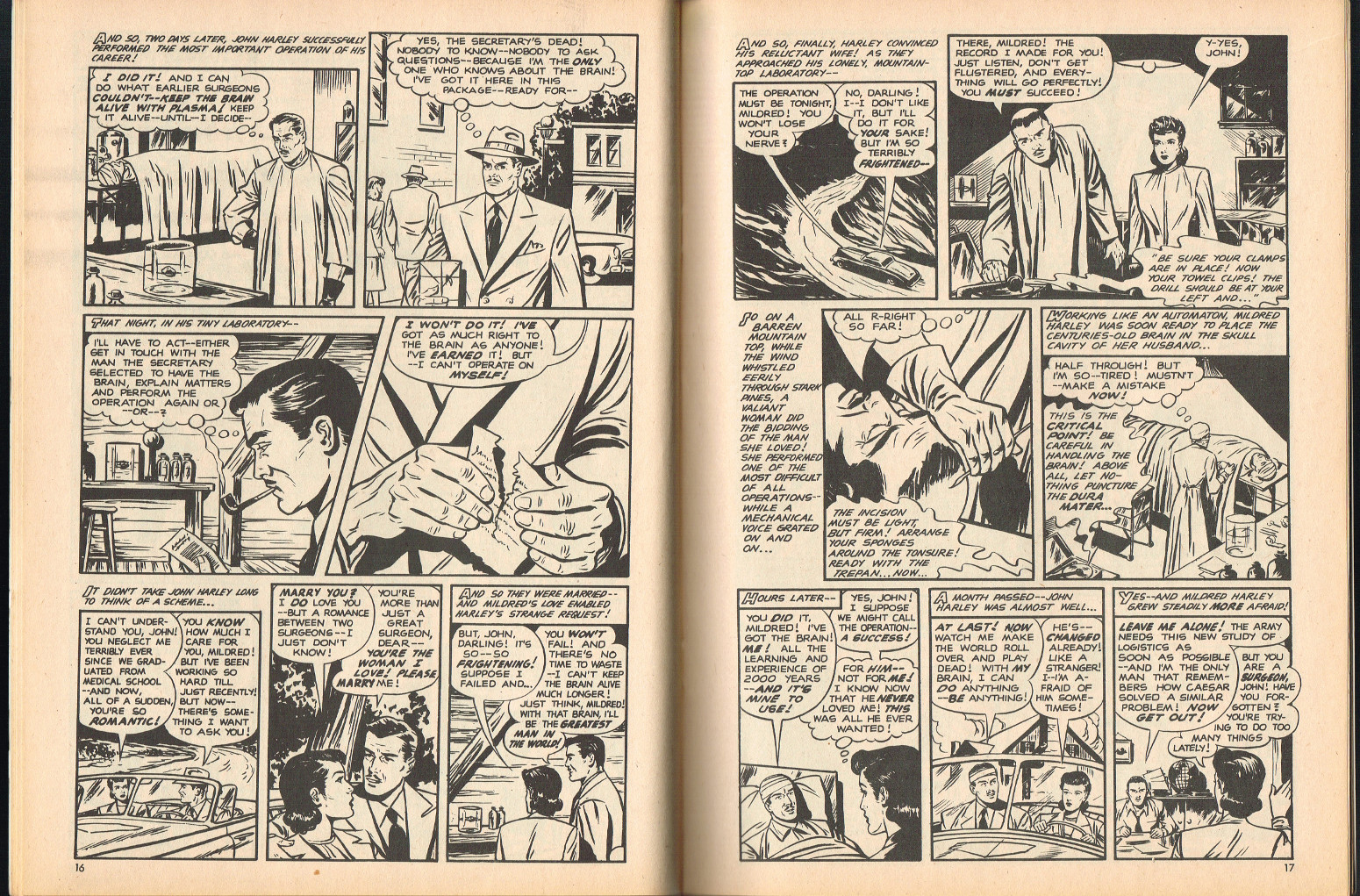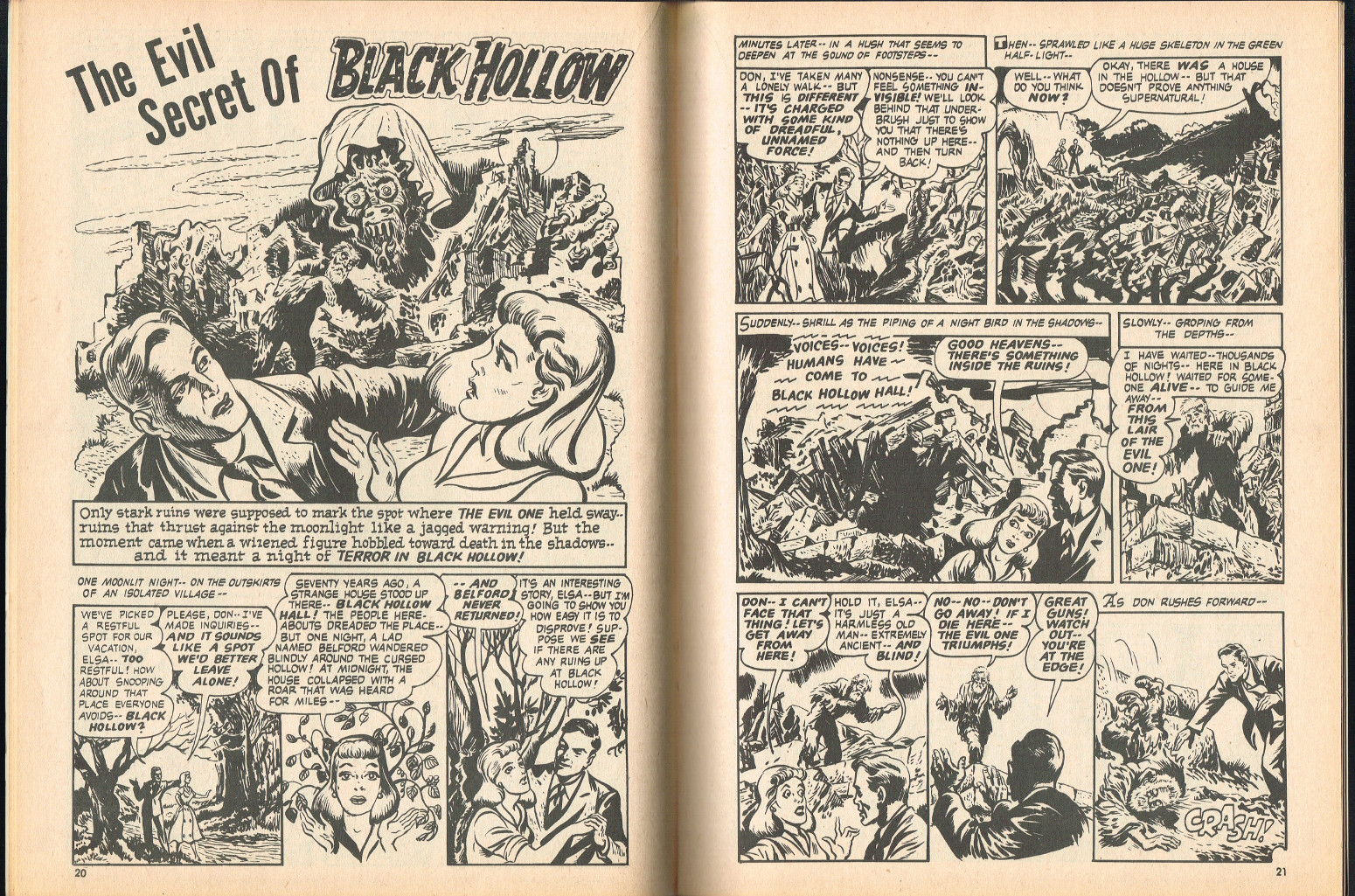 A slick gruesome cover helps to make this issue of Shock: Chilling Tales of Horror and Suspense sizzle. Did you know that salt extracted from Caribbean kelp can kill an unstoppable zombie? Or sharing your brain with others isn't all that hard to do? (How many of you give a piece of your mind to somebody every day?) Or that mummies have good harmony? "We have no grave, we have no bier. But let two mortals enter here, they'll end the curse with human breath, and doom this atmosphere of death!" Enter if you dare, I dare you.