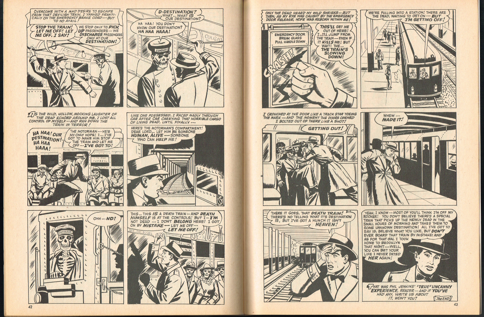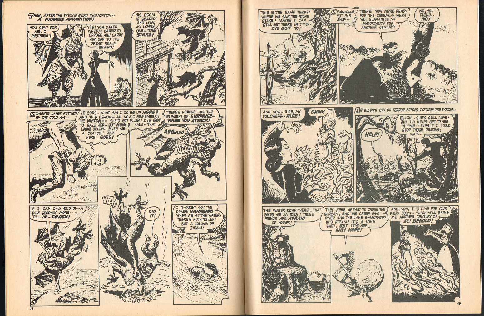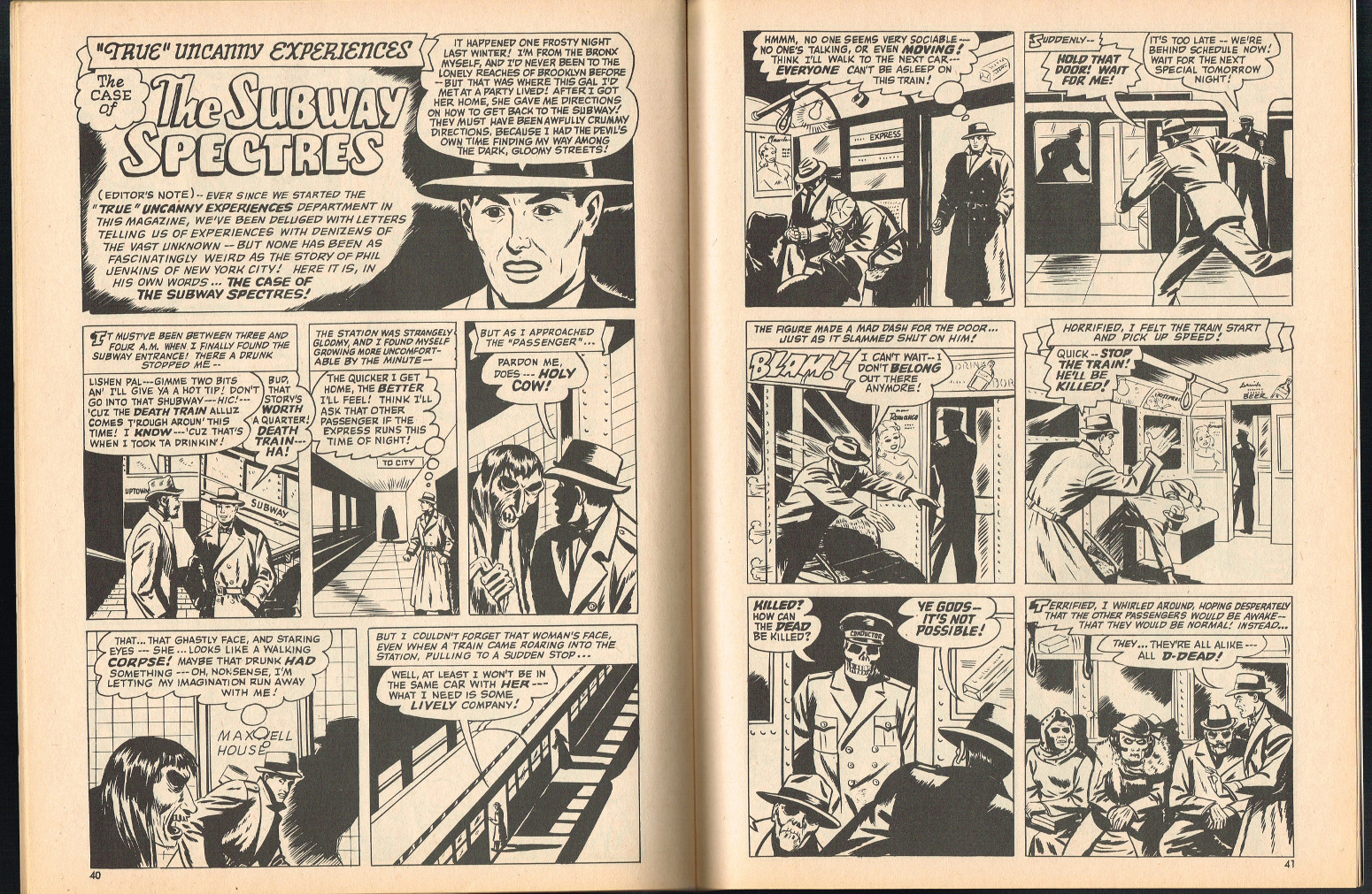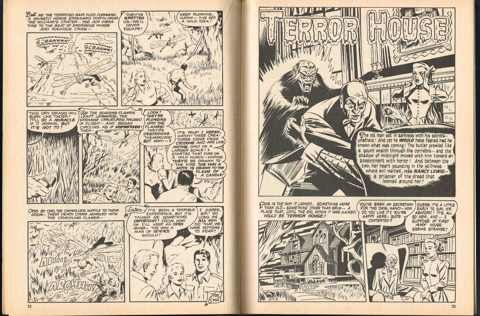 A slick gruesome cover helps to make this issue of Shock: Chilling Tales of Horror and Suspense sizzle. Did you know that salt extracted from Caribbean kelp can kill an unstoppable zombie? Or sharing your brain with others isn't all that hard to do? (How many of you give a piece of your mind to somebody every day?) Or that mummies have good harmony? "We have no grave, we have no bier. But let two mortals enter here, they'll end the curse with human breath, and doom this atmosphere of death!" Enter if you dare, I dare you.