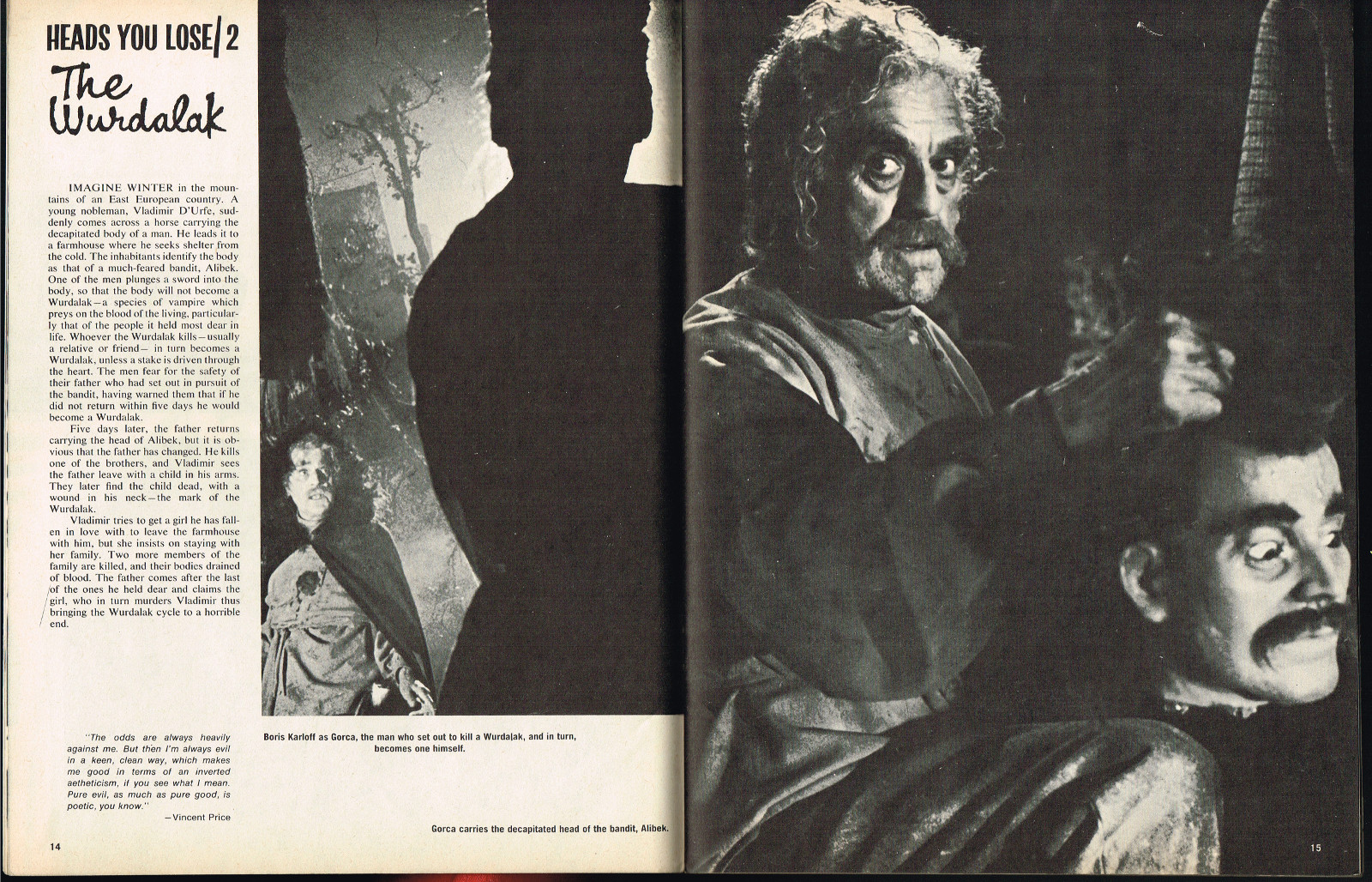 In this first issue, the Sovereign of the Sinister interview with Vincent Price begins, Isobel Black tells Shriek! about A Day in the Life of a Vampire, and Tallulah Bankhead is interviewed. ( Download Comic Reader Version of Shriek Issue 1)