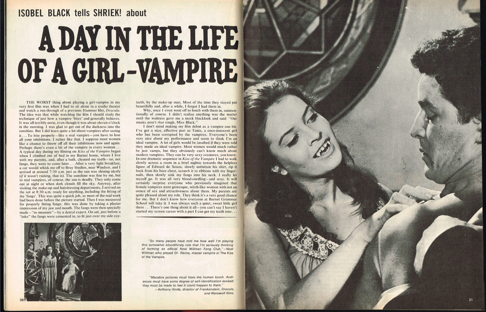 In this first issue, the Sovereign of the Sinister interview with Vincent Price begins, Isobel Black tells Shriek! about A Day in the Life of a Vampire, and Tallulah Bankhead is interviewed. ( Download Comic Reader Version of Shriek Issue 1)