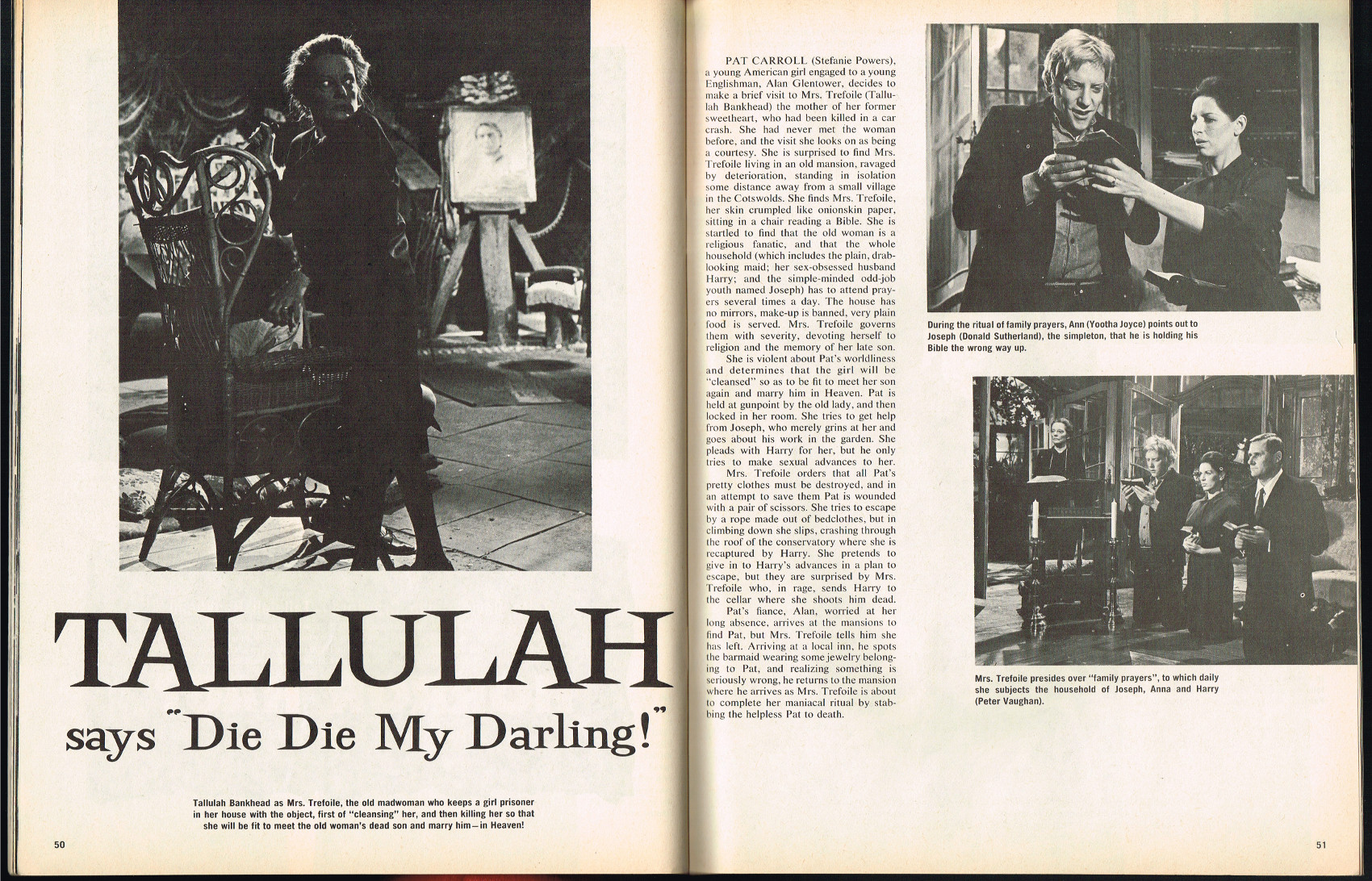 as I recall it, Stefanie powers deserved to die in die die my darling because she was so feeble & could barely even run..