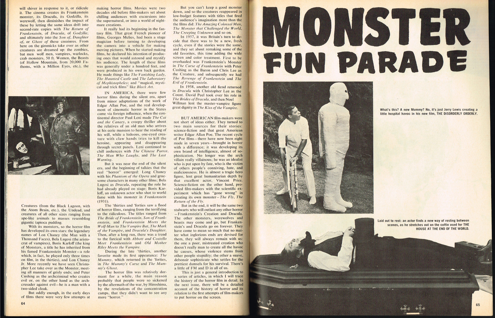 Like Castle of Frankenstein, Shriek! The Monster Horror Magazine, went for more sophisticated coverage of horror movies than most of the other monster magazines were striving for. With ample photographs not marred by humorous captions and it's three-column format, Shriek! was easy to read and didn't feel padded with unused space (like large text sizes used to fill a page in some magazines). One wonders why it didn't last: maybe its content coming from London proved too difficult to maintain; maybe, with Castle of Frankenstein already established, the need for another similar magazine never materialized; or maybe the logo and cover arrangements didn't stand out enough on the newstand racks?