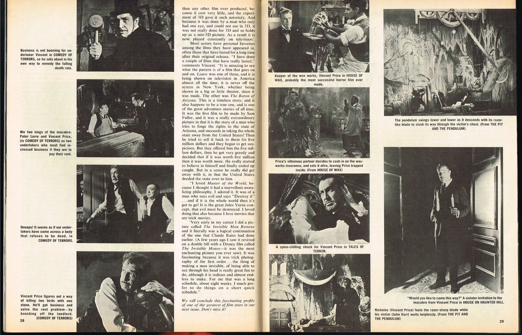 In this first issue, the Sovereign of the Sinister interview with Vincent Price begins, Isobel Black tells Shriek! about A Day in the Life of a Vampire, and Tallulah Bankhead is interviewed. ( Download Comic Reader Version of Shriek Issue 1)