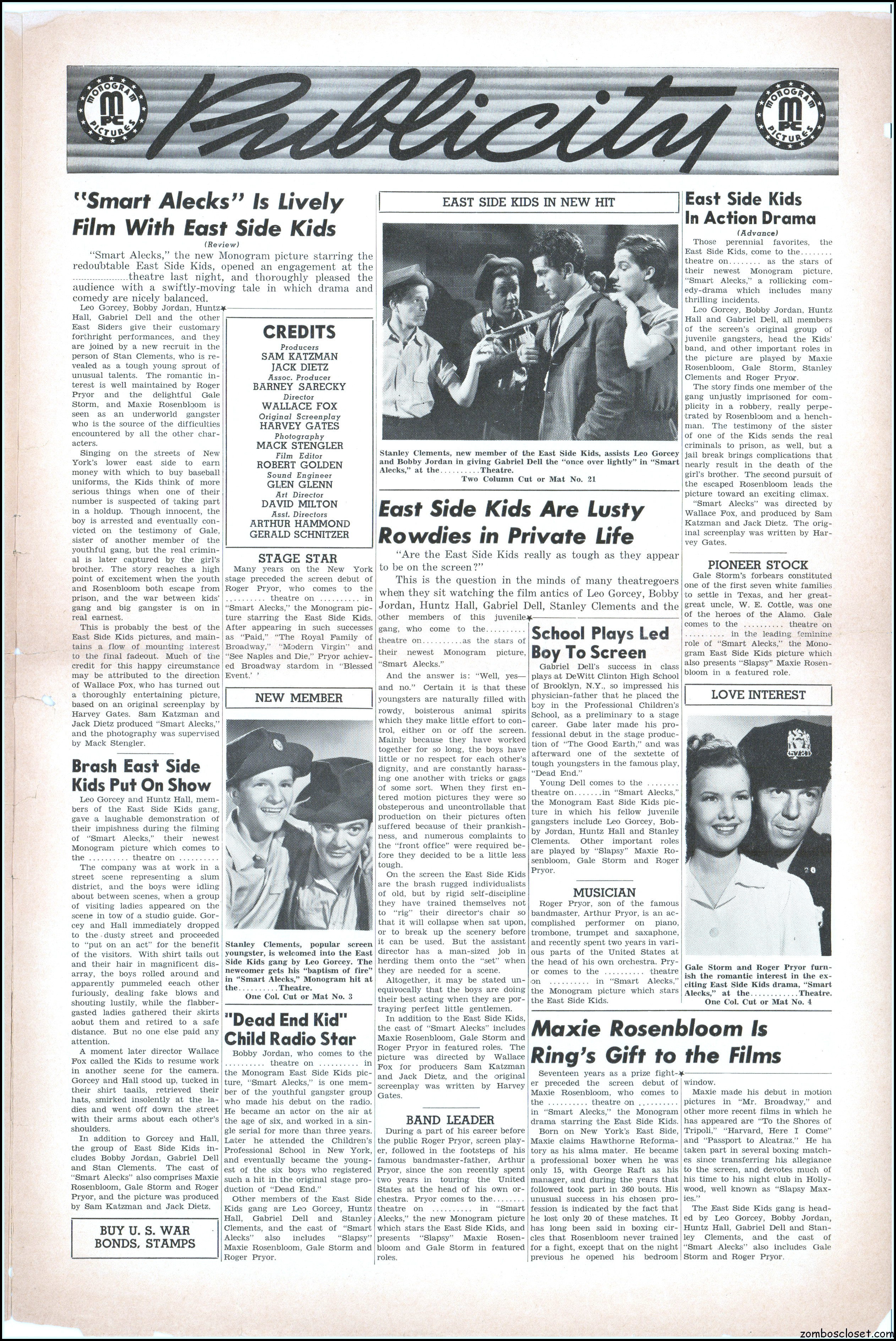 Be a pressbook smart aleck from Zombos’ Closet!