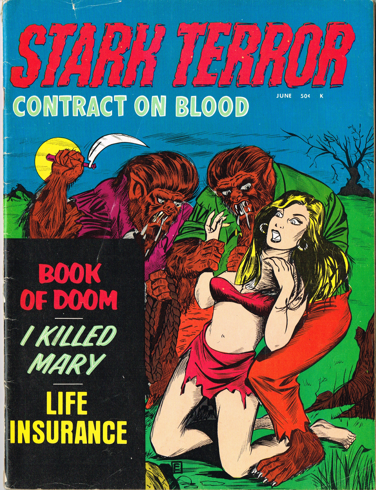 I bet you didn't know that werewolves carry weapons and big coils of rope, and have a penchant for drooling over scantily clad ladies wearing big hoop earrings? But they do if only for Stanley Publications' Stark Terror magazine. Here's some nifty horror comics to assuage that feeling of dread and despair we all feel after Halloween as we wait for next year's to hurry round.