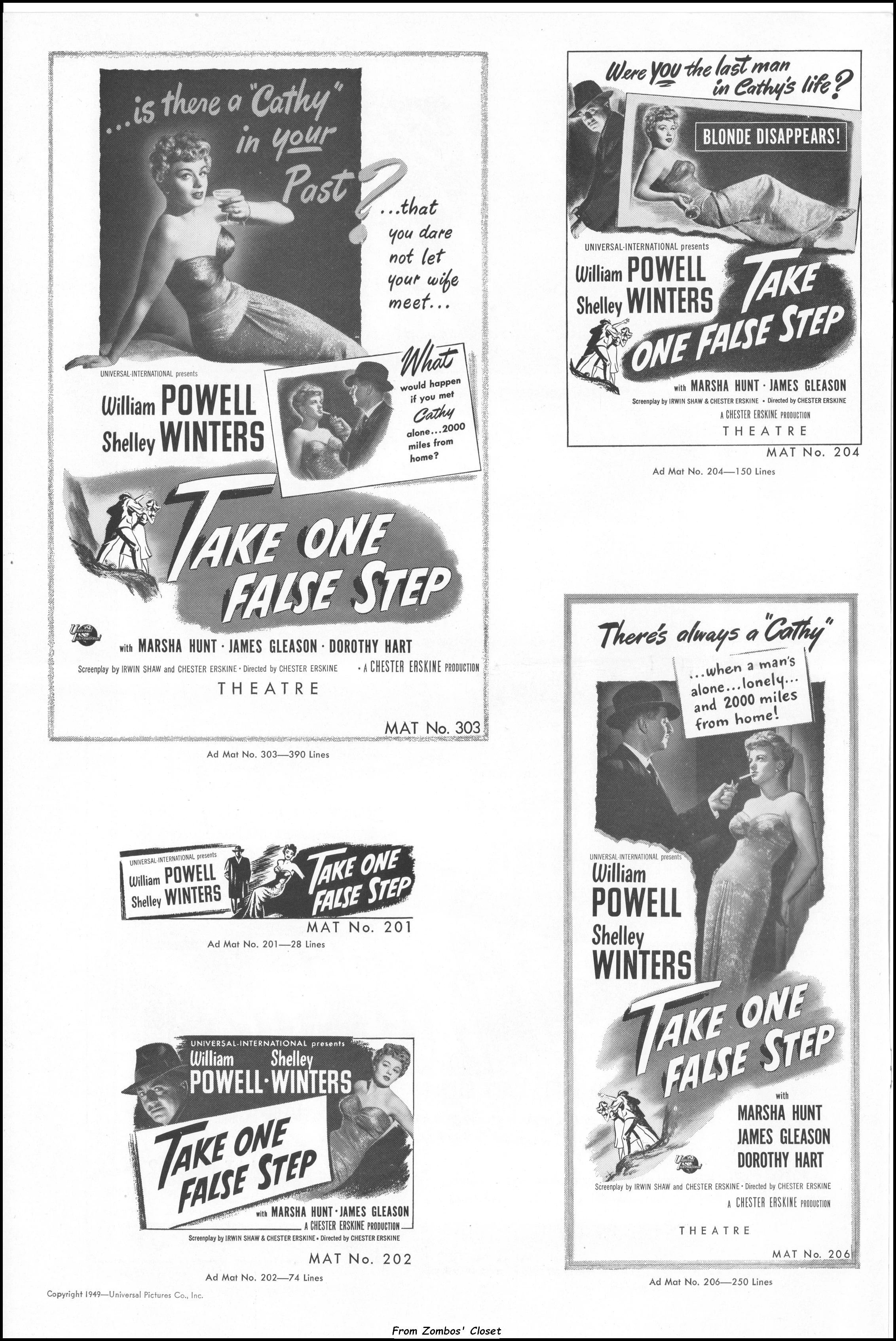 Take One False Step is not a standout for noir crime movies, but it has William Powell (of Philo Vance and Nick Charles notoriety) and Shelley Winters. She is always etched in my mind after watching the 1975 episode of Johnny Carson where she dumped her drink over Oliver Reed’s head after his misogynistic comment to her. You didn’t diss Ms. Winters, who won academy awards and played her own woman in her strong Hollywood career. Her role as the ill-fated Willa in The Night of the Hunter (one of the best noir horrors directed by Charles Laughton, his only time as director), which leads to a chilling and surreal underwater scene of her dead body tied to a Ford Model T is classic and unforgettable. One wonders what other cinematic delicacies Laughton would have provided to the screen had he continued to direct.