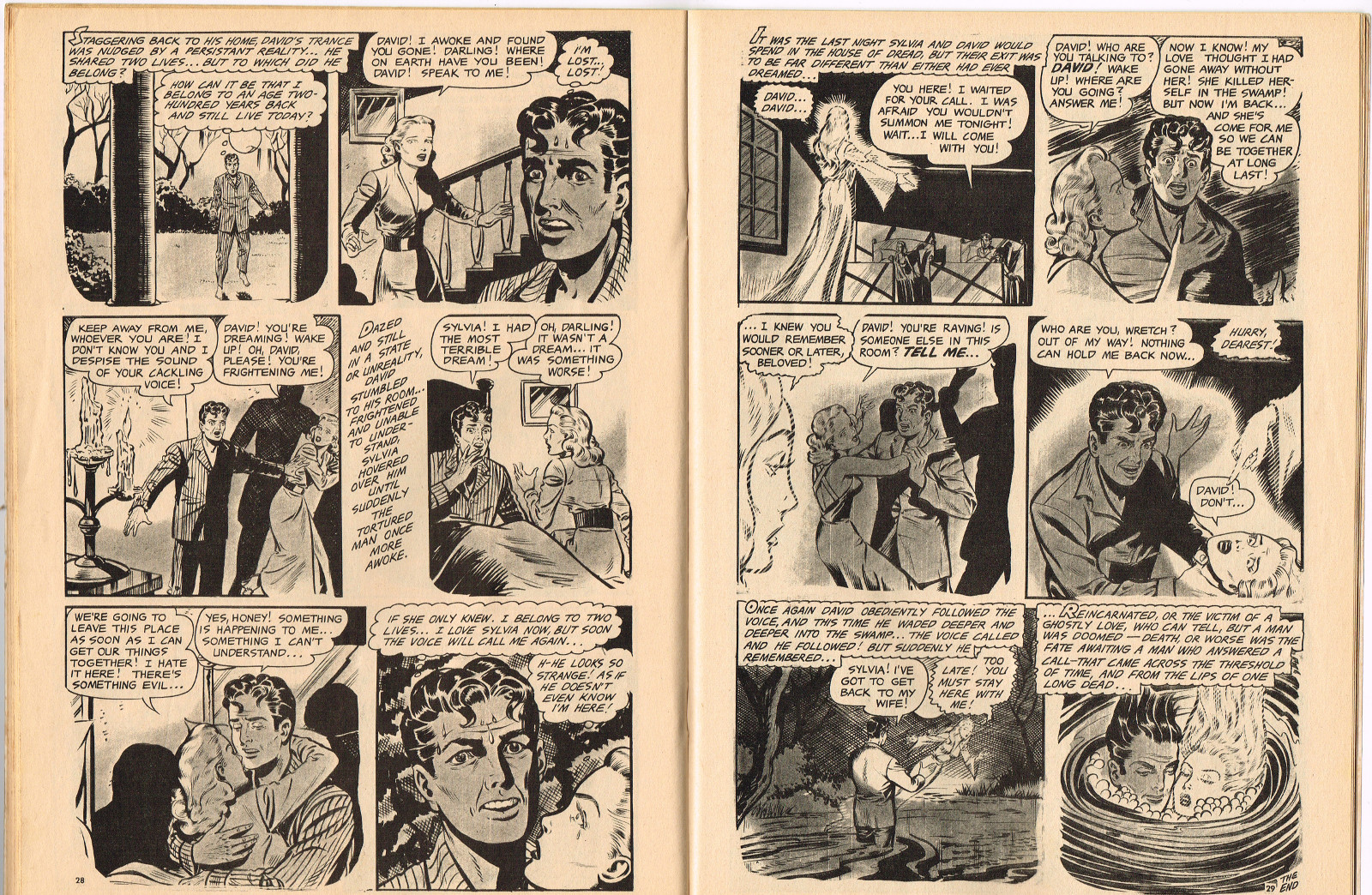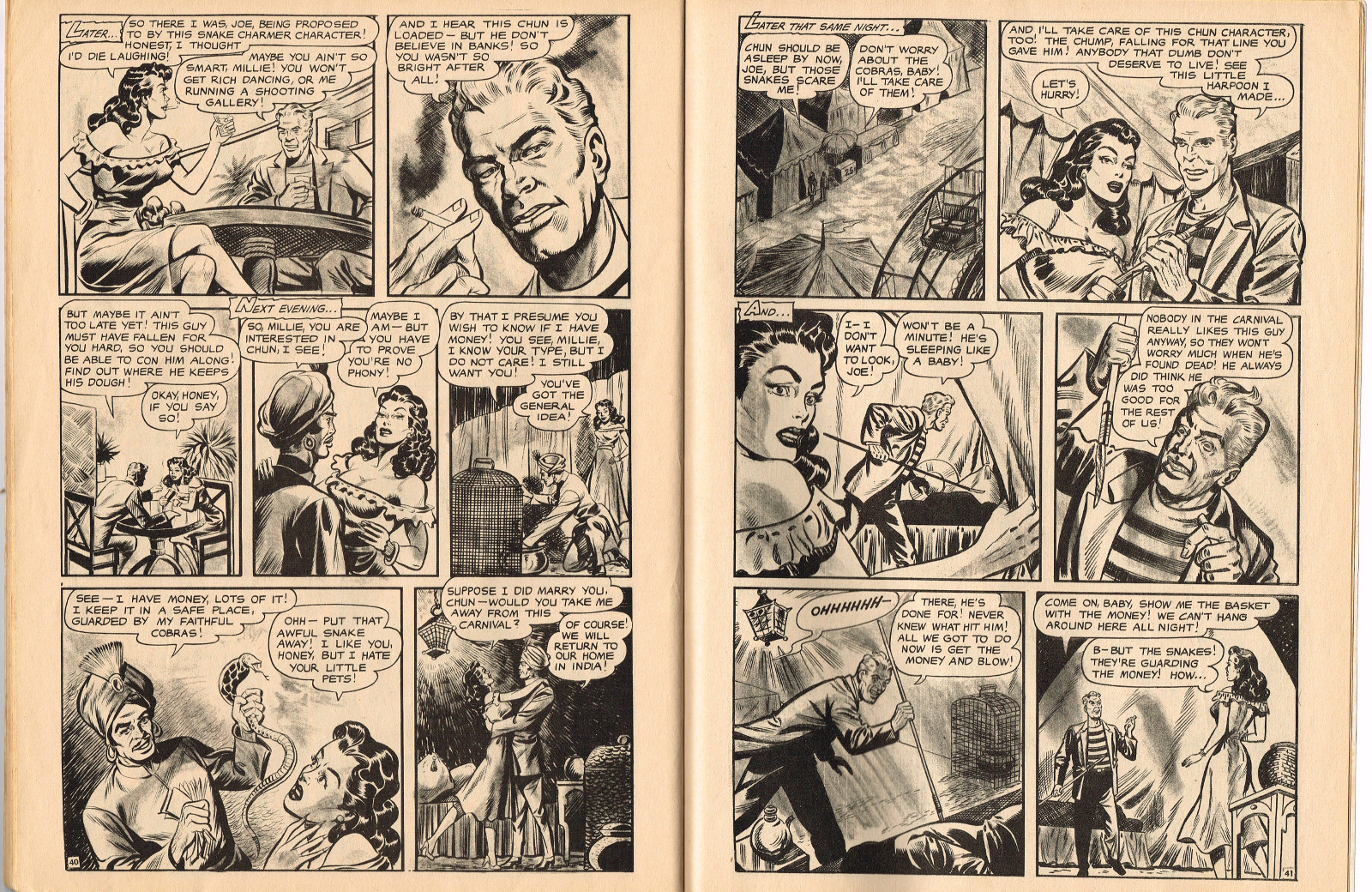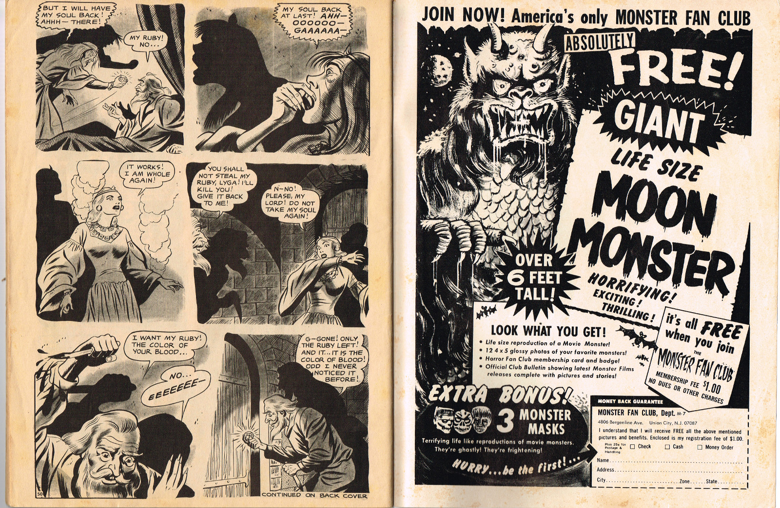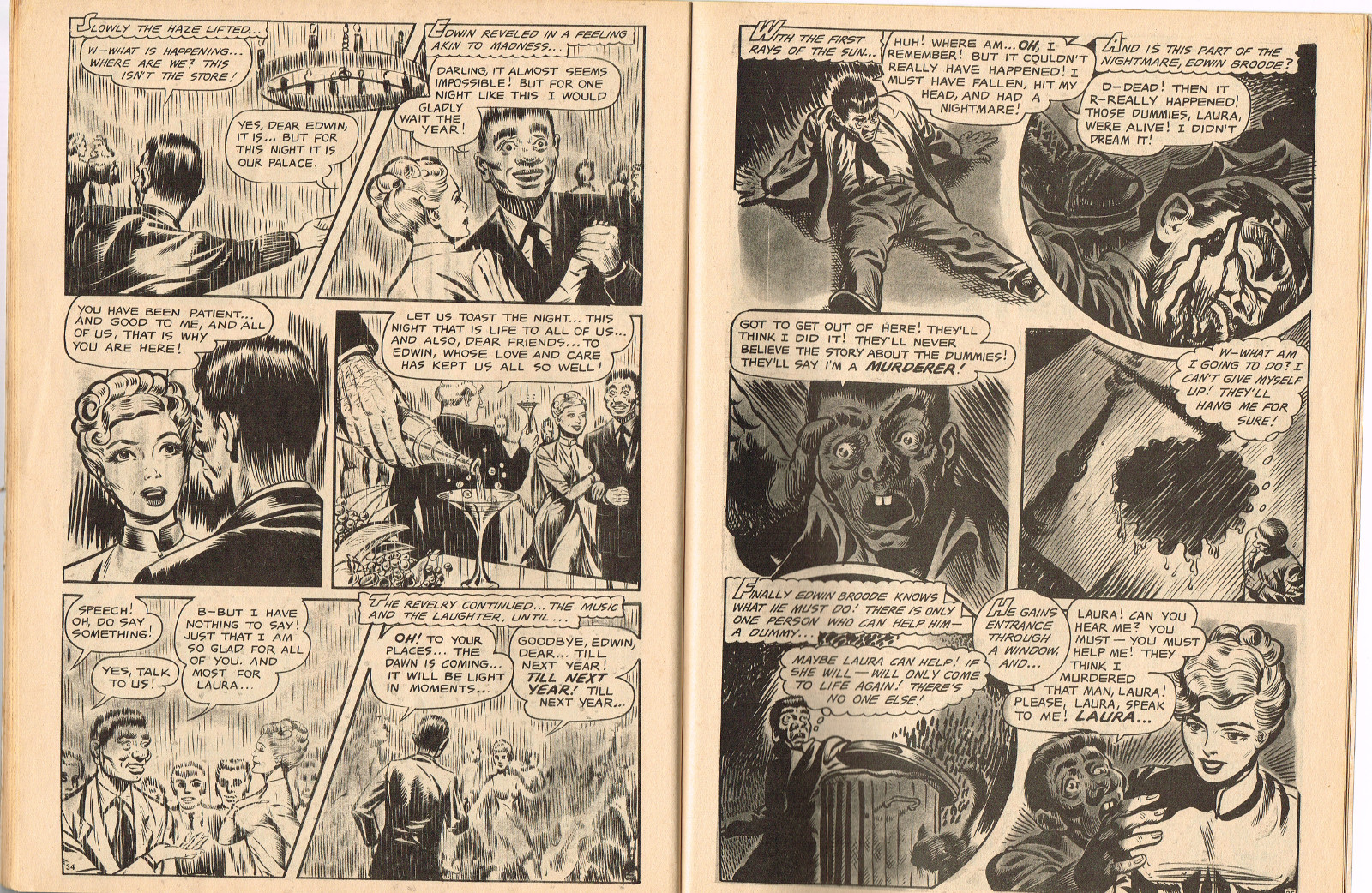 In this creepy and terrifying issue 3, volume 4, of Tales of Voodoo, there's a head filled with vengeance, a little boy with a vampire daddy (some similarity here to the vampire story in Dr. Terror's House of Horrors), and the Cult of Kali has everyone choked up with horror. There's also a ghost in the wet swamp and smartly dressed dummies come to life. To kill! And soon you'll learn that no one laughs at Chun, the snake charmer, when he says "You stabbed a dummy, Joe! A dummy–like yourself!"