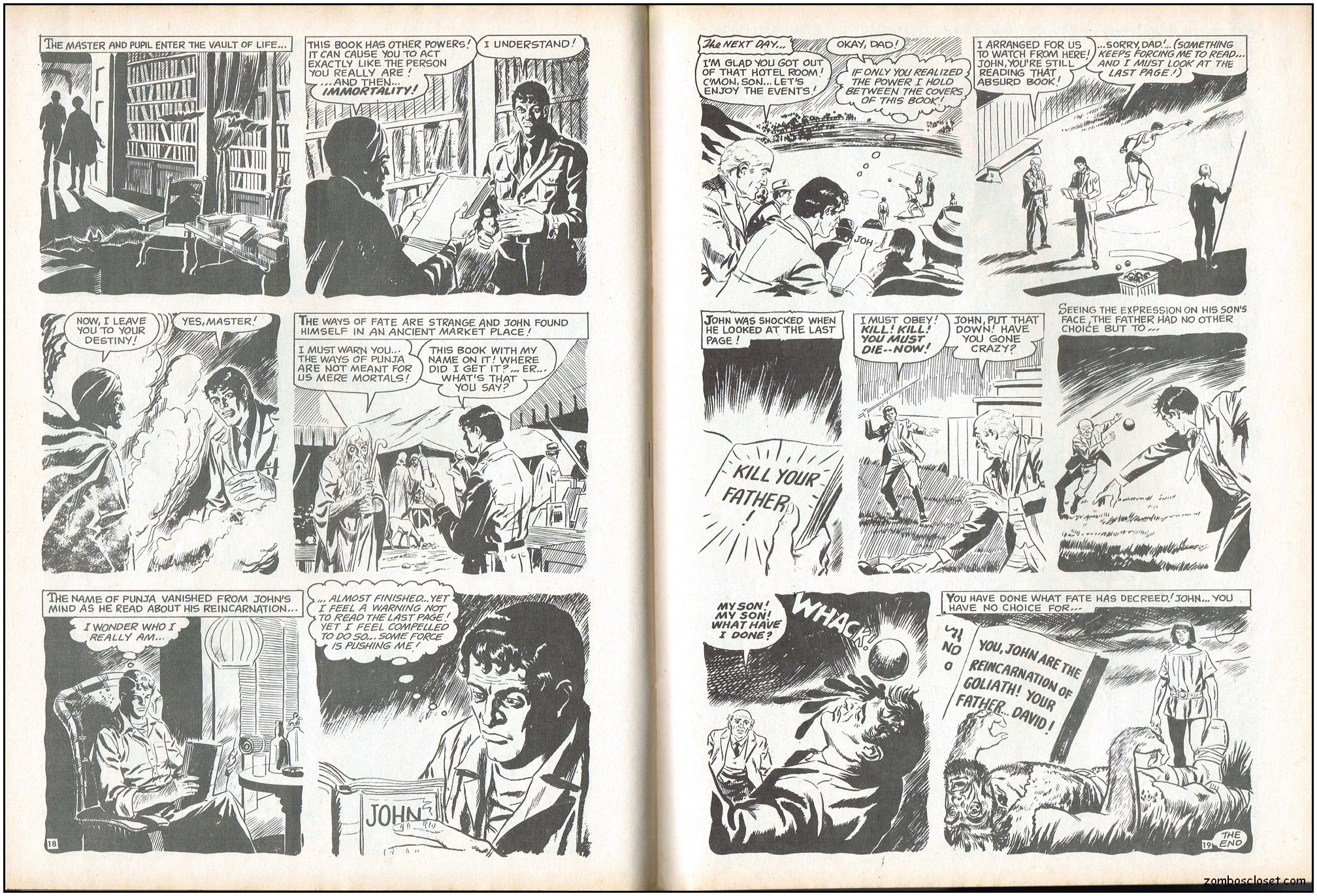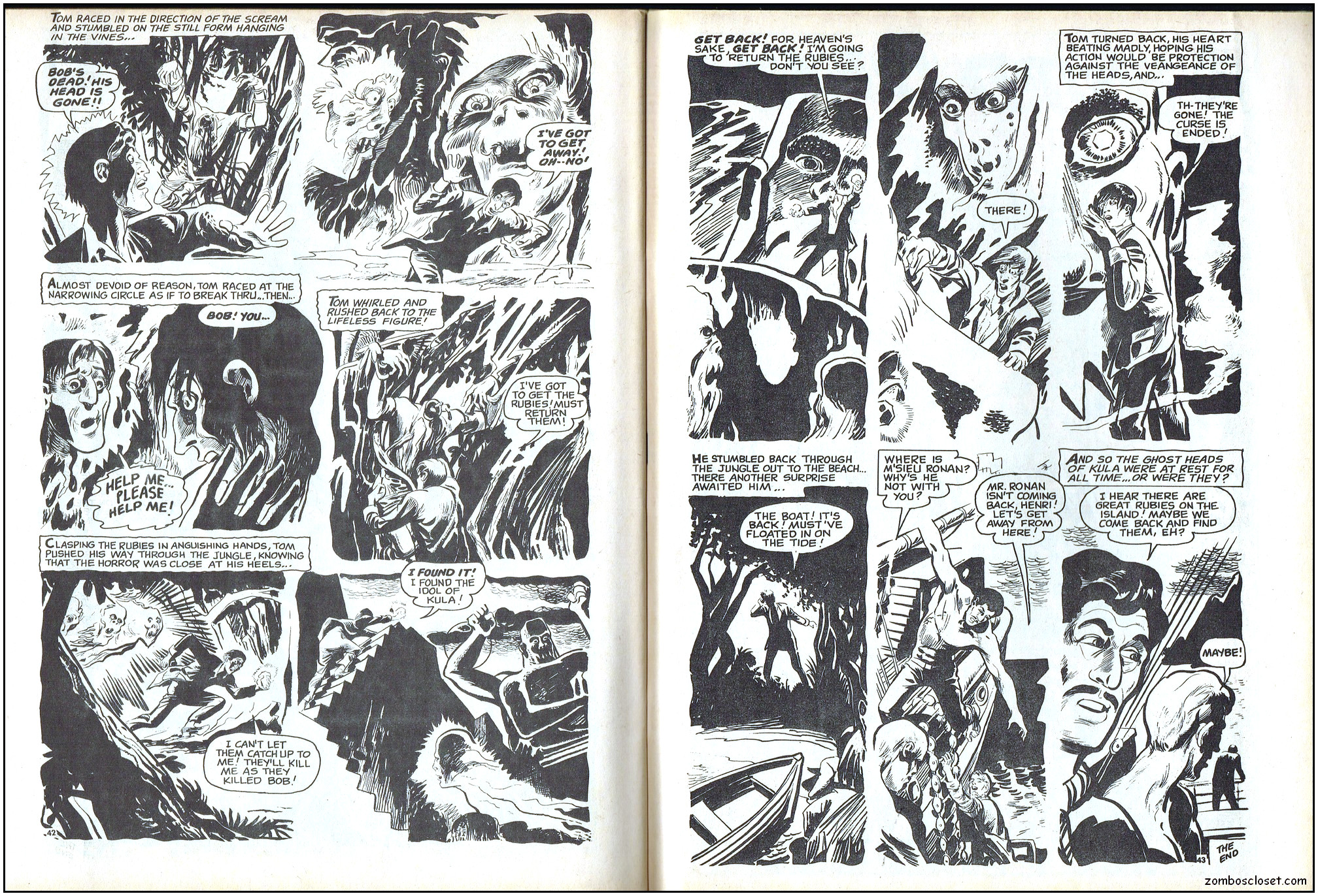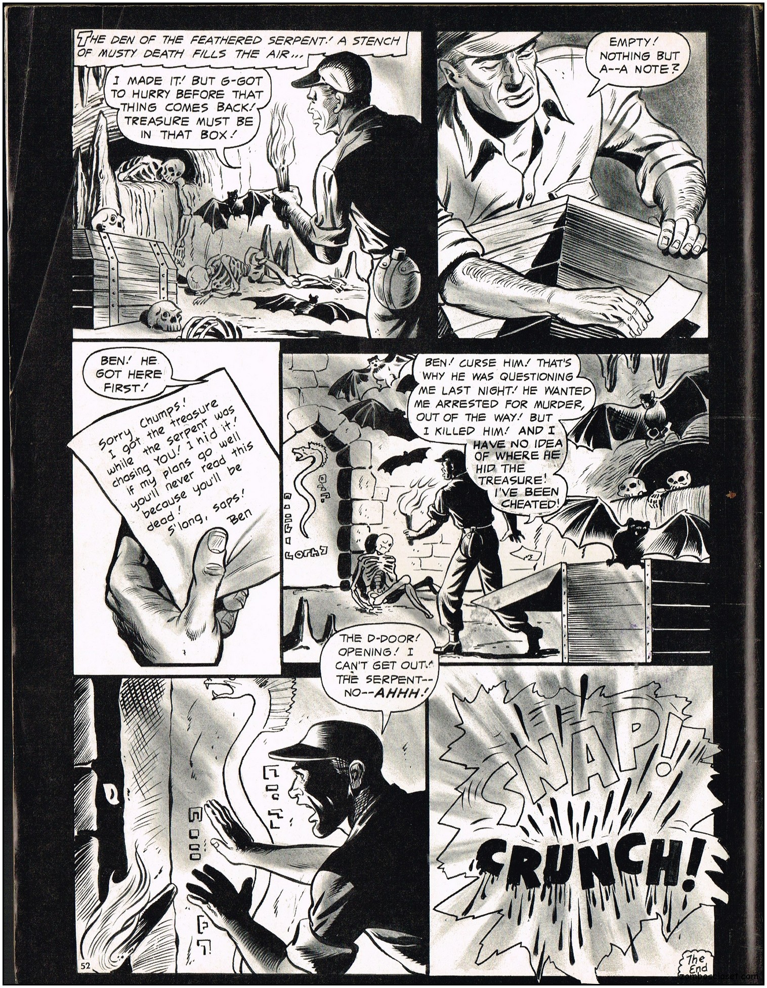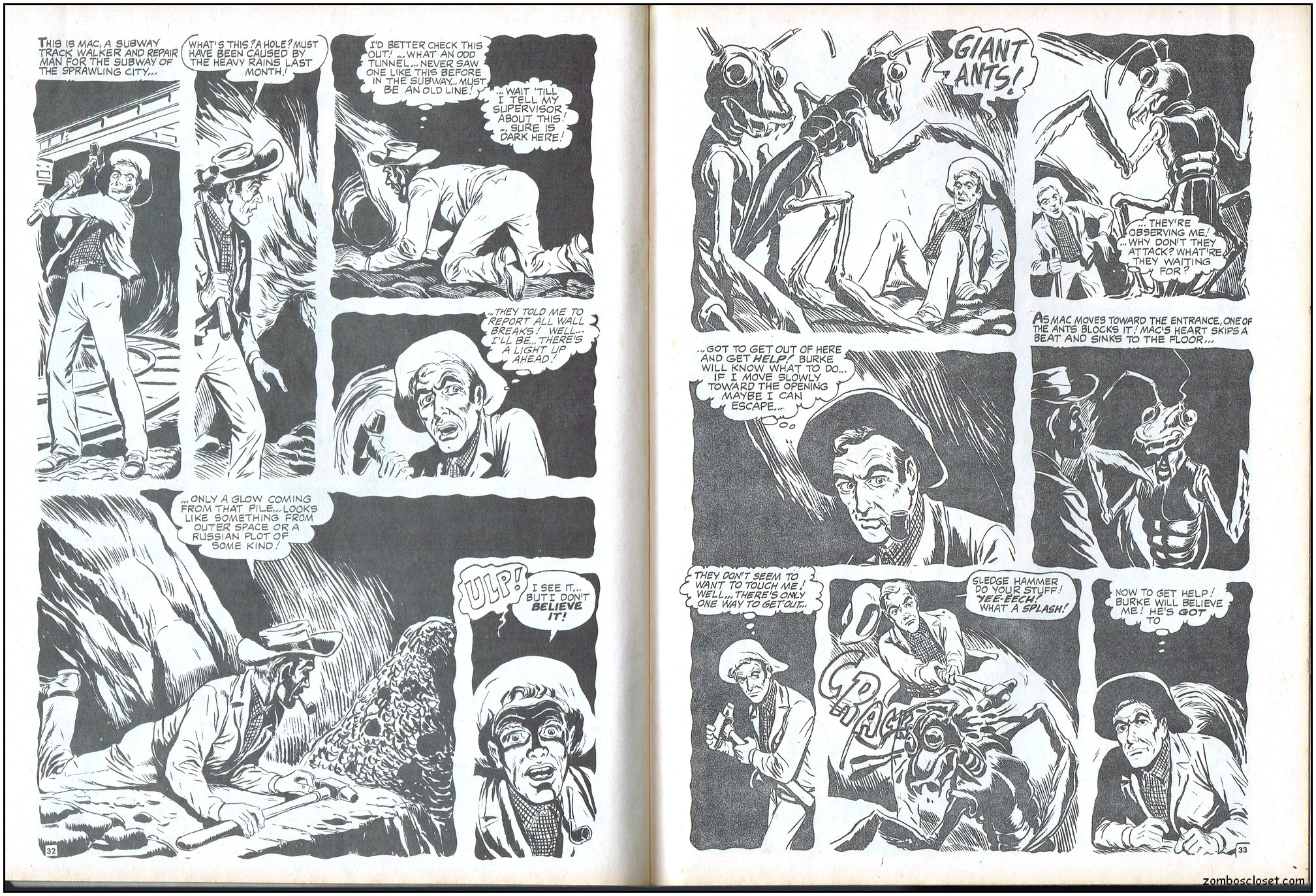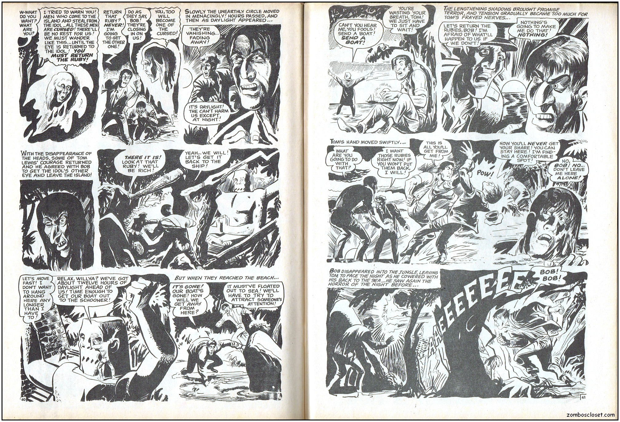 The classic, I Chopped Her Head Off! is in this issue. If you ever wondered why parents and decent citizens (don’t you love that term?) ganged up on the comics industry forcing the bland comics code on us all (but a boon to magazine sales), this one story captures everything you would put on a poster illustrating the evils of comic books. And you can color it in! Yes boys and girls, you too can be seduced by the dark side, just a few color pencils needed. Now that’s one thing I bet you hadn’t thought about. Just print out the pages of this splaterific issue of moral decay and bamm! instant adult coloring book! You can thank me later. Just don’t tell your parents and loved ones where I live. I’ll deny everything.