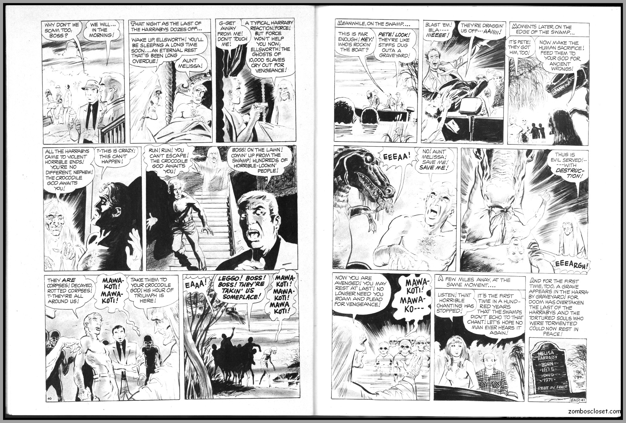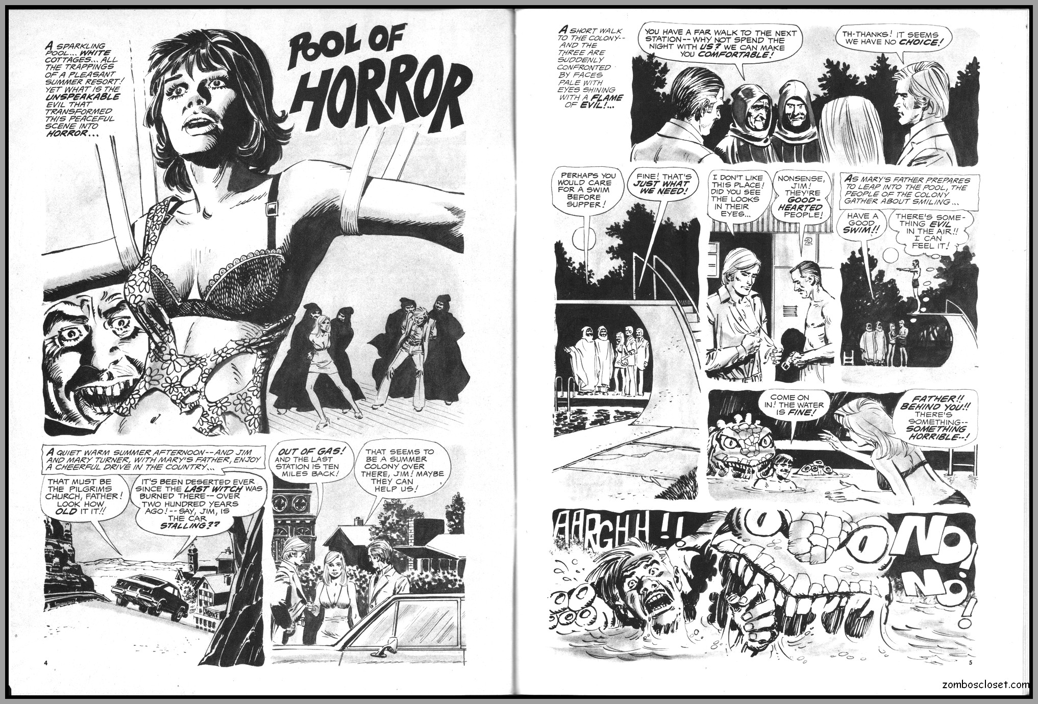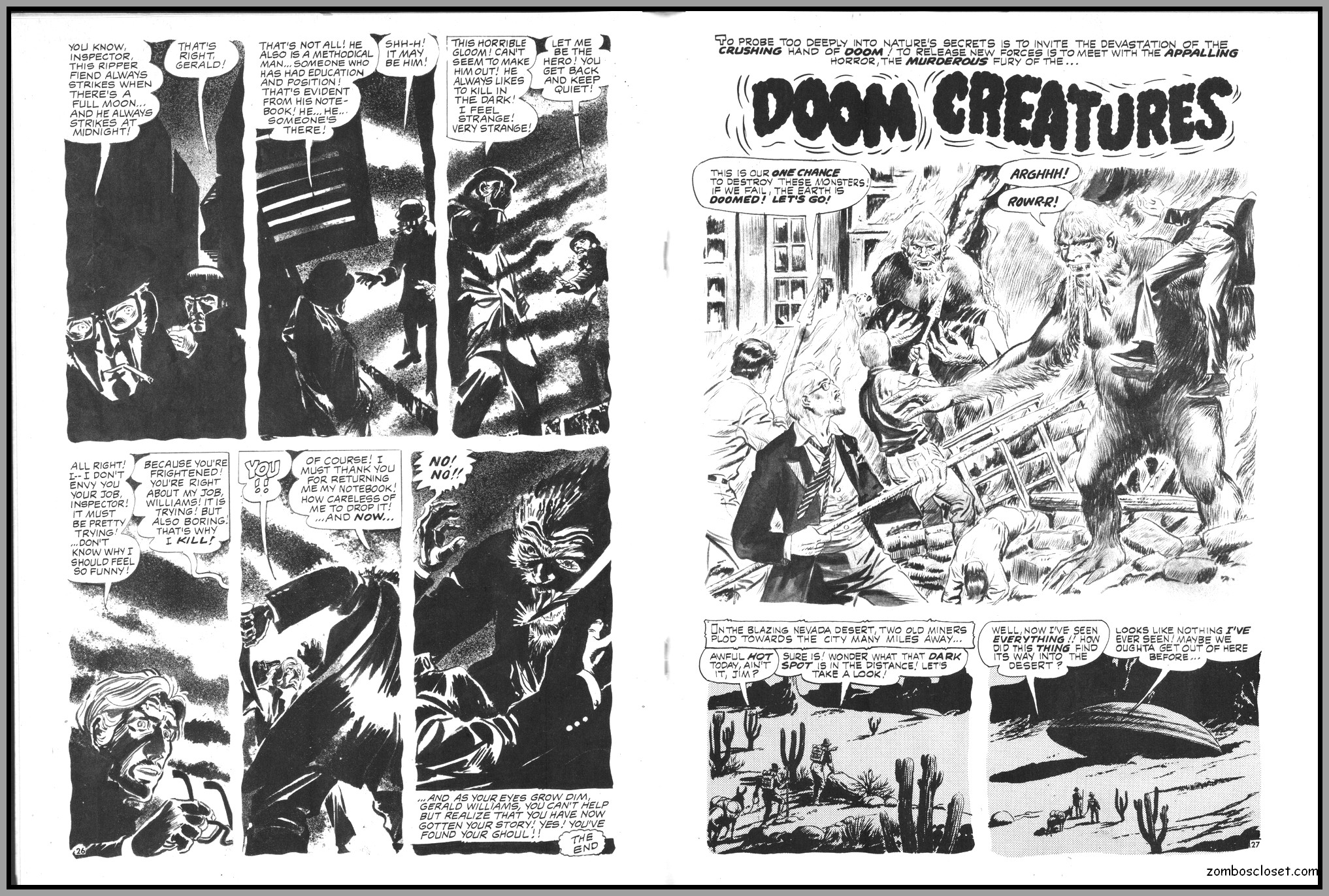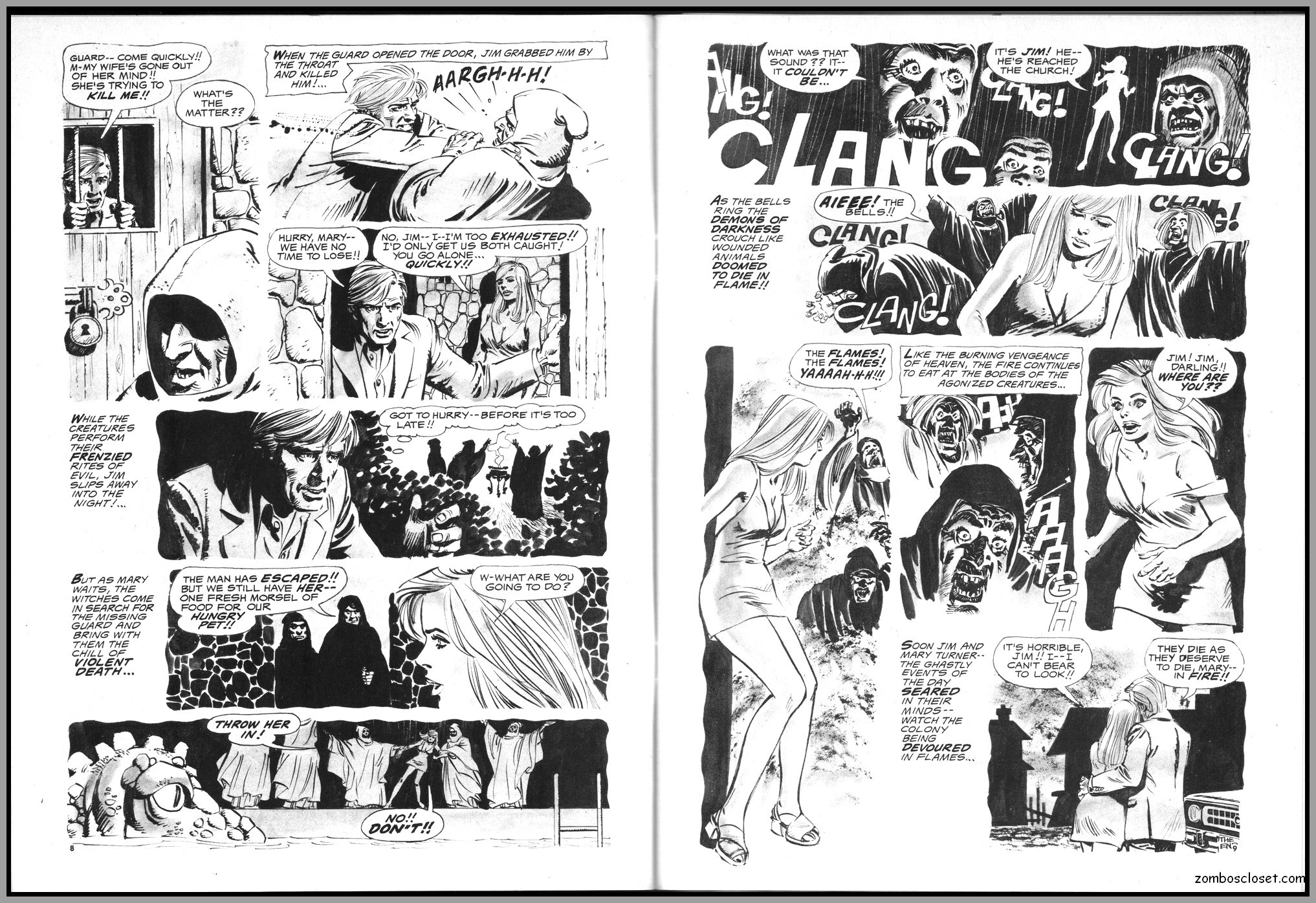 The later issues of Terror Tales, and all other Eerie comics publications, rehashed stories and elements from earlier covers to save money. In this issue, Pool of Horror is reprinted, though I forget from which issue, but hey, enjoy the wonderful black and white art and the usual tropes of political incorrectness (ah, the 1970s), and revel at monsters not caring a wit about it, of course. One story, The Day Man Died, is par for the course of 1960s and 1970s angst about the future, where robots would do all the work. leaving man to idle away his time in endless fun stuff. Seems the writers of these stories forgot the most important thing: You need to buy a robot first, and lord knows how much that will cost. So maybe the story title should have been The Day Those Who Could Afford the Luxury of a Robot Died.