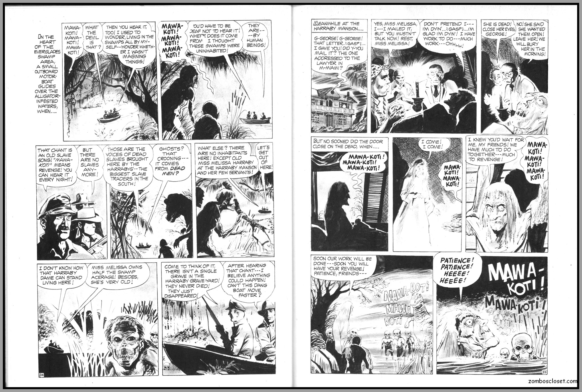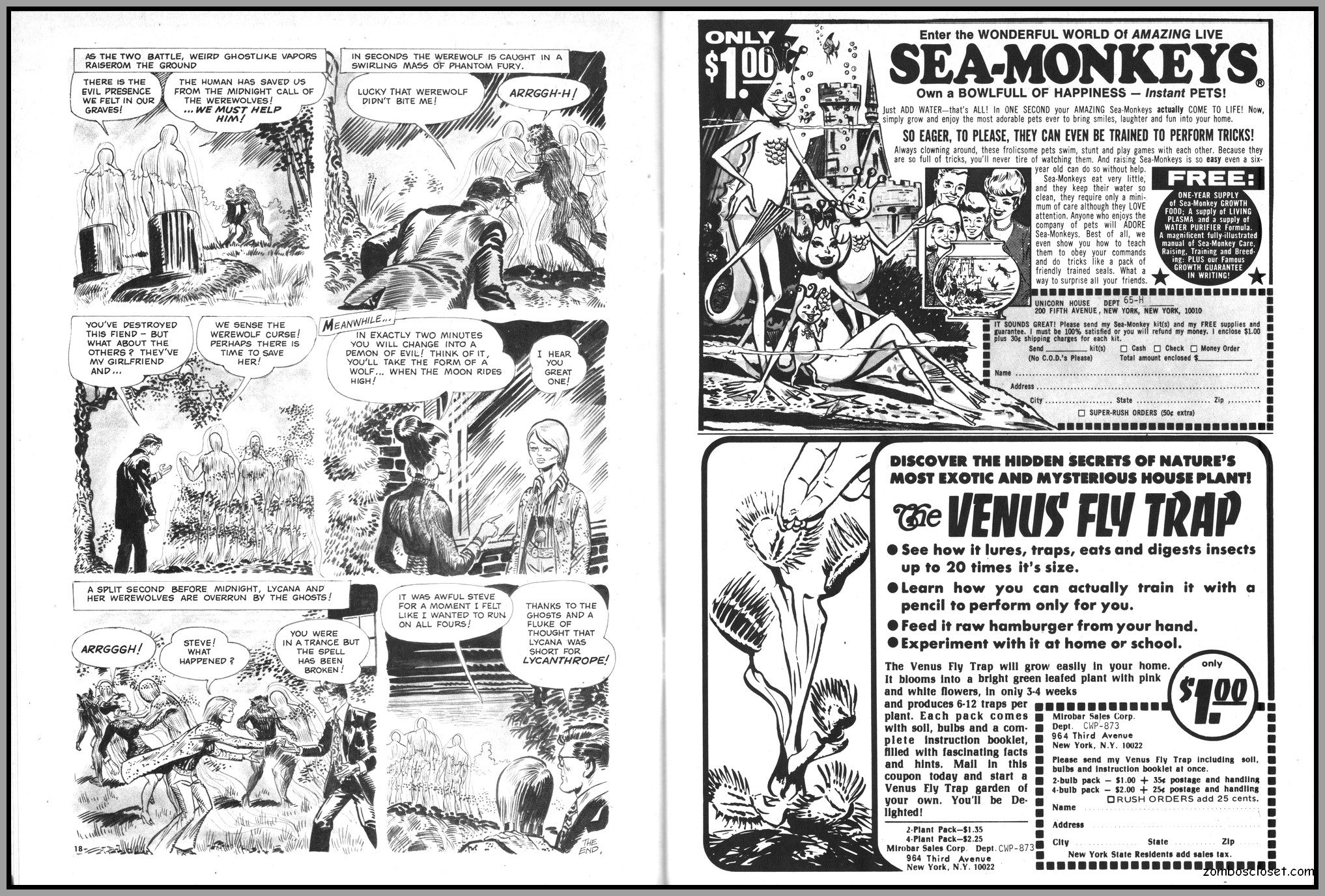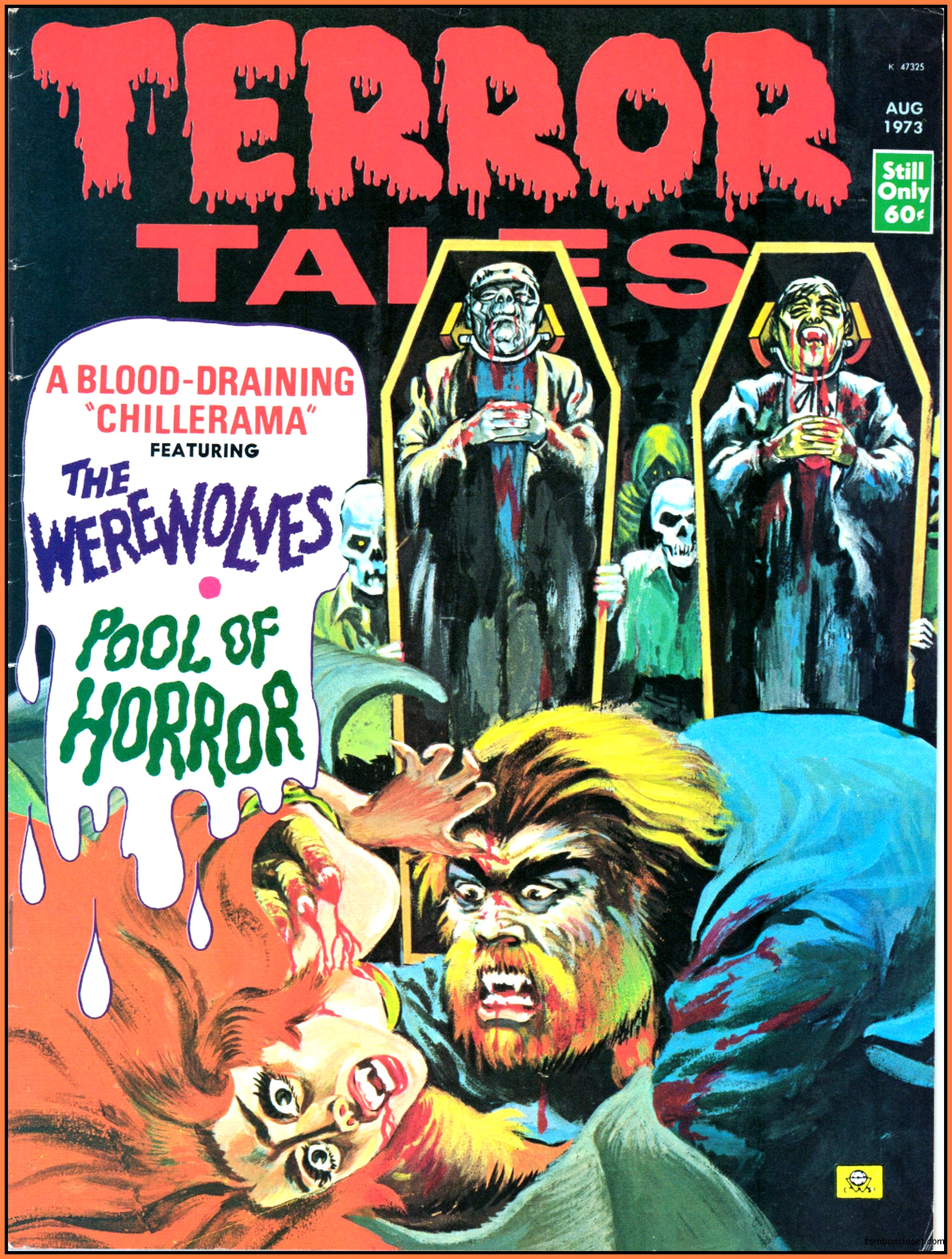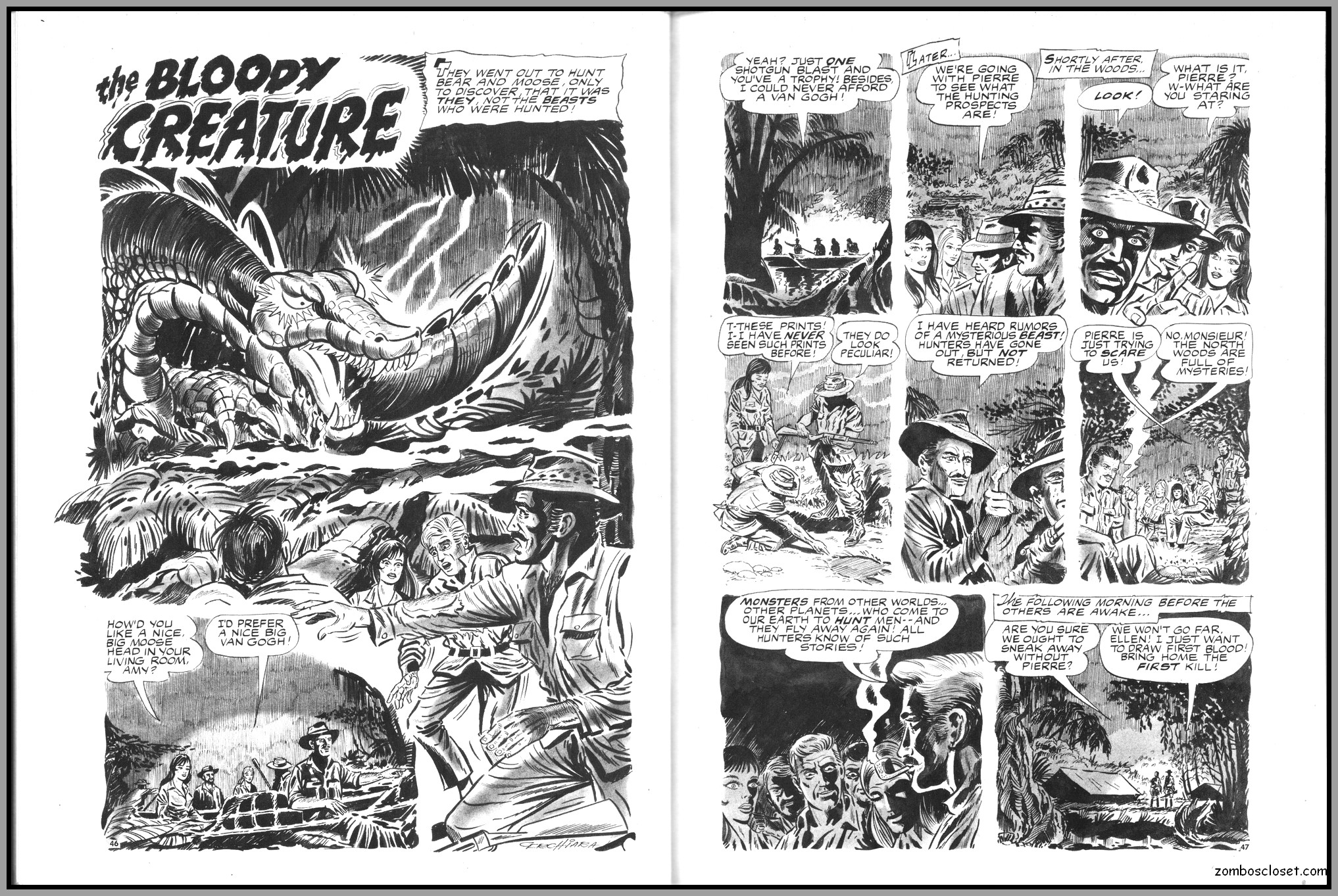 The later issues of Terror Tales, and all other Eerie comics publications, rehashed stories and elements from earlier covers to save money. In this issue, Pool of Horror is reprinted, though I forget from which issue, but hey, enjoy the wonderful black and white art and the usual tropes of political incorrectness (ah, the 1970s), and revel at monsters not caring a wit about it, of course. One story, The Day Man Died, is par for the course of 1960s and 1970s angst about the future, where robots would do all the work. leaving man to idle away his time in endless fun stuff. Seems the writers of these stories forgot the most important thing: You need to buy a robot first, and lord knows how much that will cost. So maybe the story title should have been The Day Those Who Could Afford the Luxury of a Robot Died.