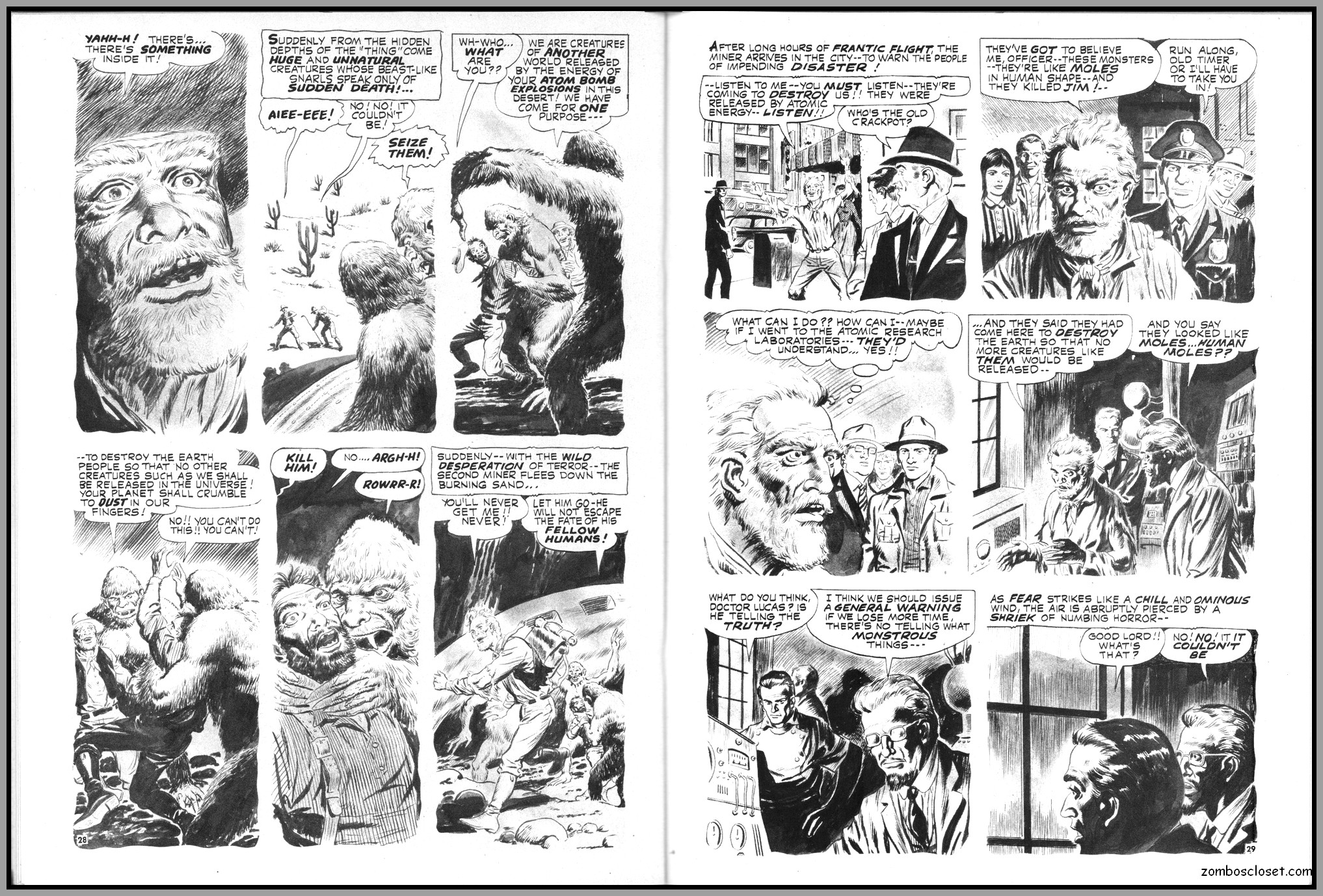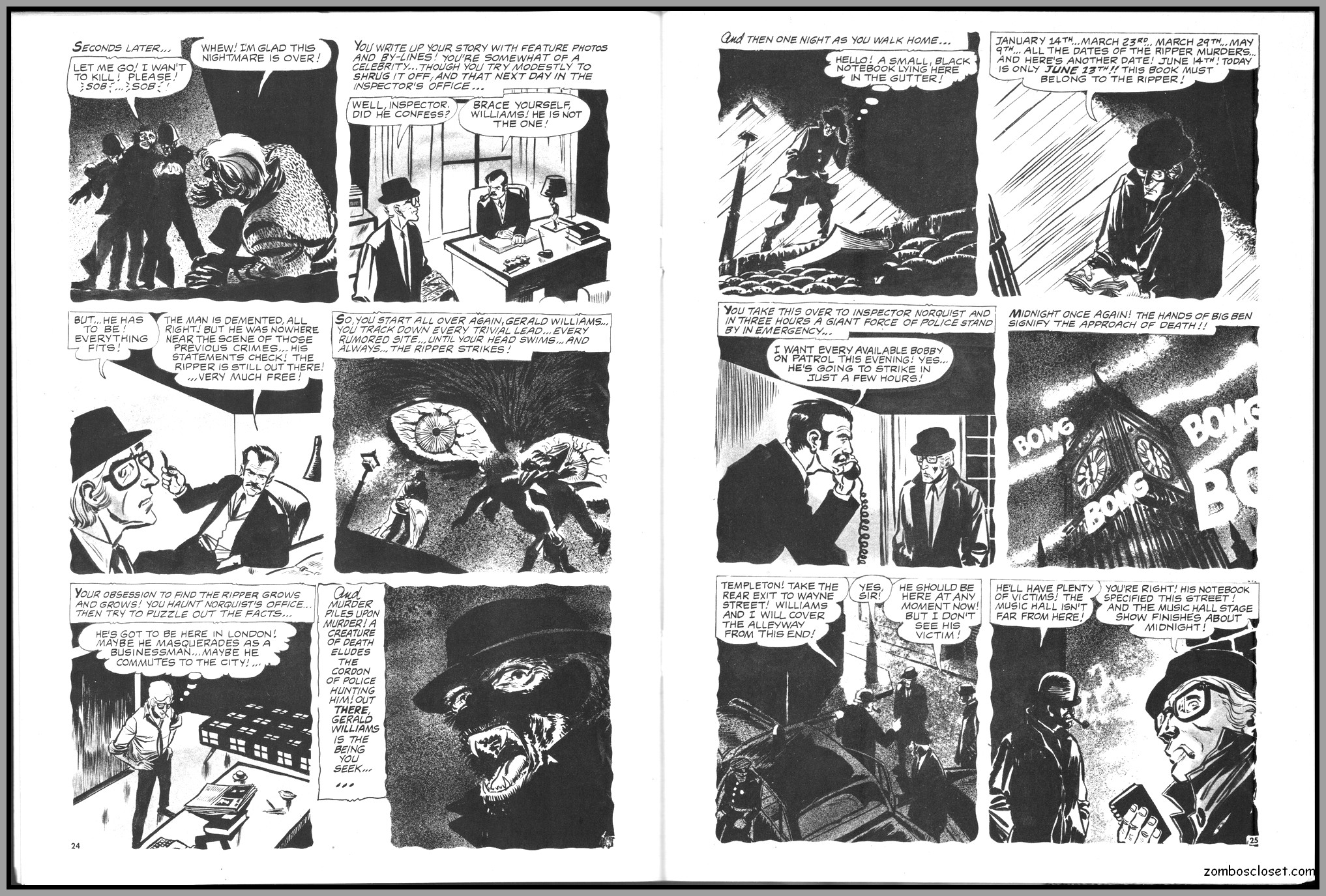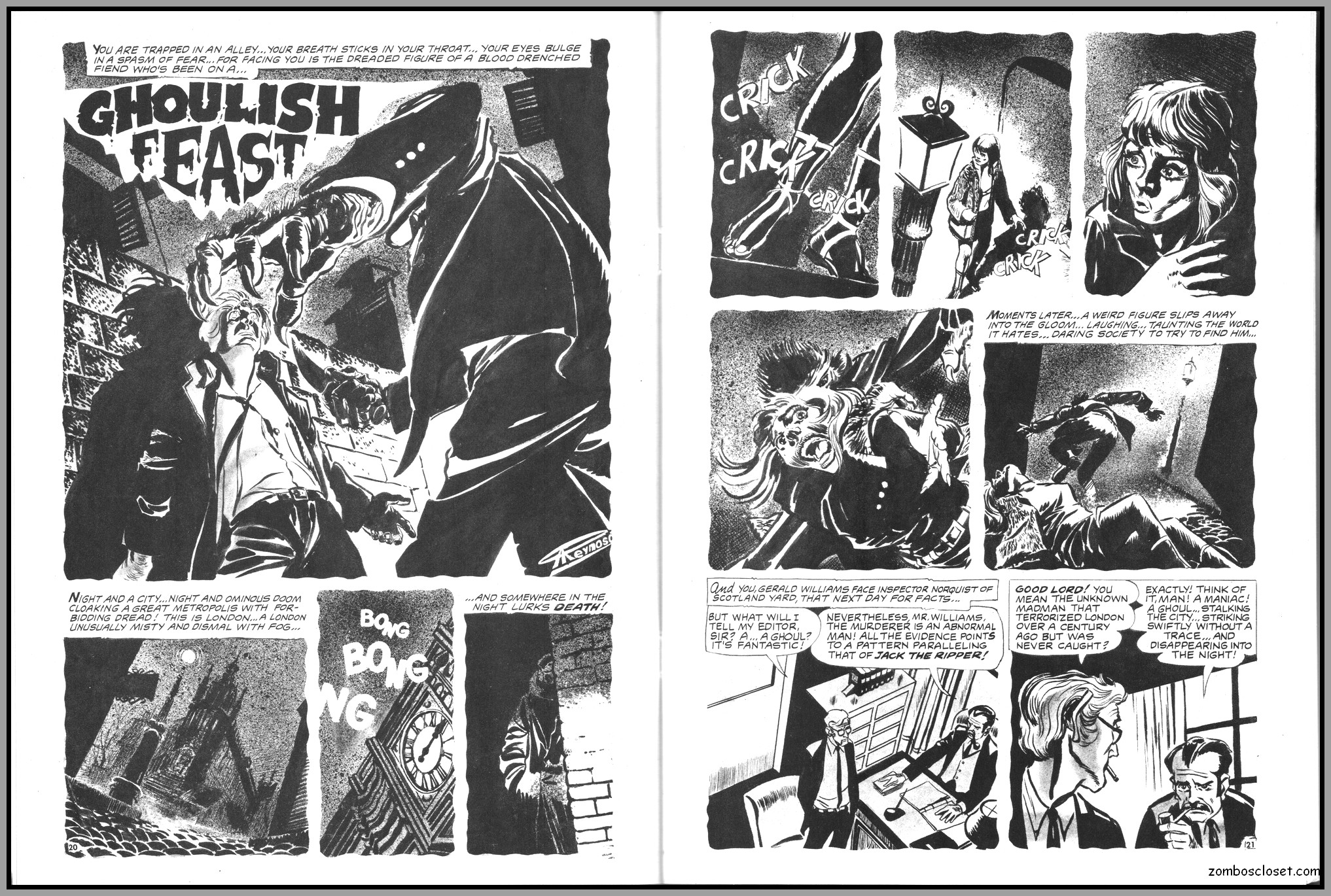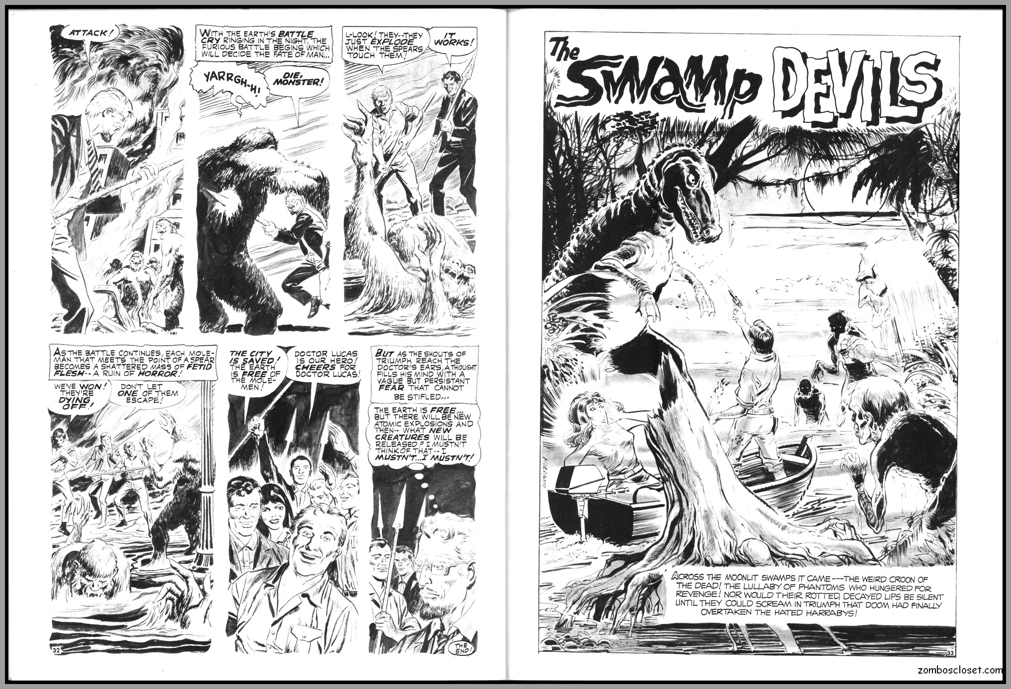 The later issues of Terror Tales, and all other Eerie comics publications, rehashed stories and elements from earlier covers to save money. In this issue, Pool of Horror is reprinted, though I forget from which issue, but hey, enjoy the wonderful black and white art and the usual tropes of political incorrectness (ah, the 1970s), and revel at monsters not caring a wit about it, of course. One story, The Day Man Died, is par for the course of 1960s and 1970s angst about the future, where robots would do all the work. leaving man to idle away his time in endless fun stuff. Seems the writers of these stories forgot the most important thing: You need to buy a robot first, and lord knows how much that will cost. So maybe the story title should have been The Day Those Who Could Afford the Luxury of a Robot Died.
