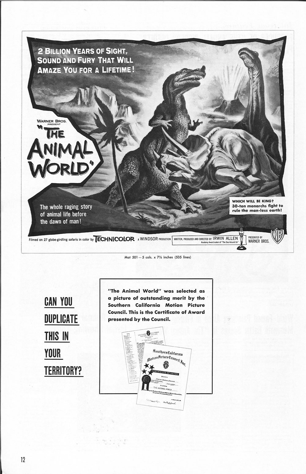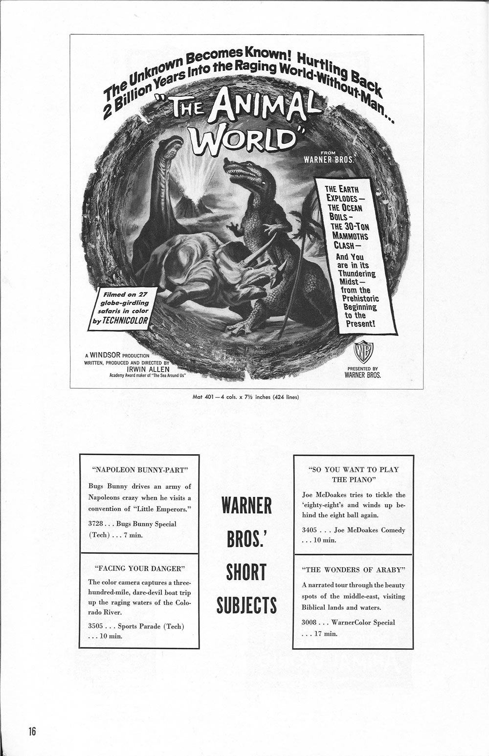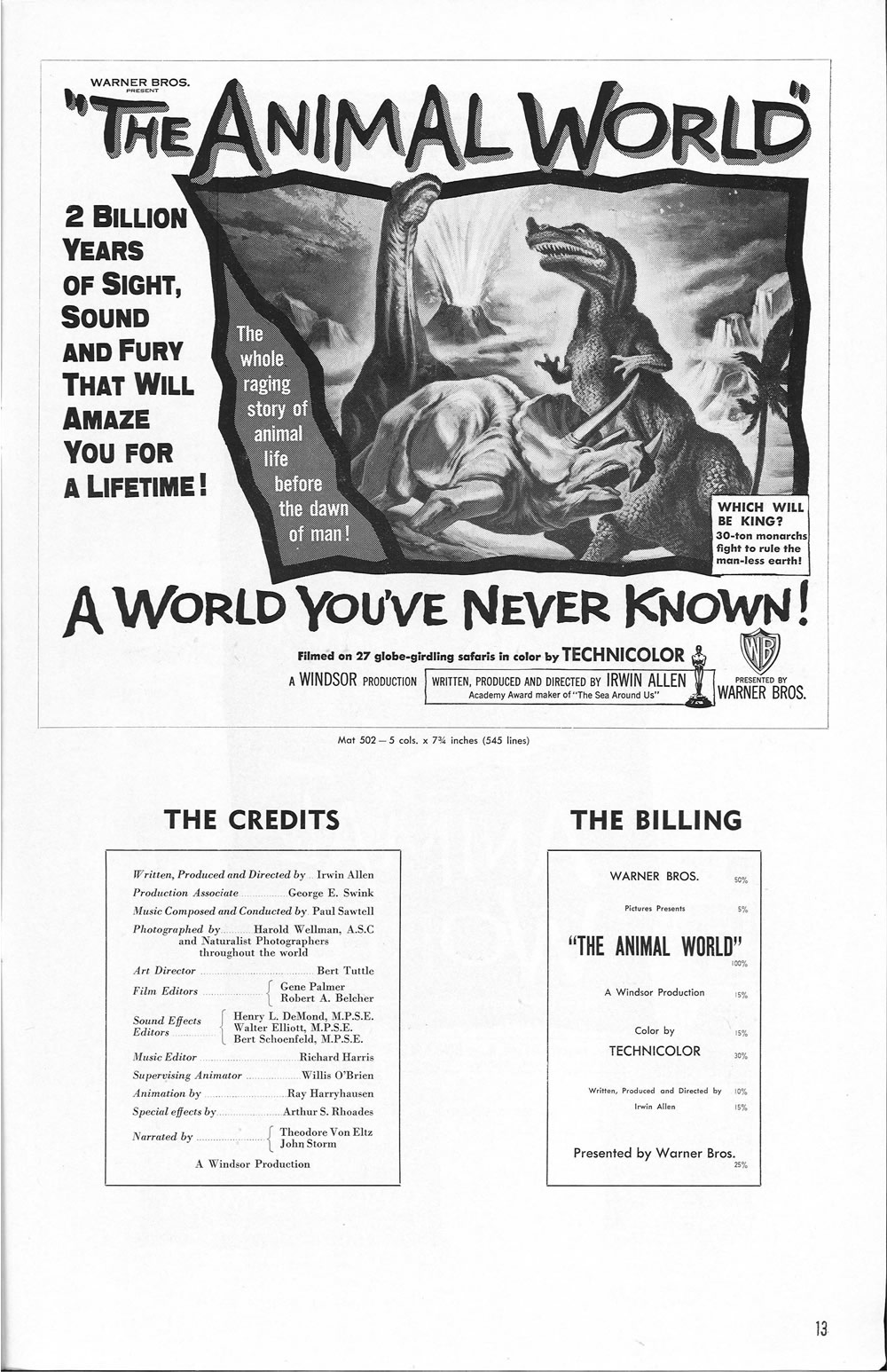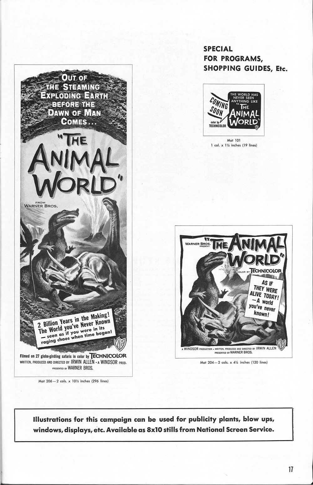 Terry Michitsch, once again, has come to the rescue to provide additional scans of missing pages for this enjoyable pressbook, another Ray Harryhausen and Willis O'Brien treat. Some of these stop-motion scenes wound up in the Night Gallery's, The Painted Mirror episode and the Joan Crawford tearjerker, Trog.