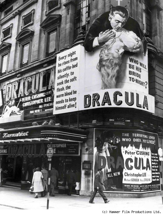 With no Internet viral campaigns, no chit-chatty forum quorums, no message board hype, and certainly no social networking picky-pecking, blurby-wordies to sell a movie, Hammer’s artists combined bold imagery, screeching colors, and pow-zam-boom verbiage to titillate the vulgar interests of movie goers, stimulate the monetary interests of distributors, and annoy everyone else enough so they took offense and complained, providing even more word of mouth promotion.
