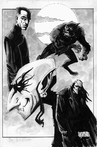 The black and white panels are reminiscent of Harvey Kurtzman's comical characters combined with a dash of Gene Colon's fluid and dynamic panels. This is another graphic novel that cries out for a magazine-sized format to fully appreciate the artwork. It needs a few more pages, too, especially the monster battle royale toward the end between the Frankenstein monster, the werewolves, and the vampire Graf Orlock.