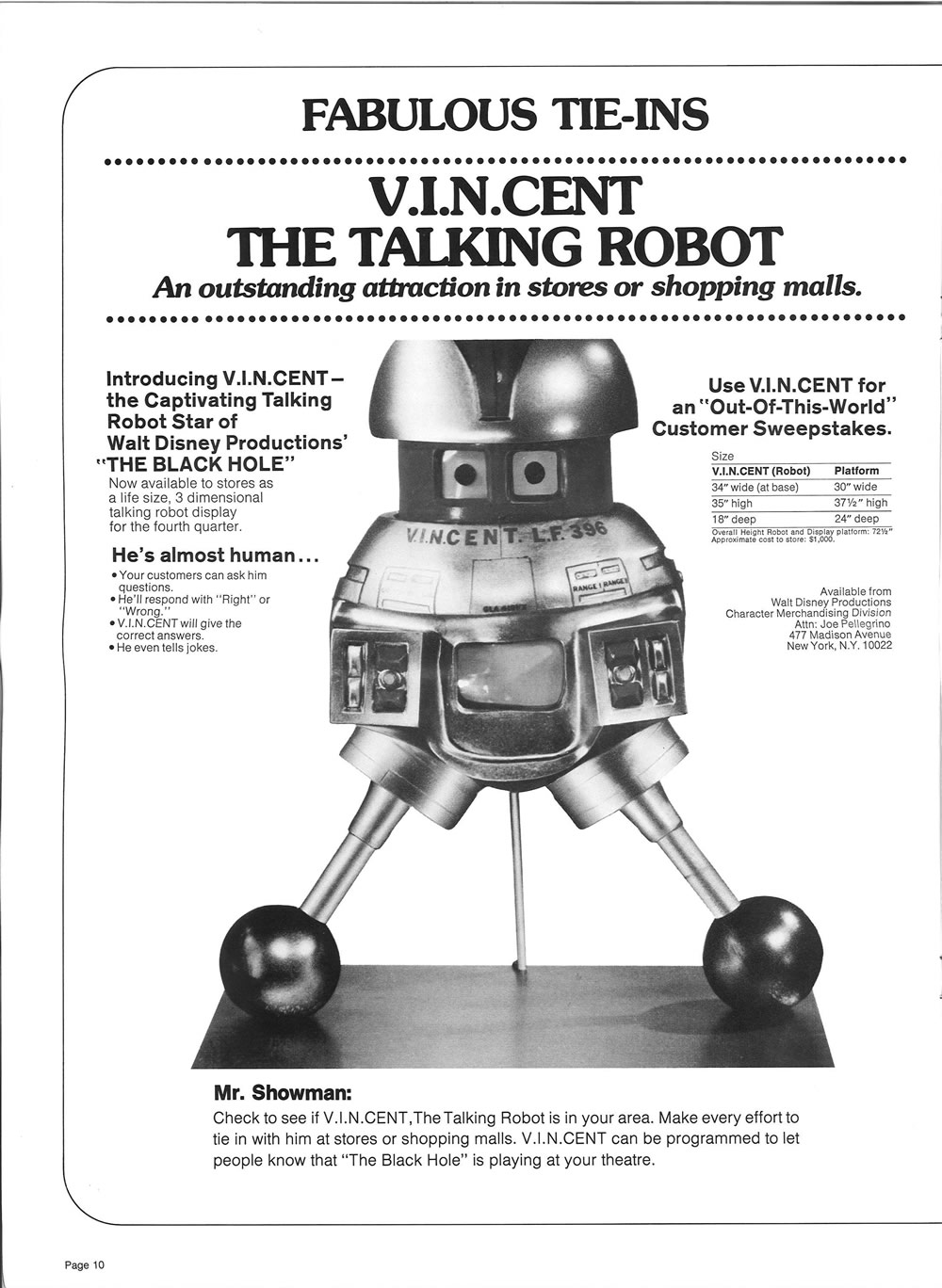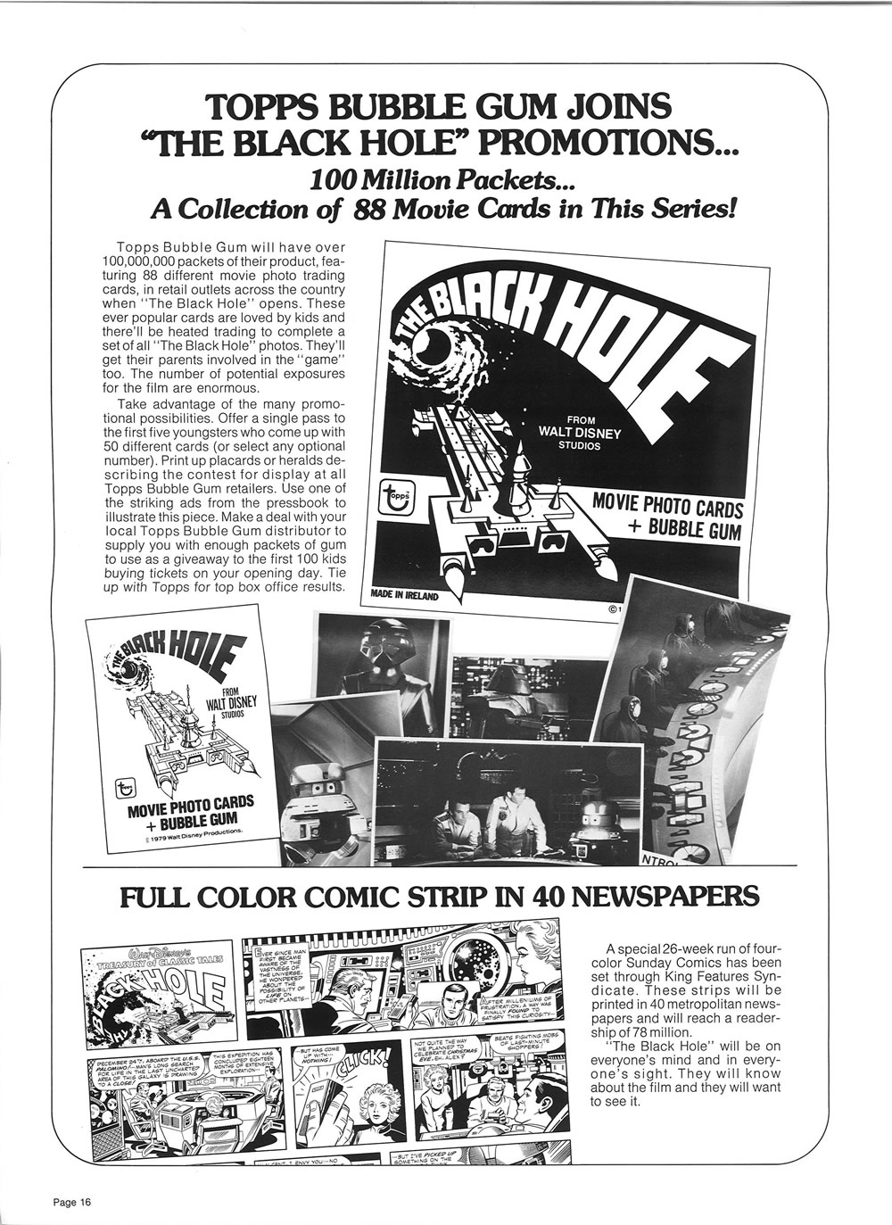 “Fabulous tie-ins” is an understatement. From store displays, toys, food, books, puzzles, clothing, trading cards, and more, Disney tied The Black Hole to an amazing assortment of merchandise. My favorite is the model kit for Maximilian. I enjoyed putting it together and displaying it.