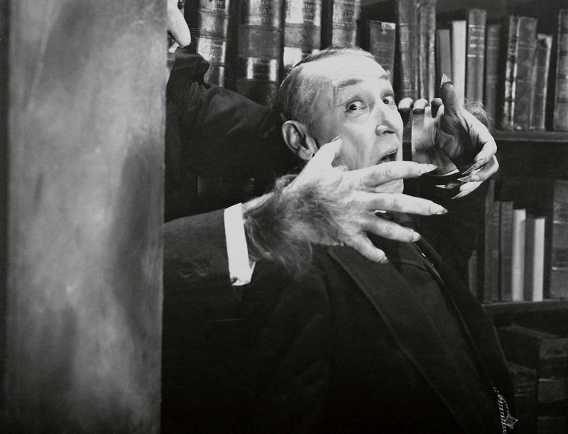 “It does,” I replied. “But Leni’s movie provided the creative template–hairy arms reaching through secret panels and around doorways, sliding bookcases leading to secret passages, upright bodies stuffed in closets flopping down when you open the door, sinister housekeepers, spooky mansions–stuff like that was recycled in the old dark house movies that followed, and it provided much comedy fodder for Abbott and Costello, too.”