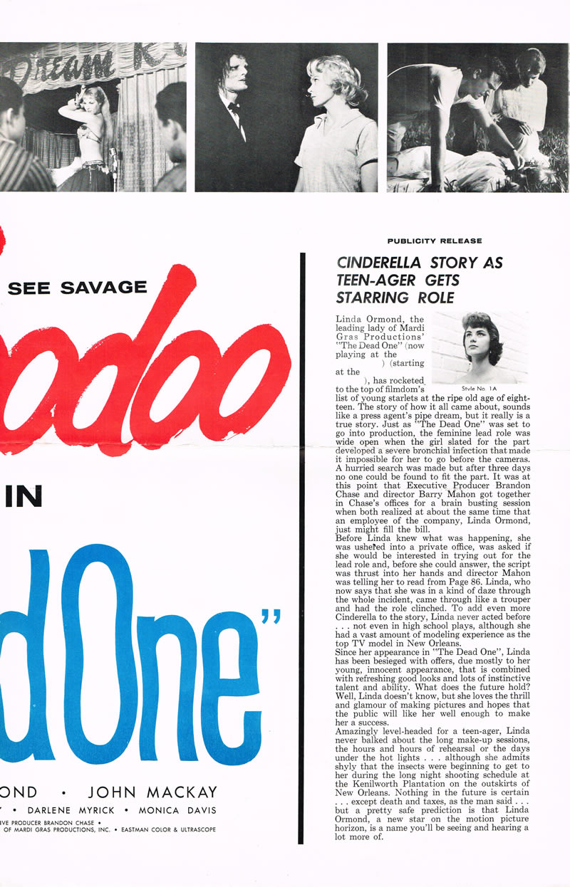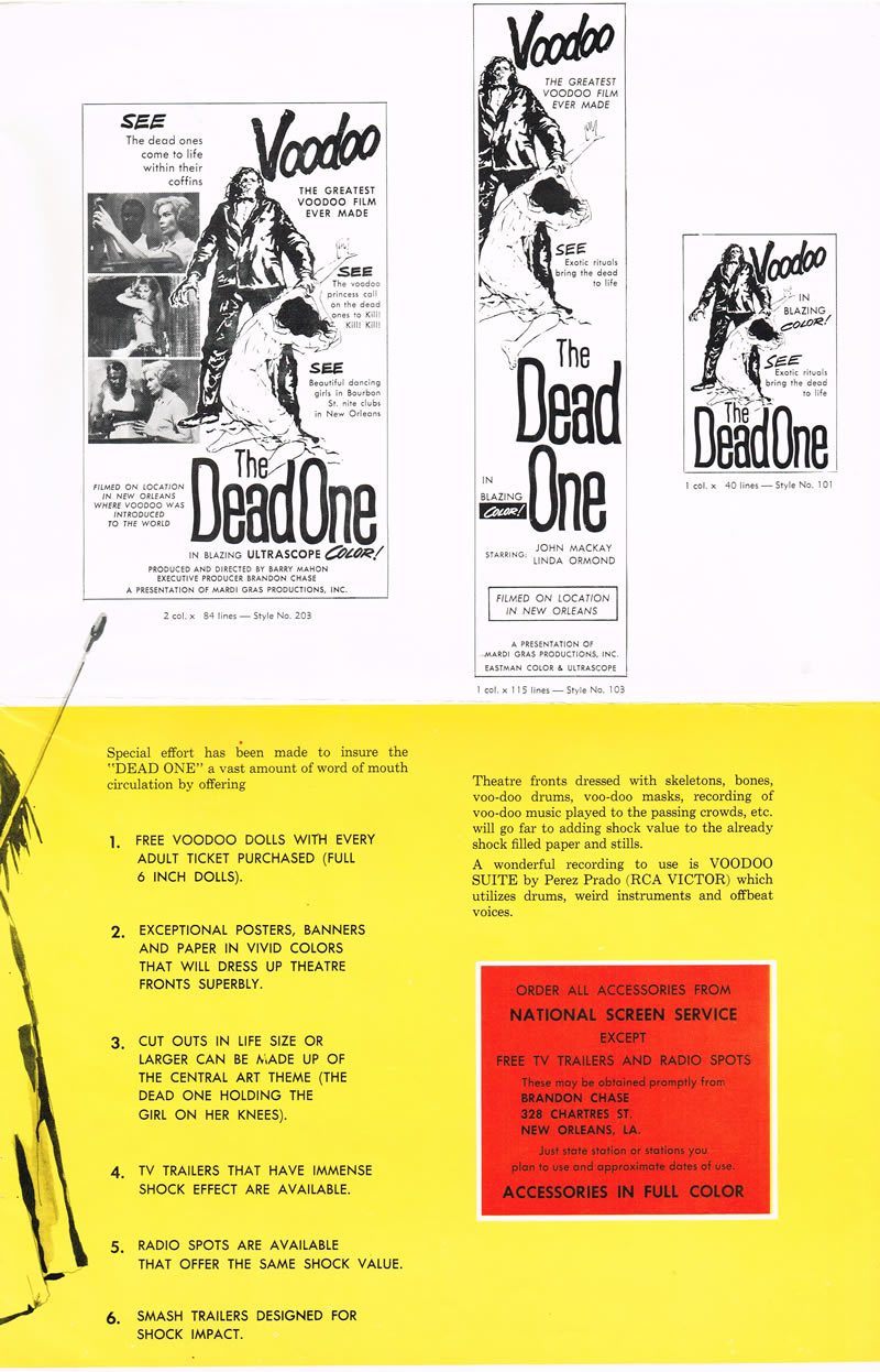 Movie Pressbook: The Dead One (1961) Leave a Comment / Pressbooks (Horror, Sci Fi, Fantasy) / By JM Cozzoli Man, free voodoo doll with every adult ticket! How can you pass that up? And dig that poster art! And when's the last time you saw "SEE…, SEE…, SEE…" on a movie poster? I miss those cheesy days of movie marketing (sigh). Like this:Like Loading... Share this post Facebook Twitter Pinterest Linkedin