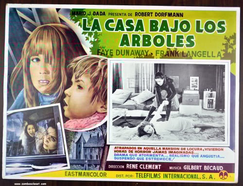 A bit busy, but this Mexican lobby card for The Deadly Trap gives you everything you need to know: kids in danger, mayhem and disruption, and an ominous abode beckoning (although the house can also imply a criminal conspiracy, lunatic family, or mysterious organization ;). Usually the lobby cards from the 1970s aren't as thoughtfully executed, so this one is a pleasant surprise.