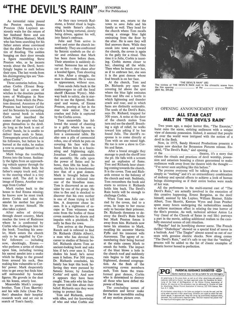Movie Pressbook: The Devil’s Rain (1975) Leave a Comment / Pressbooks (Horror, Sci Fi, Fantasy) / By JM Cozzoli While I get the play on words, I still think the rain/reign twisty is awful. Like this:Like Loading... Share this post Facebook Twitter Pinterest Linkedin