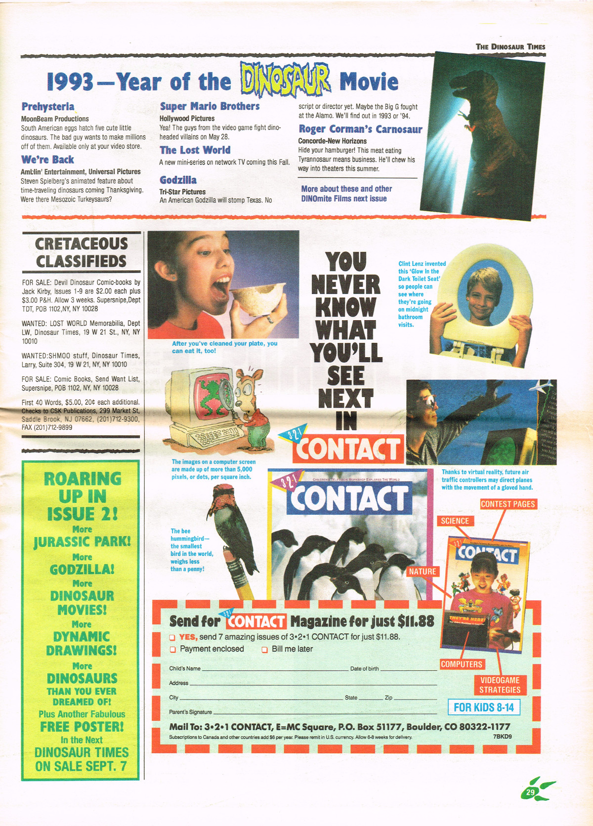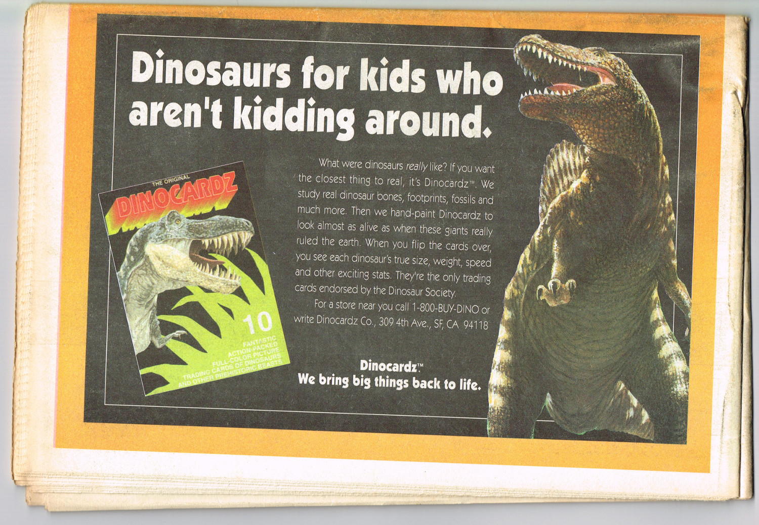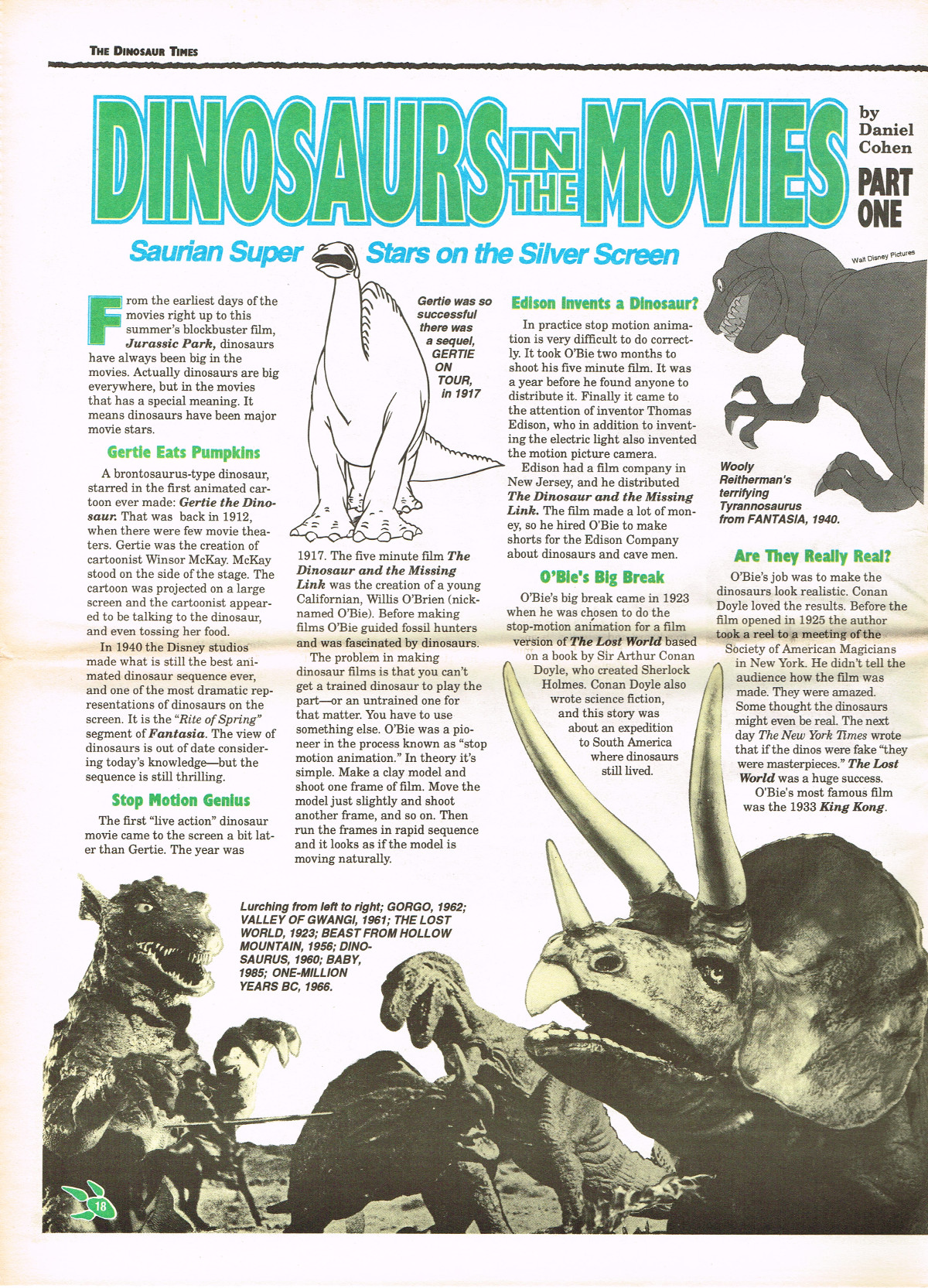 The publishers of The Monster Times tried their hand at The Dinosaur Times in the 1990s, using the same format. It lasted for a few issues before going extinct. This first issue covers Jurassic Park, Godzilla movies, dinosaurs in the movies, and even The Lost World by Sir Arthur Conan Doyle, in-between the more fact-based and academic stuff. And, of course, there's the centerfold poster to leave tape marks up on your walls with, too. Parents everywhere hated those centerfolds, I'm sure.