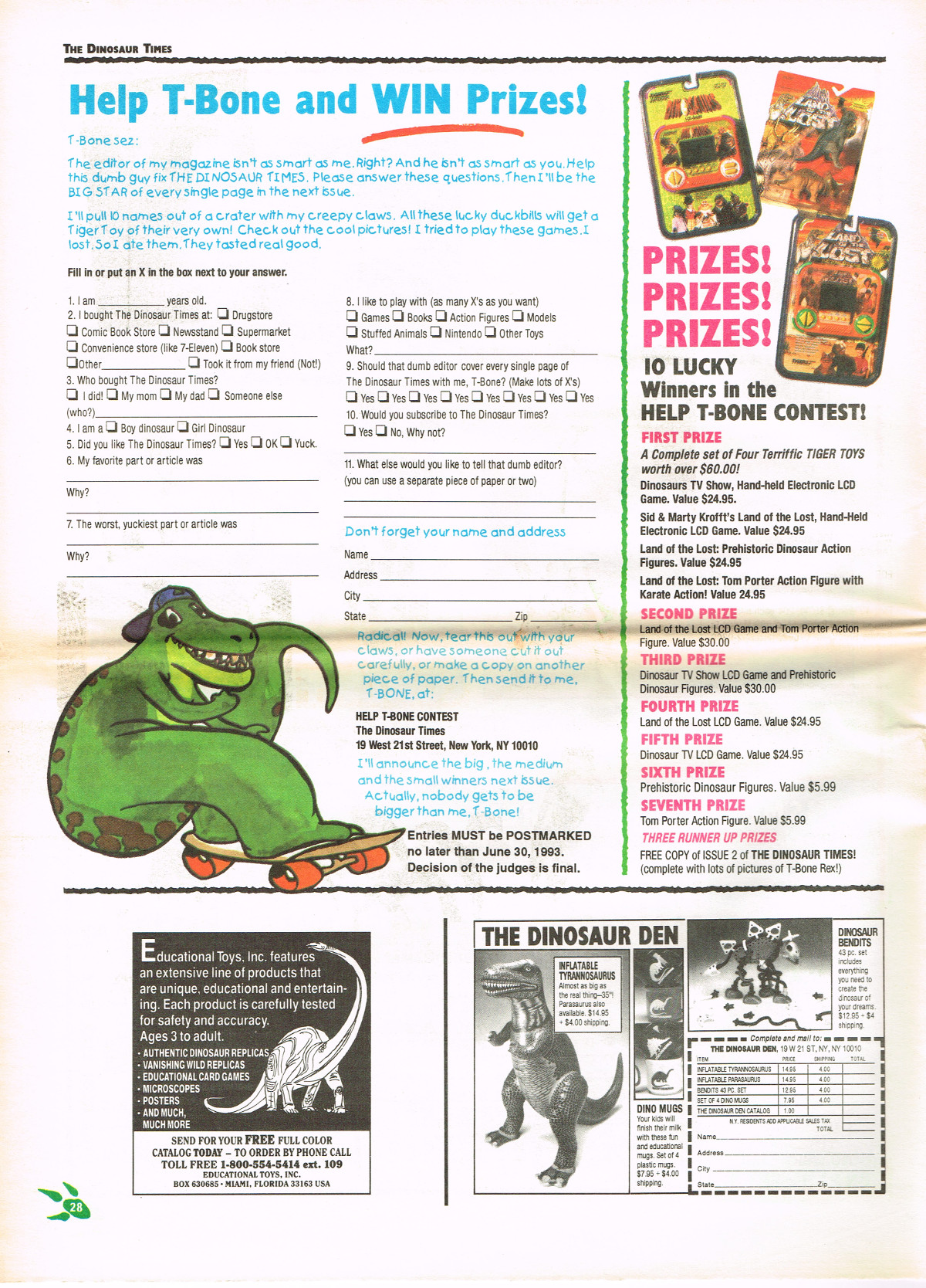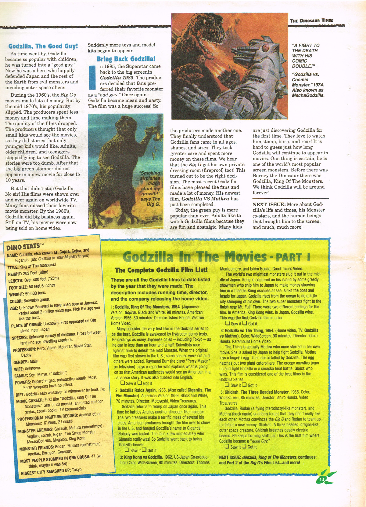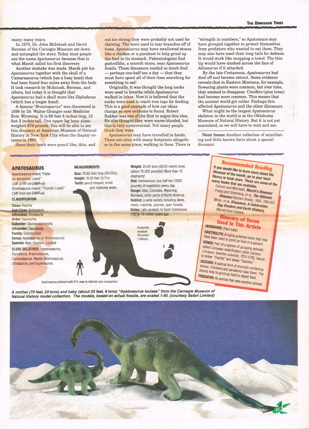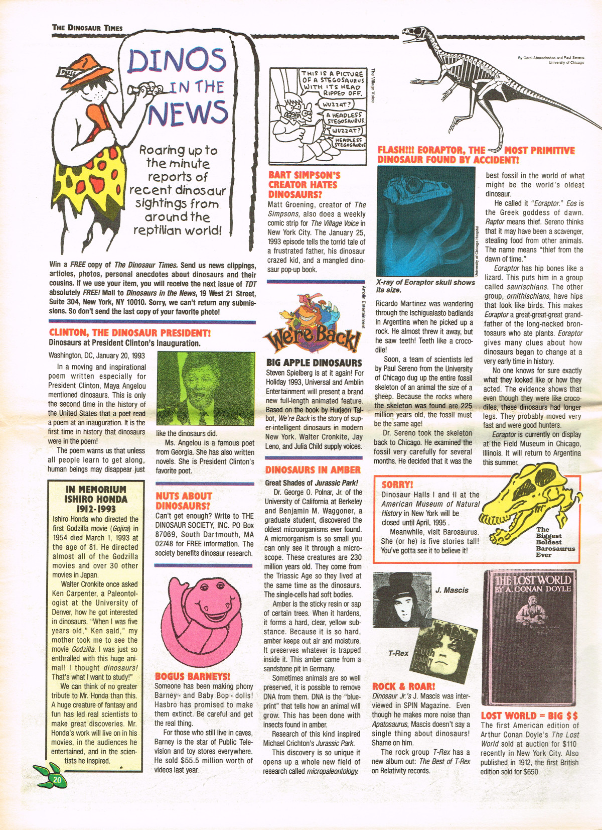 The publishers of The Monster Times tried their hand at The Dinosaur Times in the 1990s, using the same format. It lasted for a few issues before going extinct. This first issue covers Jurassic Park, Godzilla movies, dinosaurs in the movies, and even The Lost World by Sir Arthur Conan Doyle, in-between the more fact-based and academic stuff. And, of course, there's the centerfold poster to leave tape marks up on your walls with, too. Parents everywhere hated those centerfolds, I'm sure.