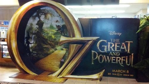 This photo op theater standee entices you to journey down the yellow brick road to see Oz the Great and Powerful. It makes thematic sense, but just doesn't "feel" exciting. Maybe a few more flying monkeys would have helped. (Note: now having seen the movie, it wasn't very exciting, either.)