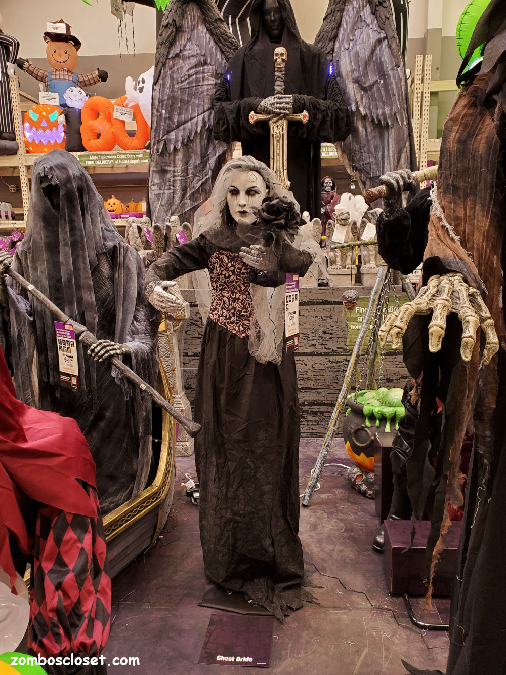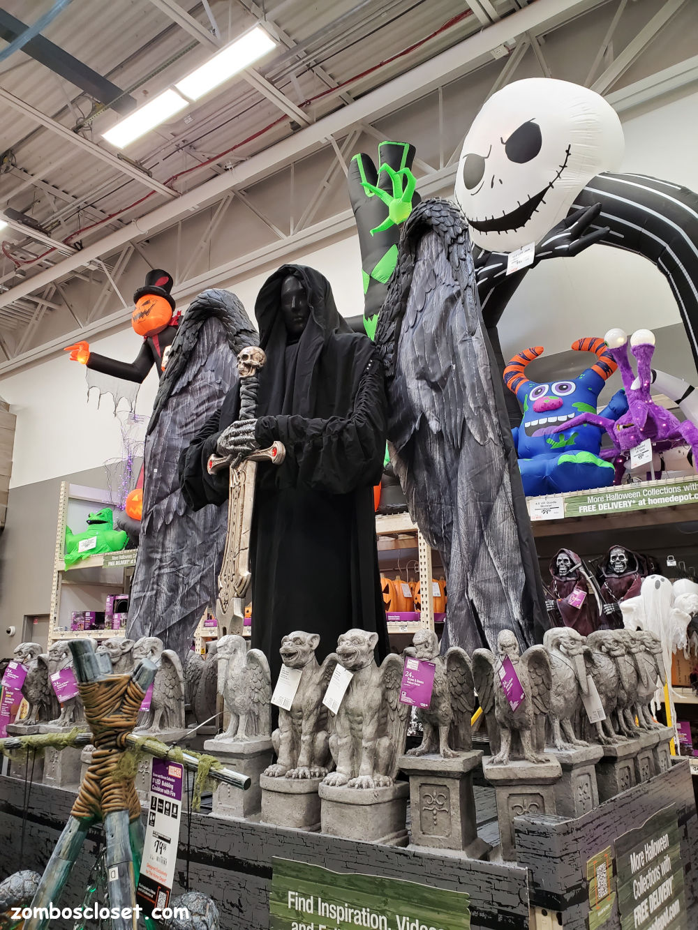 Home Depot always kills with the large lawn decorations and creepy smaller children of the night to deaden any party. Of note is the gondola with Charon. I'd take a ride in that myself; just not one way.