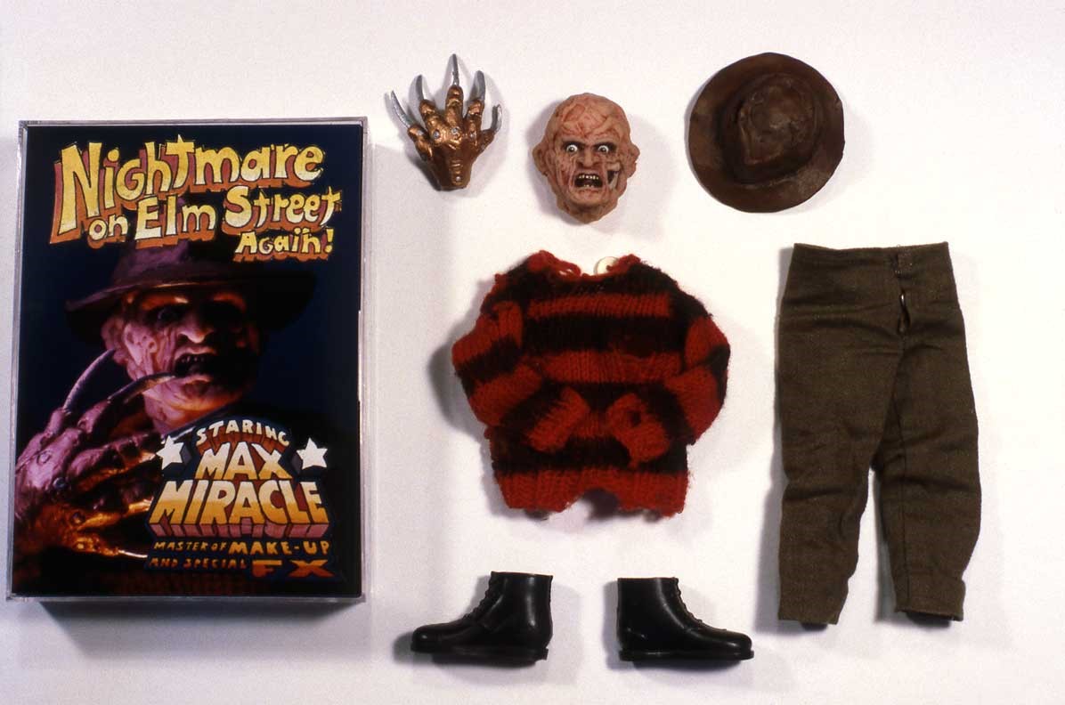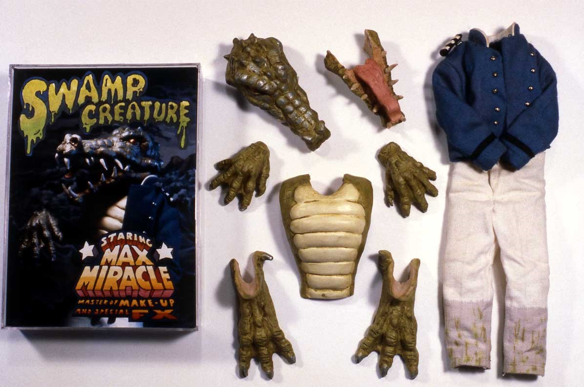 I recently downloaded the second issue of The Haunted Toybox and read this MAXx FX article reprinted here. MAXx FX was a fantastic toy idea that didn’t survive the marketing monster. But now, with Face Off and the heightened interest in makeup and special effects, I think it’s time to revisit Max Miracle, Master of Make-UP and Special Effects. Issue two also has articles on Monster 500 (which had me running off to Toys R Us to find them; and I did), and Rat Fink and Rad Rods (which made me drool). Johnny Lightning’s Creepsters (wish TRU had continued that line) and a lot more is stuffed into the issue, too. With permission from the mad toymaniacs at The Haunted Toybox here’s The Lost FX of MAXx FX.