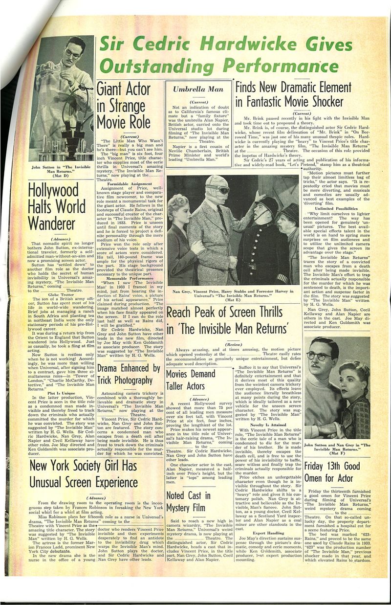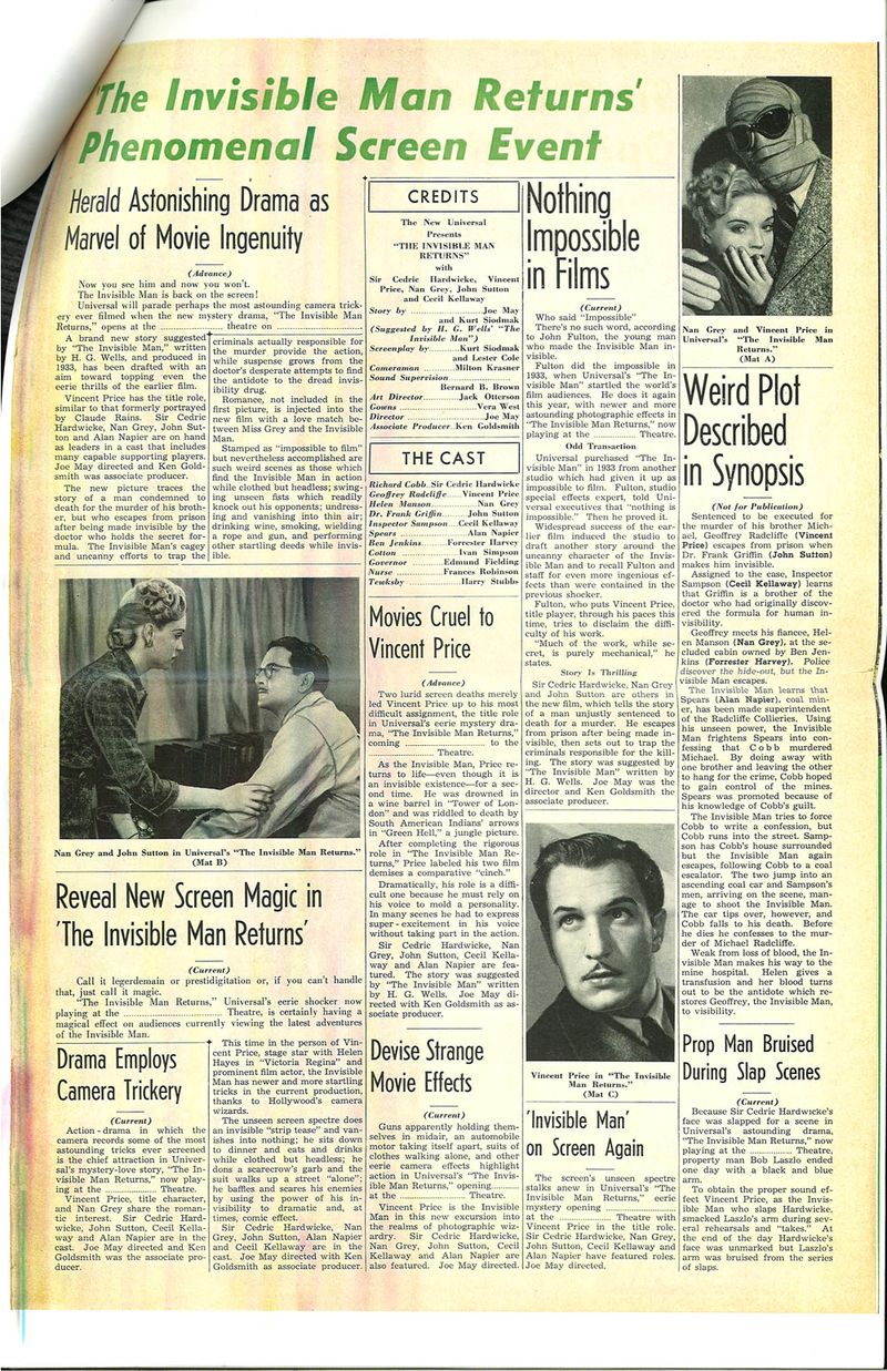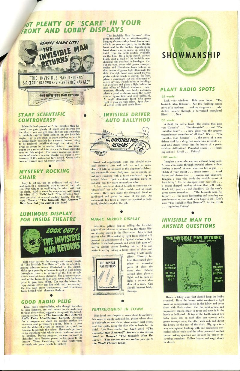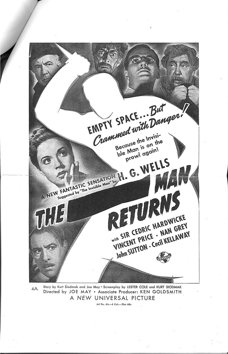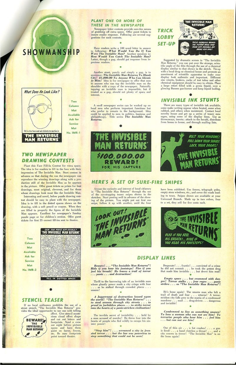 Universal Studios certainly knew how to do pressbooks (campaign manuals) for their horror movies. They were large, filled with many pages of publicity information, and presented with style. The showmanship pages have some clever ideas to promote the movie. I’ve left out a few of the poster and ad mat pages. (This color copy of the original pressbook is courtesy of Professor Kinema.)