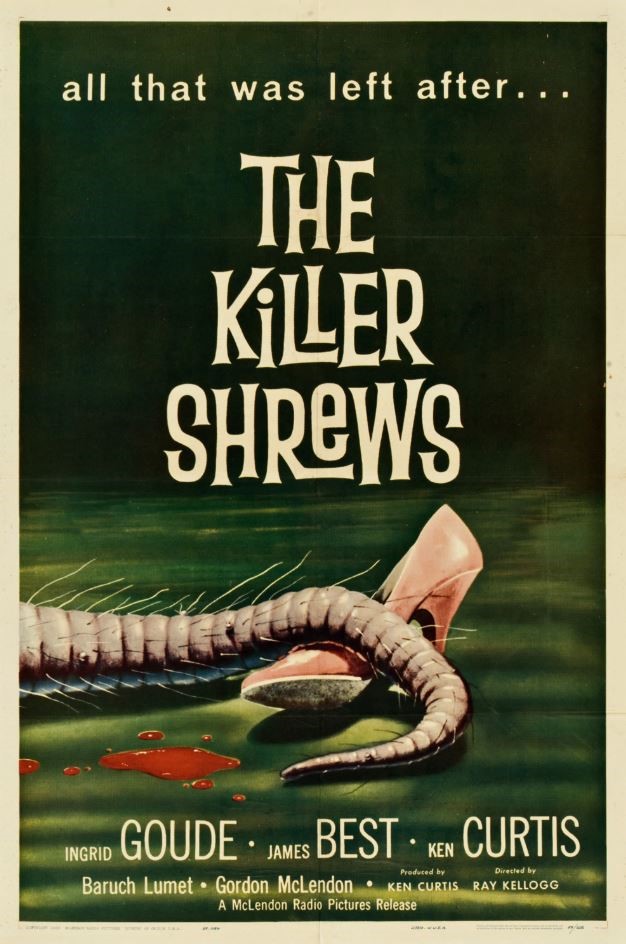 The Killer Shrews has always been one of my guilty pleasures. It’s dark, moody, and really instills a sense of dread in the viewer. Imagine being stranded on an isolated island where ravenous Blarina shrews the size of dogs eat everything in sight, and the only food left is you, the trapped inhabitant.