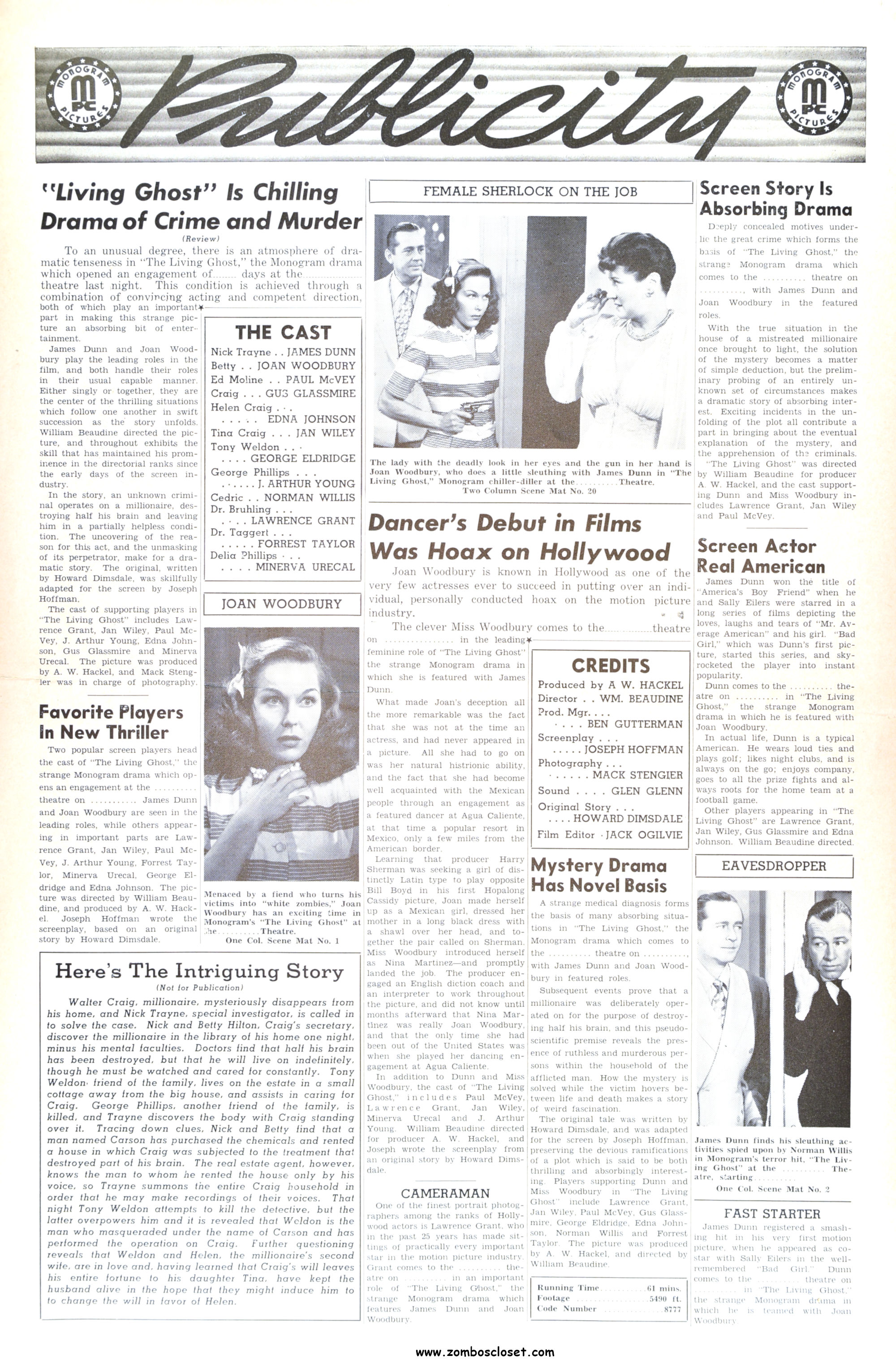 Another 1940s crime story with little to do with ghosts, courtesy of Monogram Pictures. Joan Woodbury played the Queen in Bride of Frankenstein.